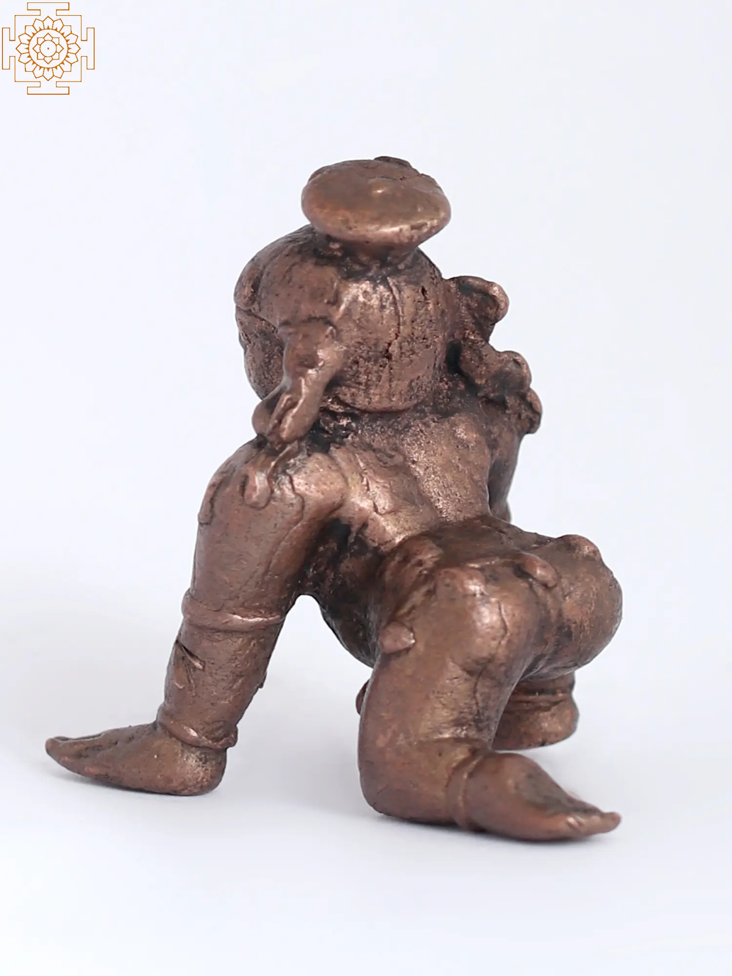 Bal Krishna, the childhood form of Maiya Yashoda’s divine boy, enlivens this copper statue as the most dotting Laddu Gopala- holding his favorite sweet in his hand and filling the ambiance with his celestial Madhurya (sweetness). Krishna has a high-raising hairdo, and ornaments adorning his body, along with a Karadhani (waist belt) with bells that make charming sounds as the Lord of the Universe moves in the home of Maa Yashoda, enchanting the three realms.