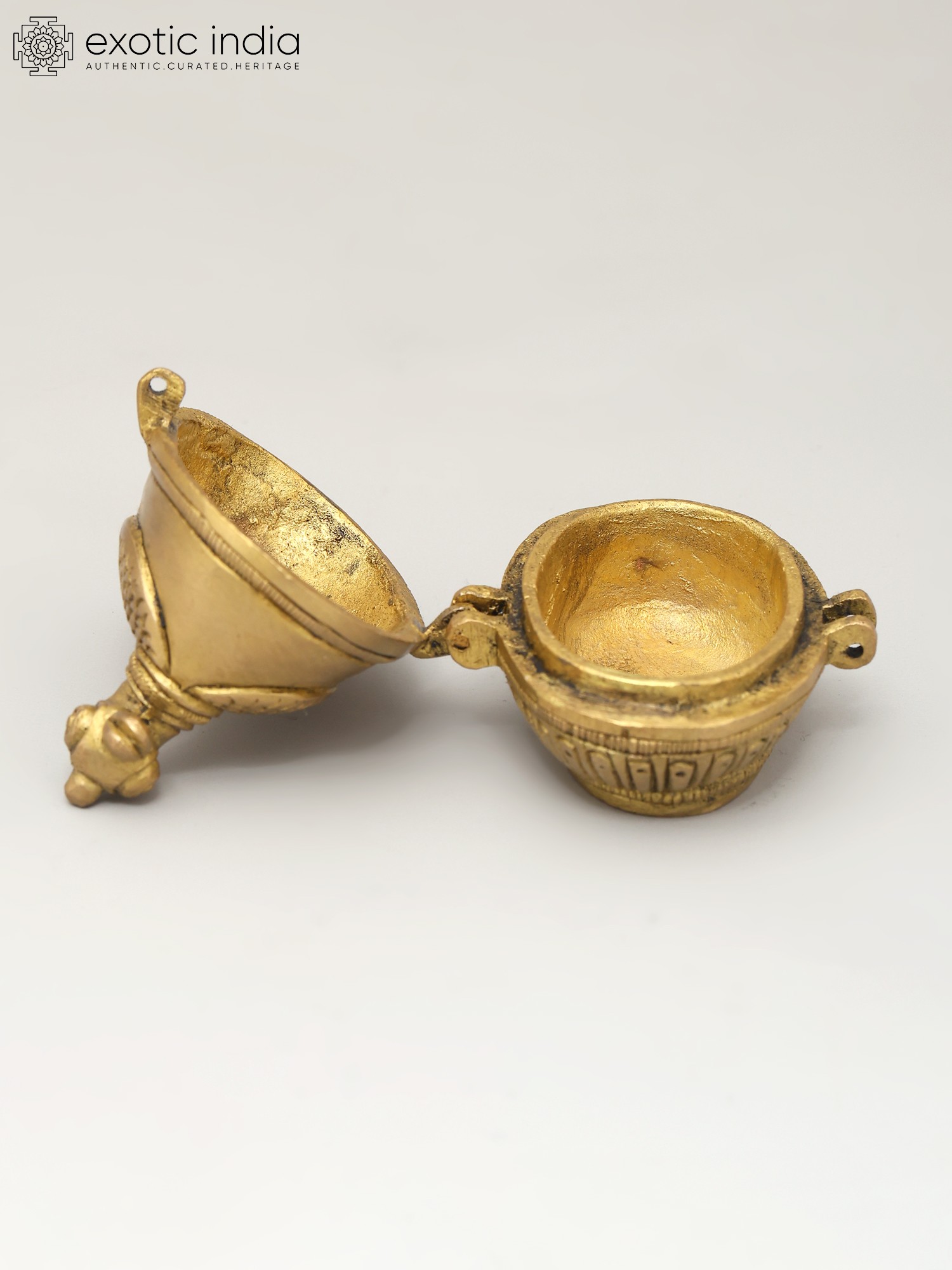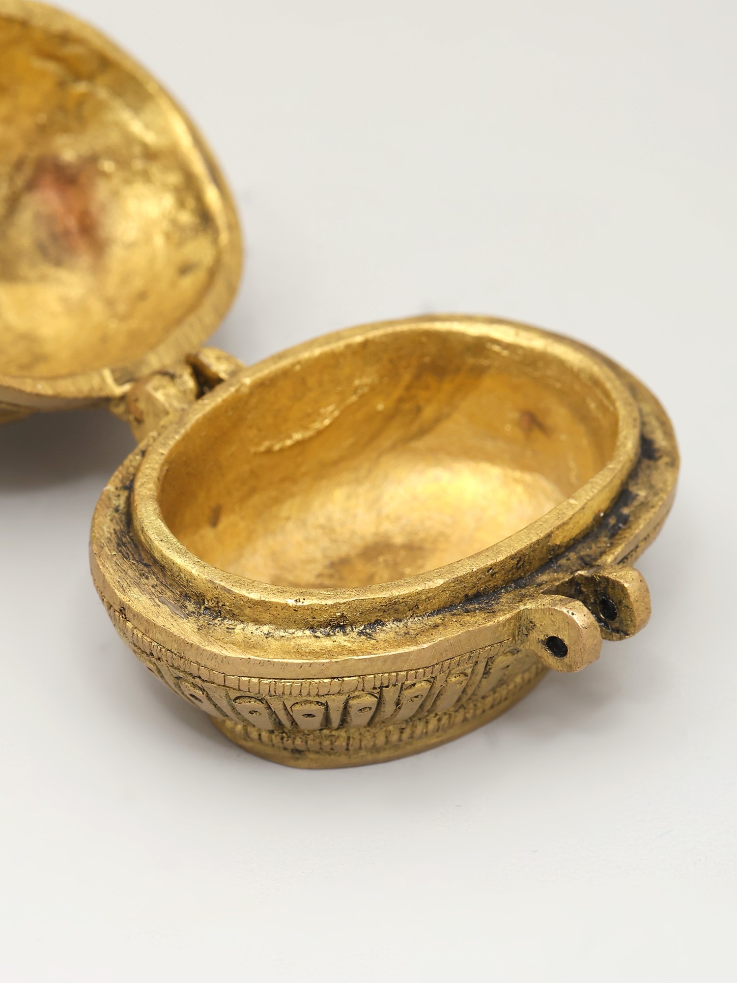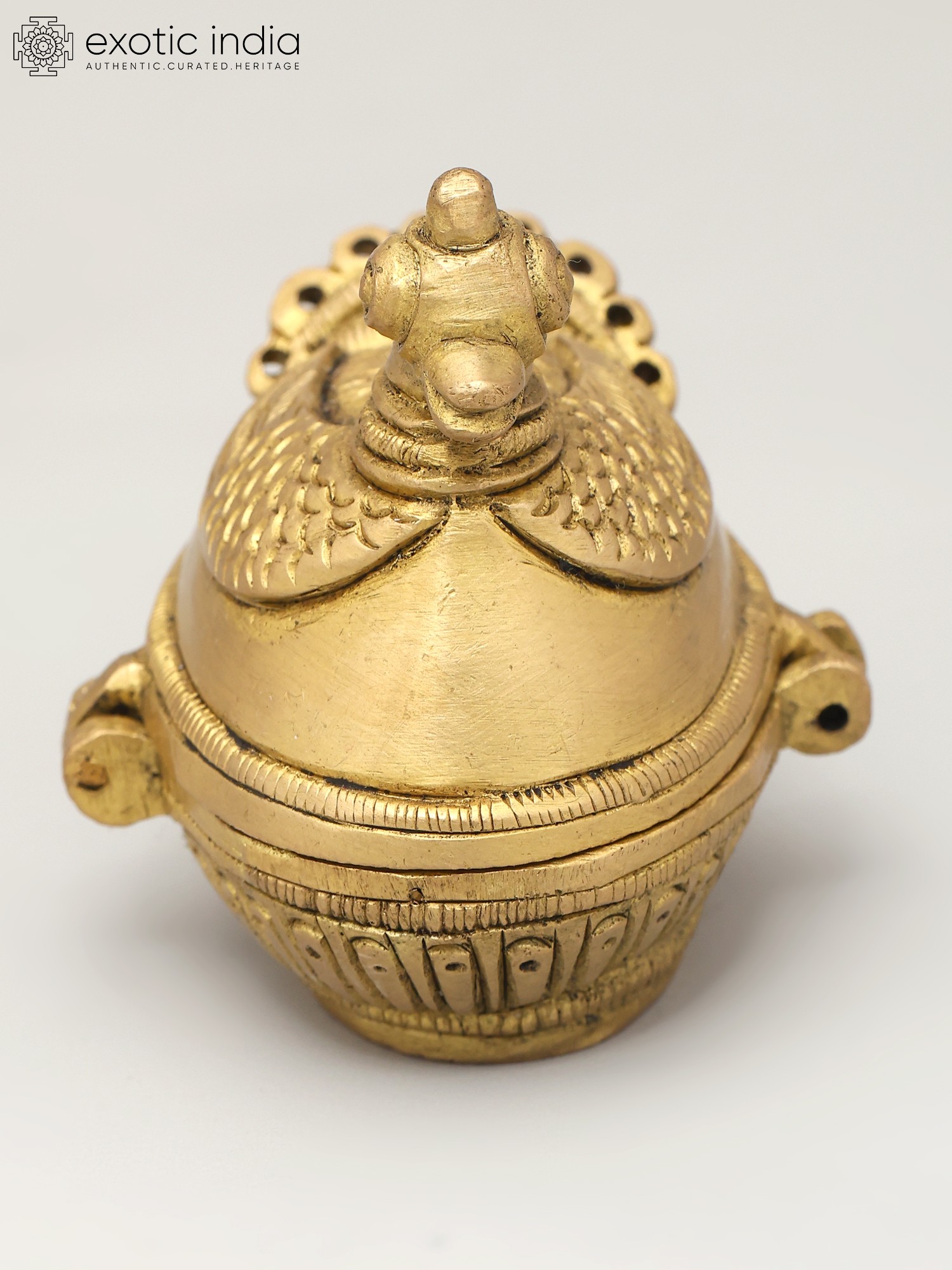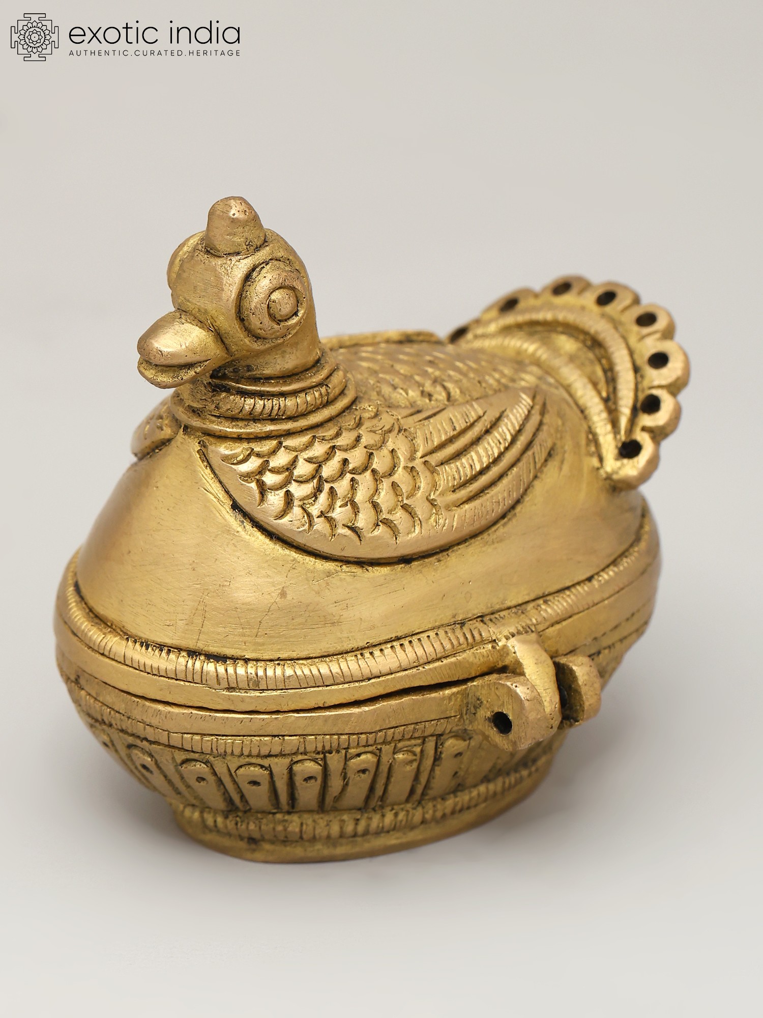 "Within the delicate curves of a brass duck, art meets functionality in a whimsical dance”. Beyond its charming exterior lies a reservoir of kumkum, a symbol of tradition and auspicious beginnings. Ducks, often associated with grace, remind us of the beauty in simplicity. As you hold this kumkum box, the weight of time-honored customs rests in your hands. Its golden hue reflects the radiance of heritage, passed down through generations. This creation bridges the gap between the artistic and the practical, uniting cultures and generations with each graceful lift of the lid.