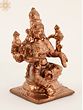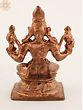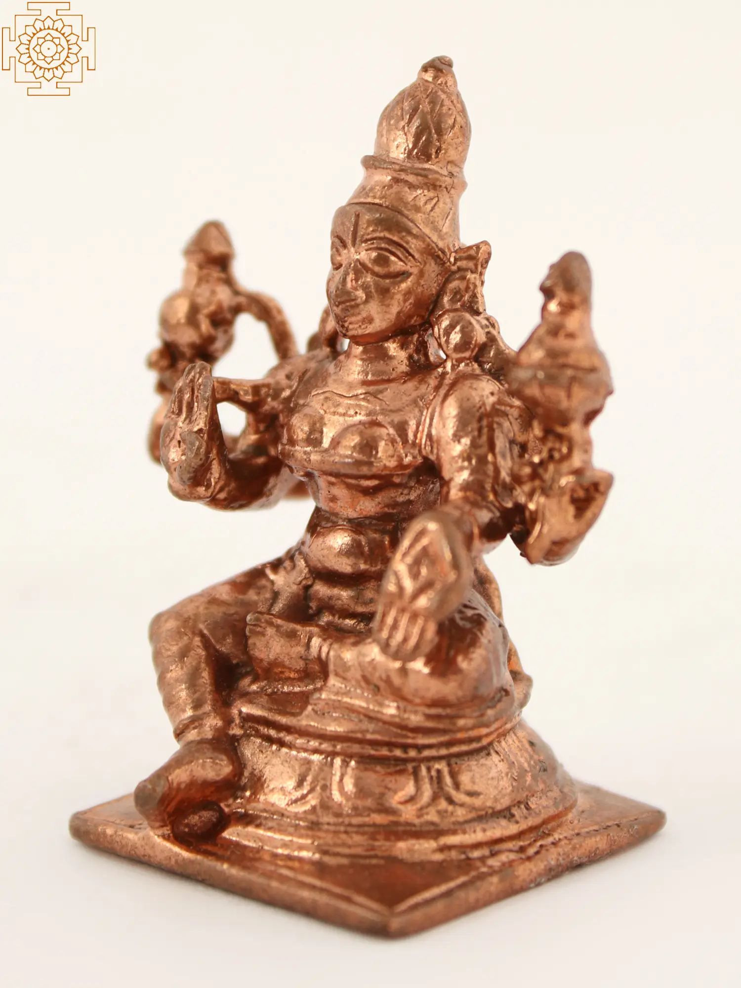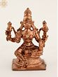 Goddess Lakshmi has been associated with fertility, abundance, and good fortune since she first appears in early Hindu texts. Her iconography depicts Devi Lakshmi as a young woman, who in Hindu tradition is the ideal representation of productiveness and propitiousness, to emphasize her function as the giver of the boons of progeny, the fecundity of fields, and pleasantness in life. Devi is a young woman seated in the position of royal ease (Lalitasana) on a lotus throne or Padmasana in this small copper statue of the goddess Lakshmi. She is displaying her well-known four-armed pose while holding two lotuses and doing the Abhaya and Varada mudras with her right and left primary hands, respectively.