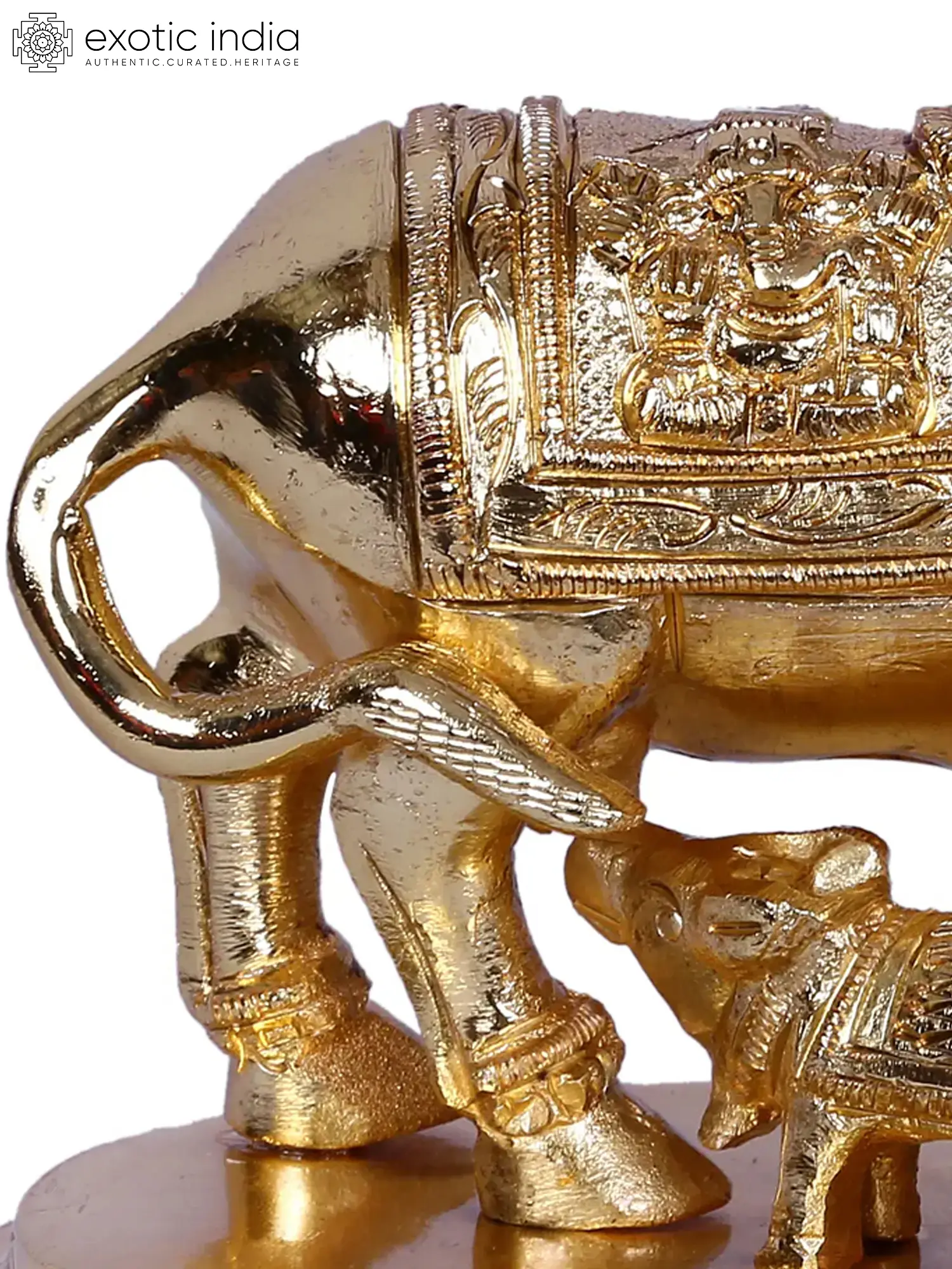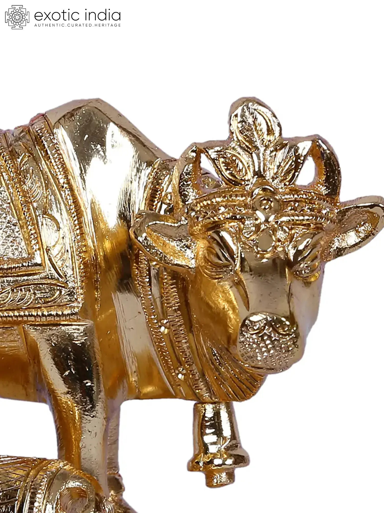 Celebrate the sacred bond of motherhood with this stunning gold-plated brass statue depicting a mother cow and her calf. The details and rich gold finish accentuate the tenderness of their connection. This statue embodies the virtues of nurturing, compassion, and the unbreakable love between mother and child. Bring a sense of warmth and auspiciousness into your home with this beautiful representation of the divine feminine.