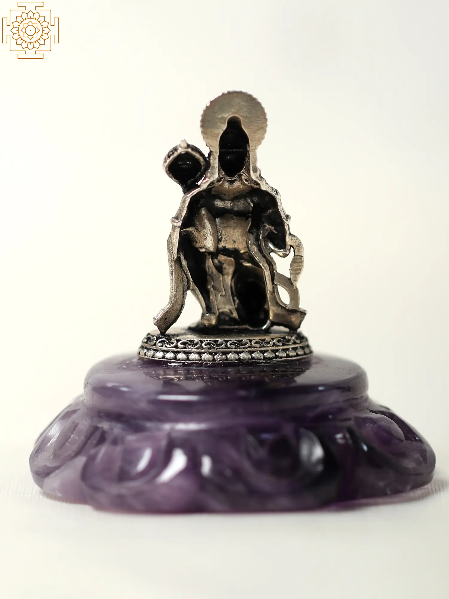 The Small Silver Blessing Lord Hanuman on Amethyst Gemstone Base is a stunning representation of the devoted monkey god, Hanuman. With hands folded in reverence and eyes filled with determination, Hanuman stands as the epitome of unwavering faith and loyalty. This sculpture symbolizes the power of devotion and its ability to move mountains. Hanuman's presence reminds us that with genuine devotion, we can overcome any hurdle in life. We must have faith in ourselves and the divine, knowing that in devotion lies the strength to achieve the impossible.