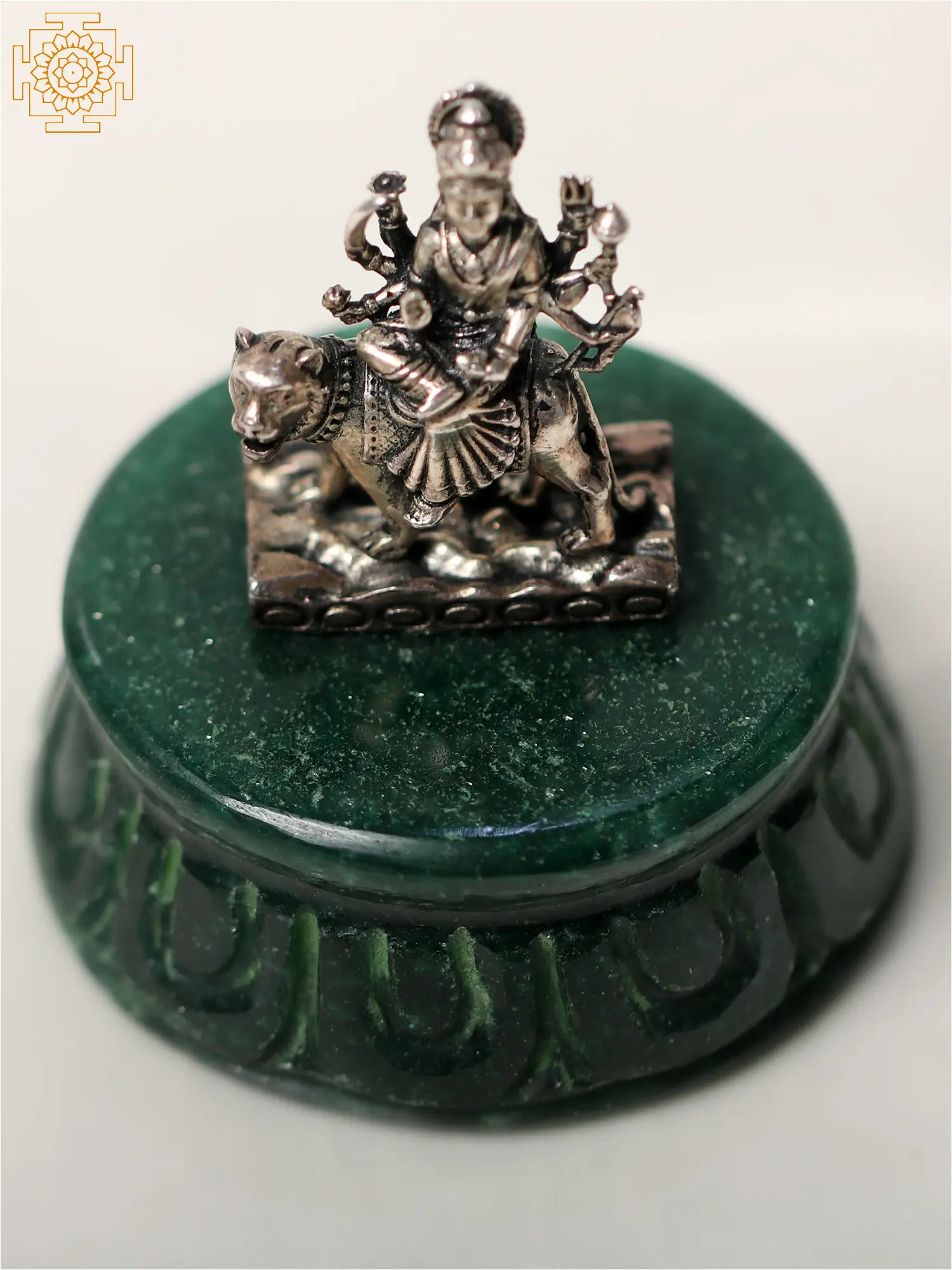 The Small Silver Durga Maa statue, adorned on a Green Aventurine gemstone base, exudes the divine energy of the warrior goddess. With her multiple arms carrying powerful weapons and riding a lion, Durga symbolizes fearlessness and protection. This sculpture represents the strength and determination it takes to face our inner battles and emerge victorious. Durga Maa's presence reminds us that we possess the power to overcome obstacles and conquer our fears. It is extremely important to recognize our inner warrior and tap into our hidden potential, knowing that within us lies the strength of the divine.