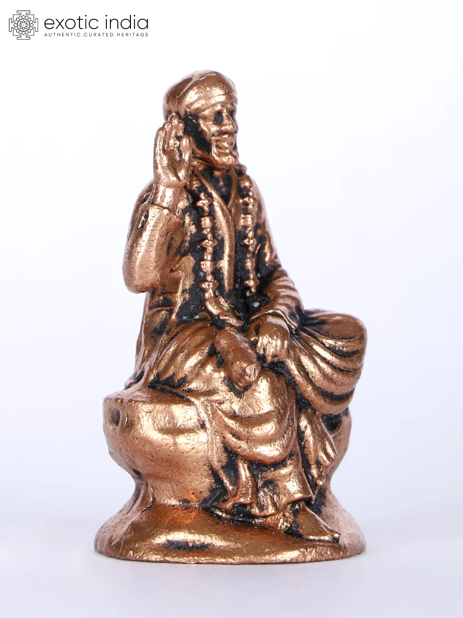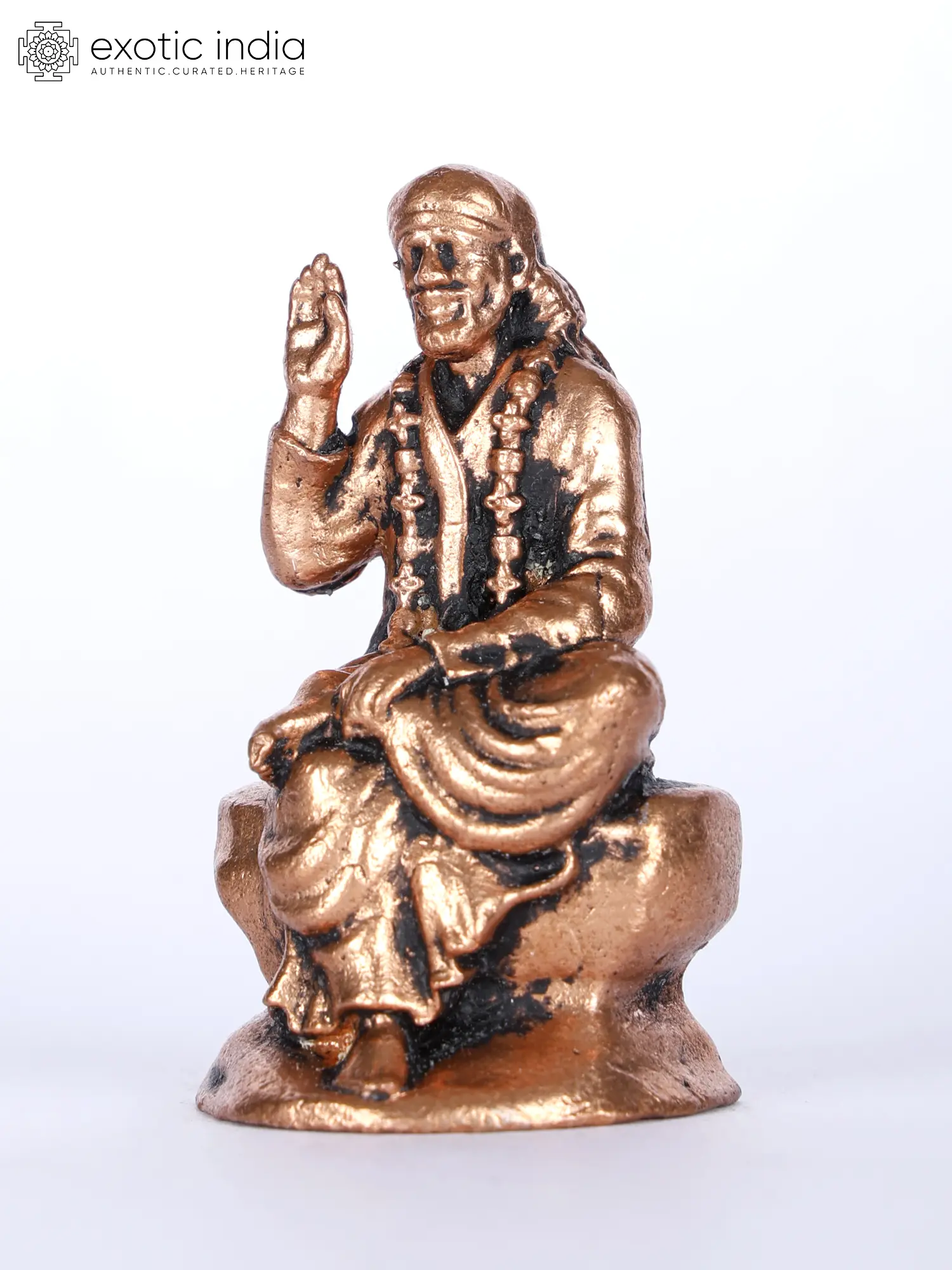 This magnificent representation of the revered saint, Sai Baba of Shirdi. Crafted with exquisite attention to detail, this copper statue captures the serene and compassionate presence of Sai Baba, known for his teachings of love, compassion, and universal acceptance.