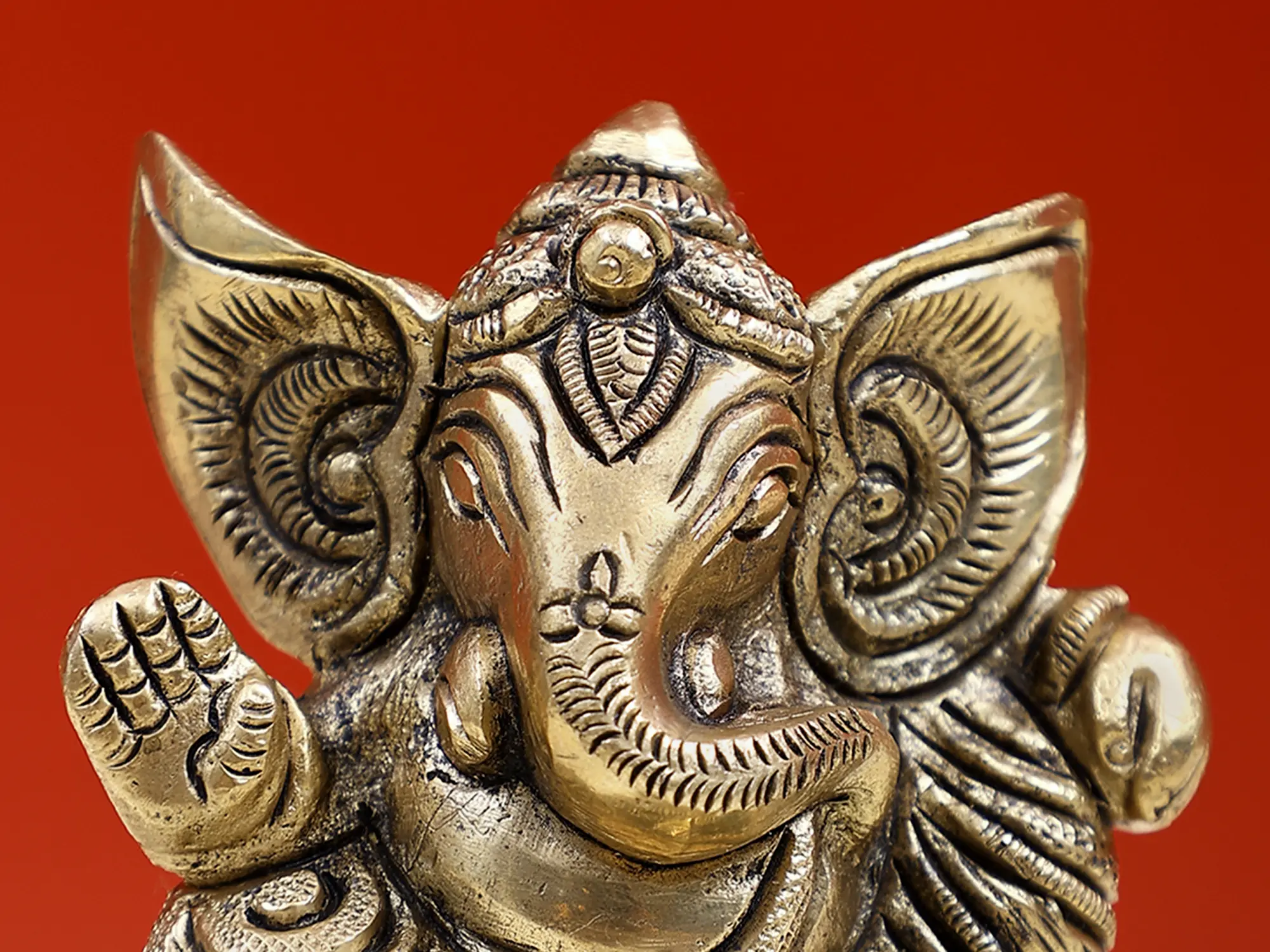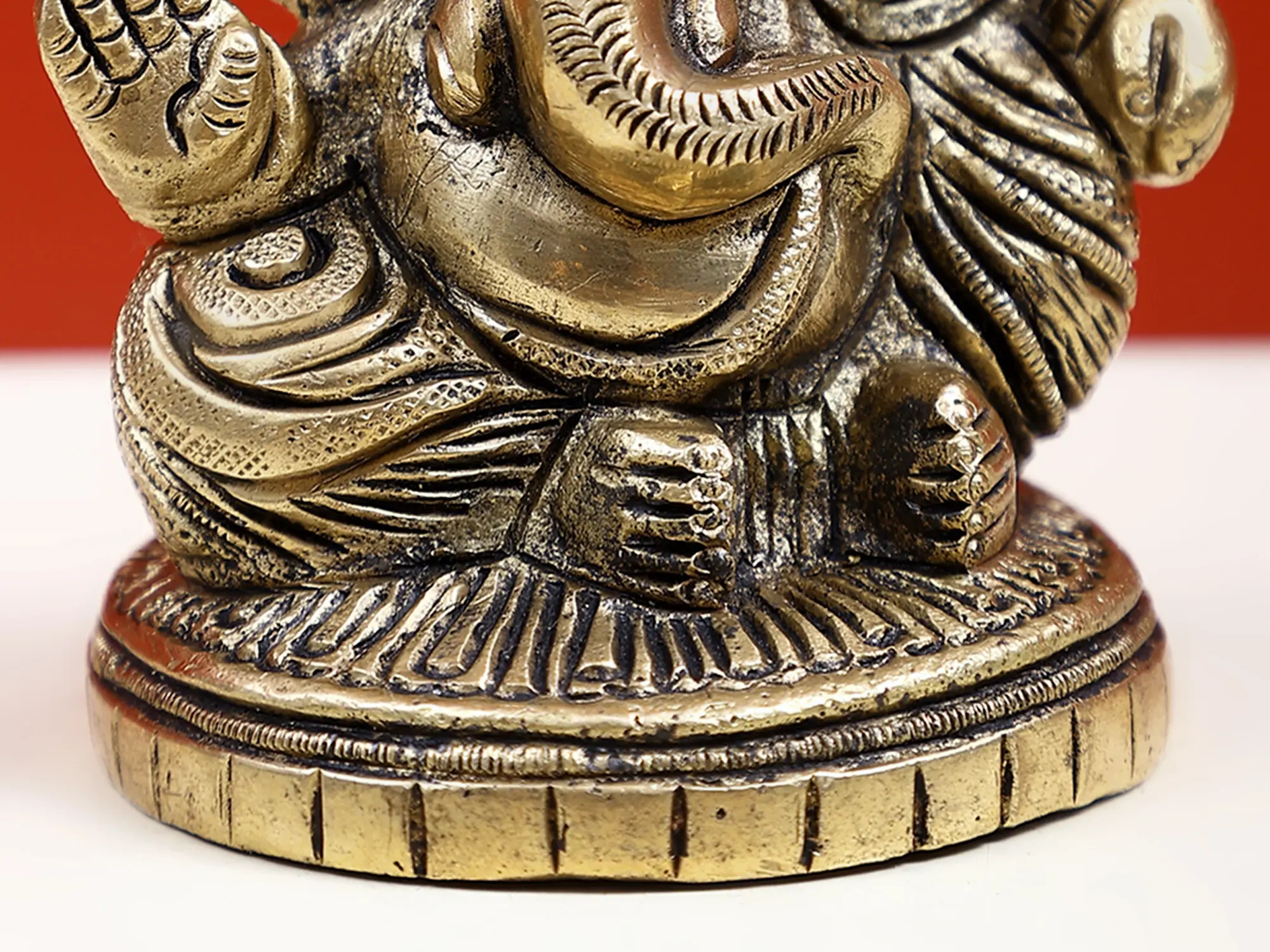 As the lord of beginnings and the guardian of thresholds, Ganesha bestows his blessings upon your endeavours, ensuring a smooth and successful start. What sets this statue apart is the remarkable portrayal of Ganesha's ears, which bear a striking resemblance to the graceful plumage of a peacock. The peacock, a symbol of beauty and grace, is often associated with Lord Ganesha, signifying his supremacy over nature's grandeur.