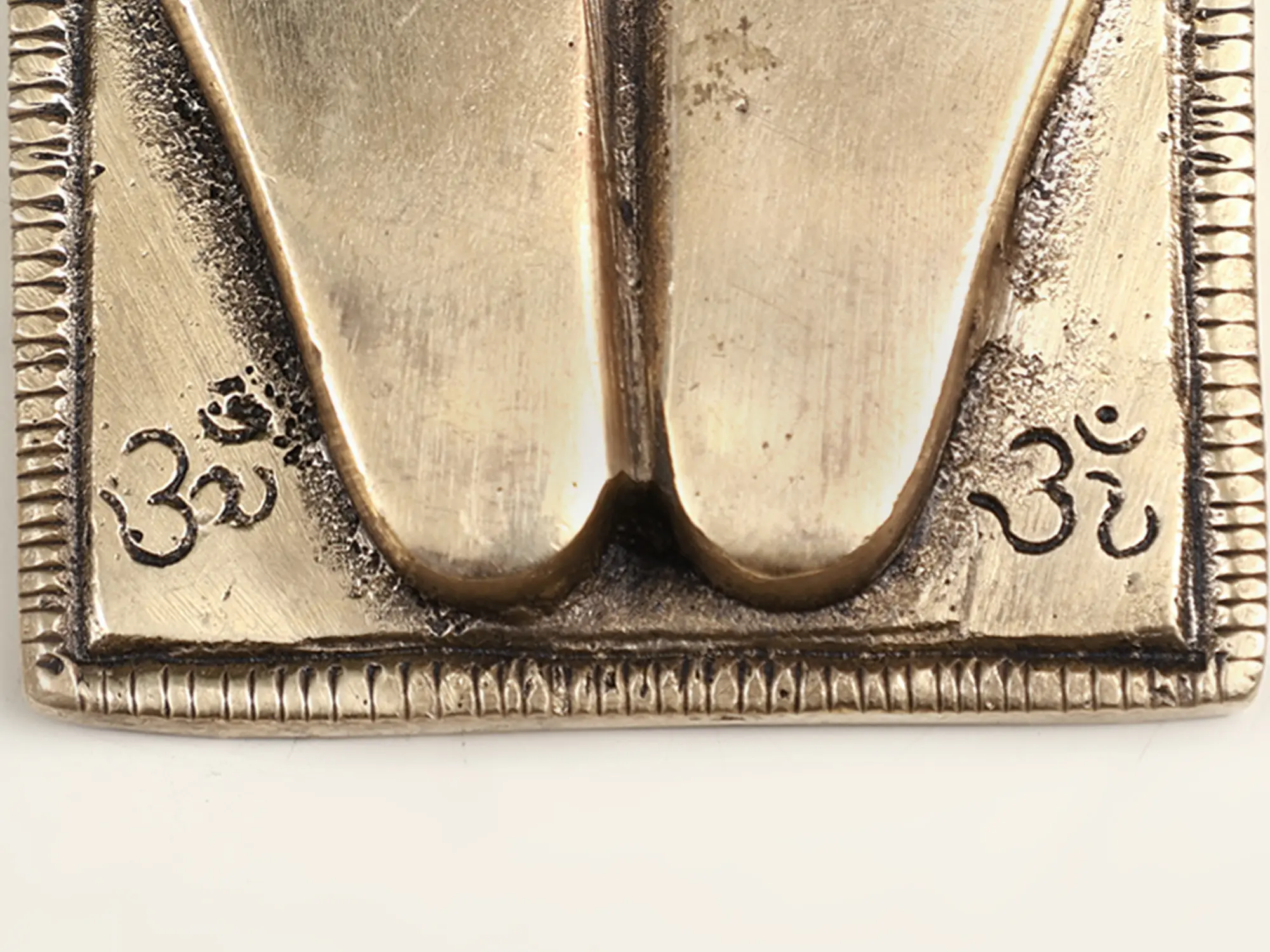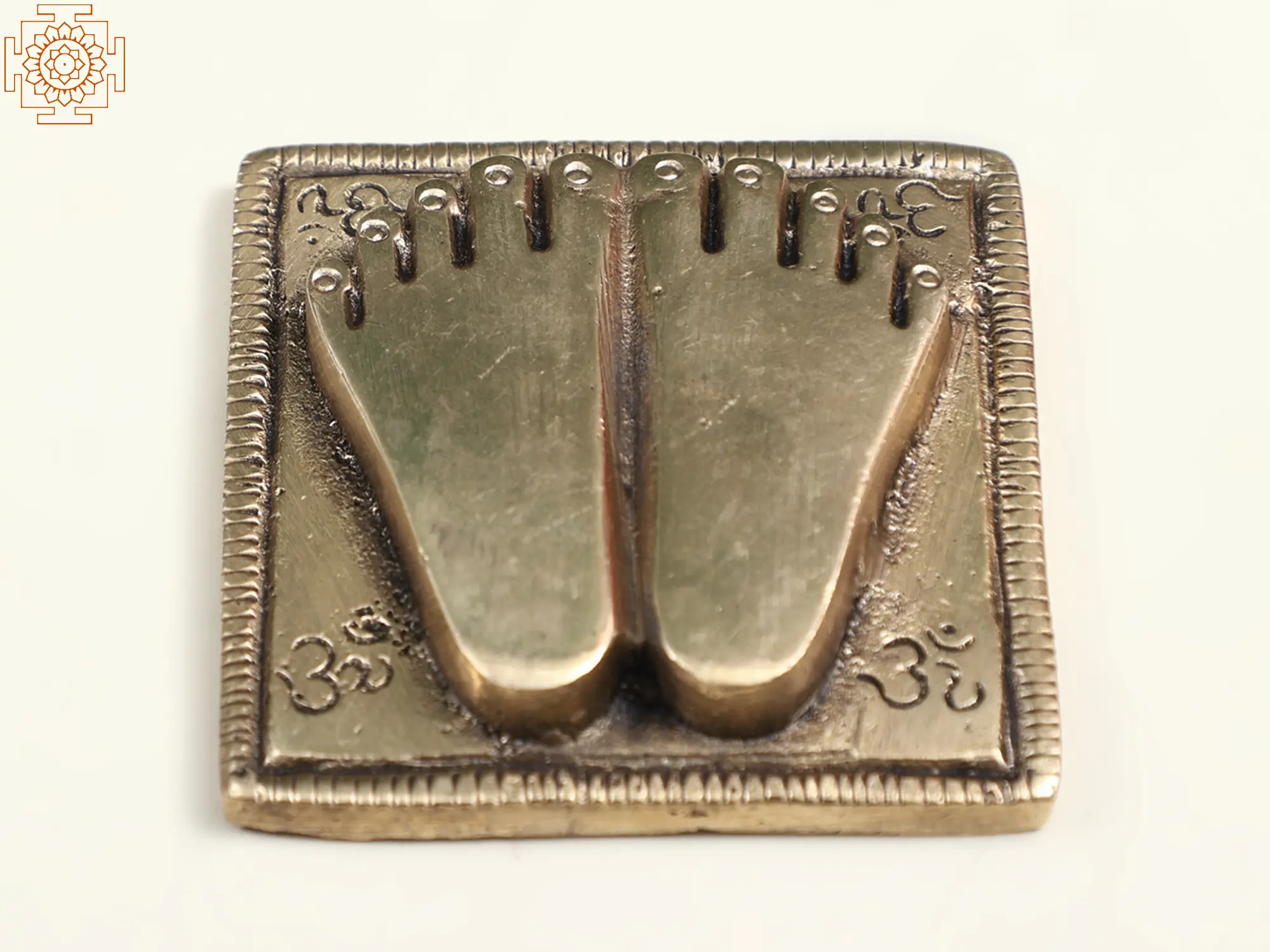 “Sacred Footprints" - The Small Brass Charan Paduka, a reverent tribute to devotion's journey, carries the essence of pilgrimage. Crafted with care, it encapsulates the spiritual odyssey of seekers. These footprints symbolize the presence of the divine, a trail blazed by enlightened souls. As we take a moment to gaze at these sacred charan padukas, we tread on the path of faith, emulating the footsteps of sages. Each impression resonates with the echo of countless prayers, connecting us to the tapestry of devotion woven across time.