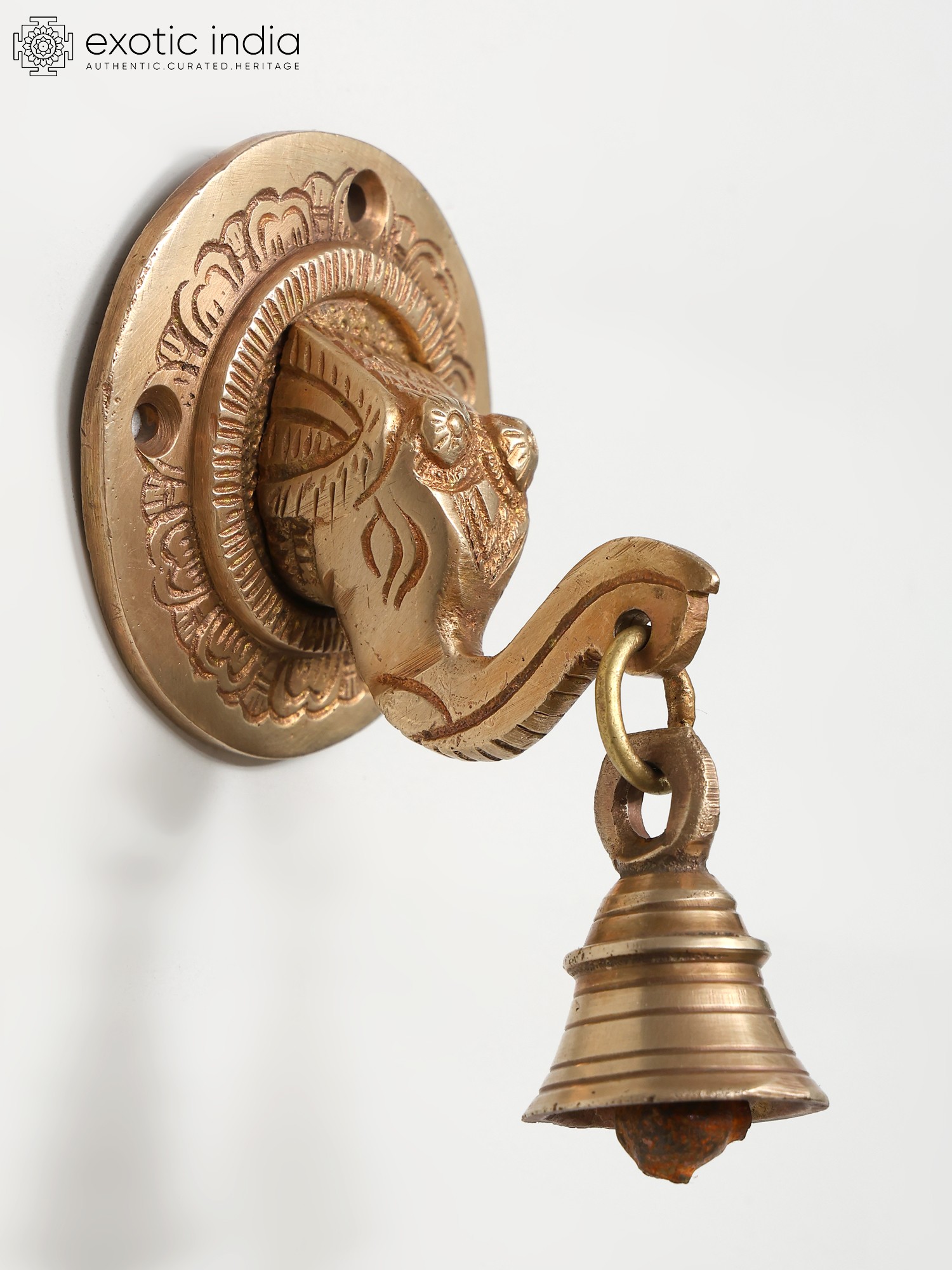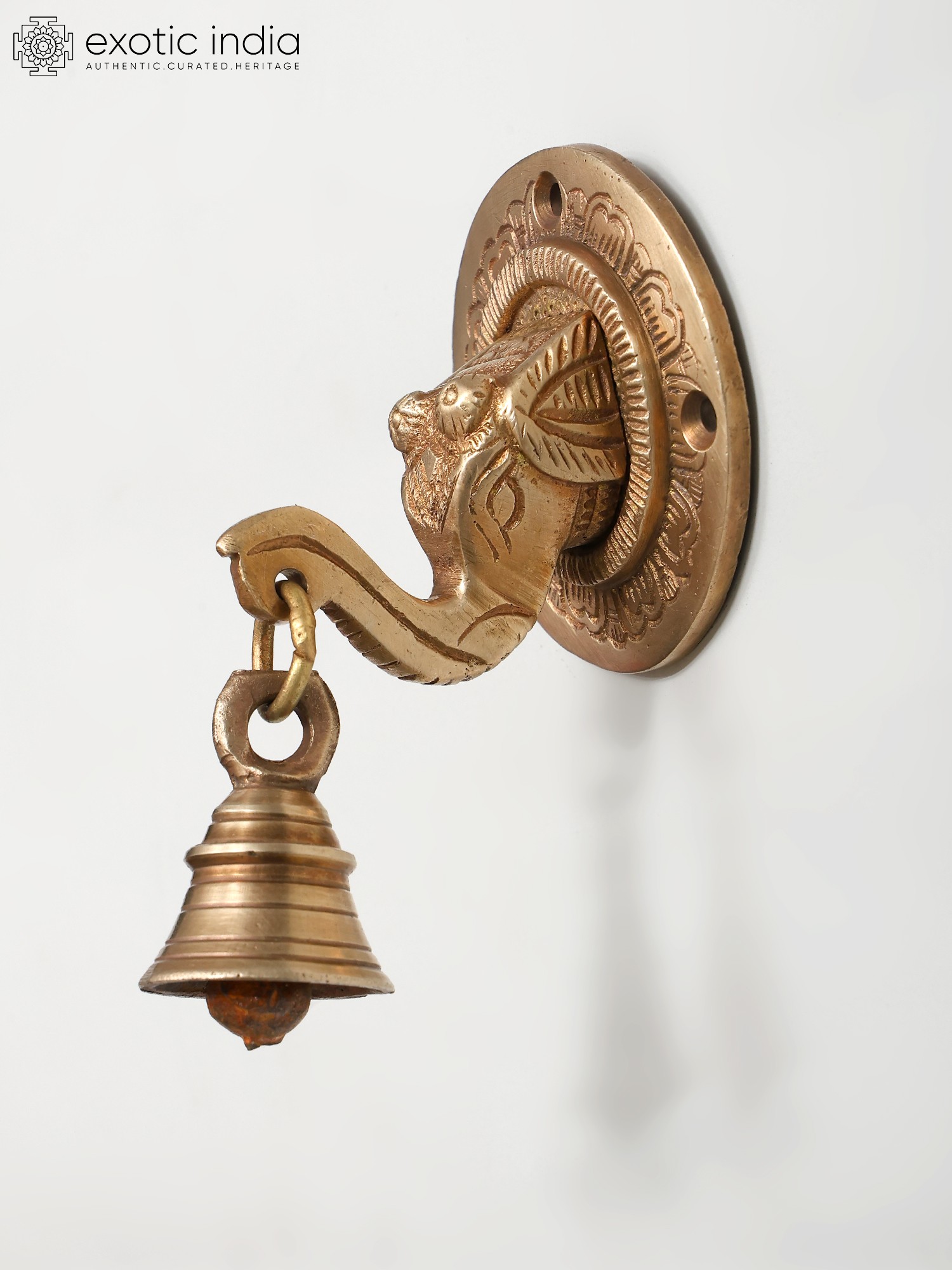 12" Superfine Sitting Lakshmi Ganesha with Dangling Bells | Wood Framed Brass Sculptures | Wall Hanging