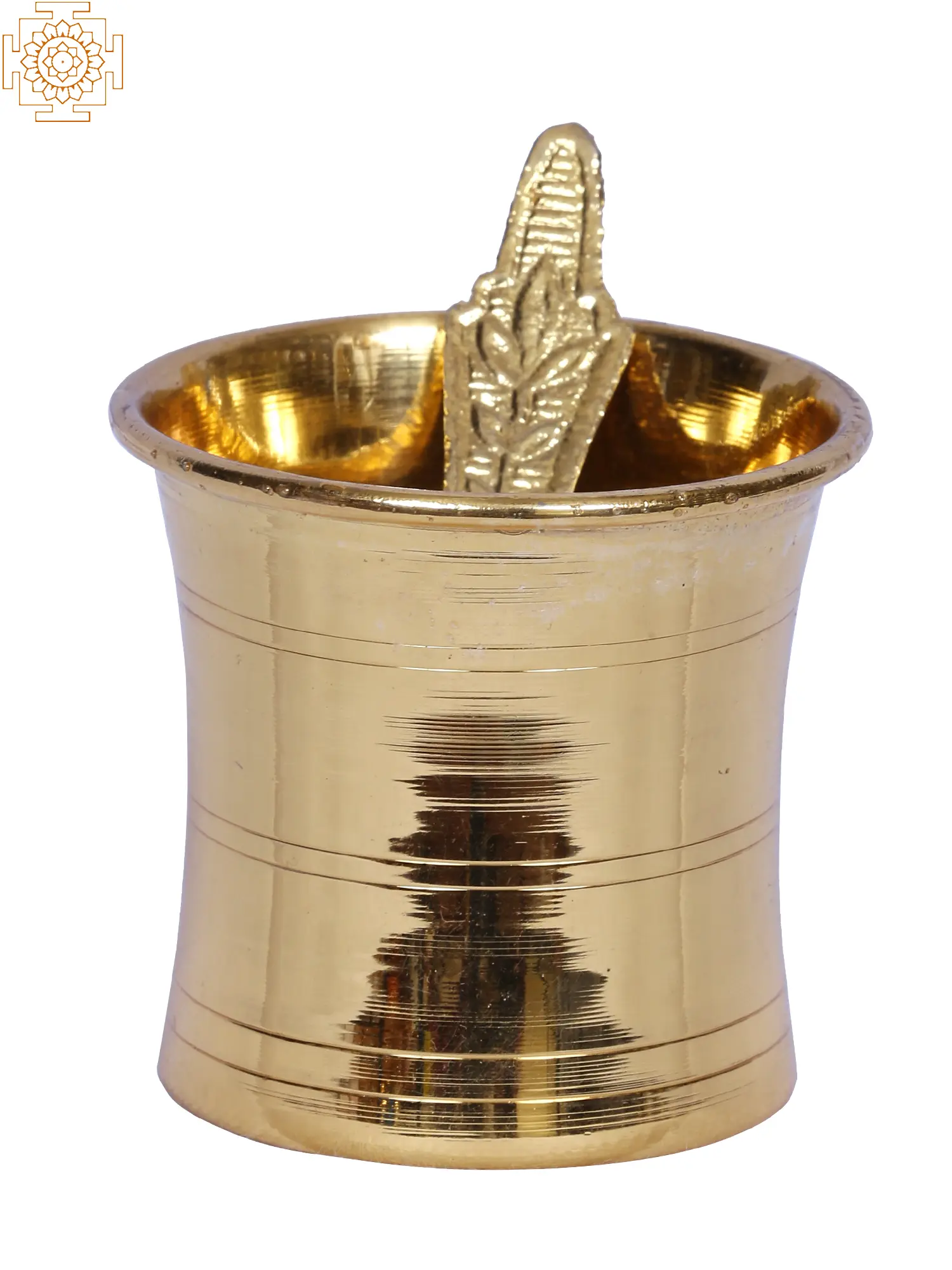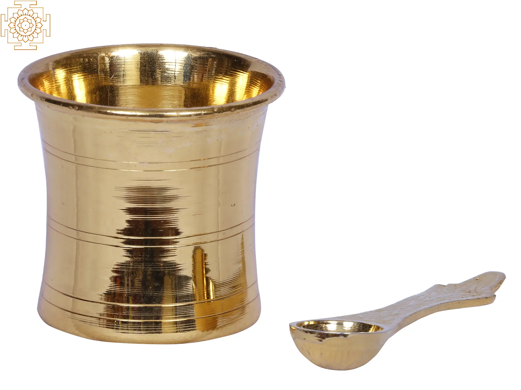 The meticulously standing Small Brass Panchapatra Udrani Set may seem unassuming but the significance it holds is extremely deep. Widely used in Hindu rituals, it embodies the essence of devotion. The Panchapatra, a small cup, and Udrani, a spoon, are integral in offerings to deities. They represent humility and gratitude. The small size signifies the simplicity of faith and the power of sincerity. As you hold them, you're not just handling brass, but a connection to centuries of spiritual practices that have withstood the test of time.