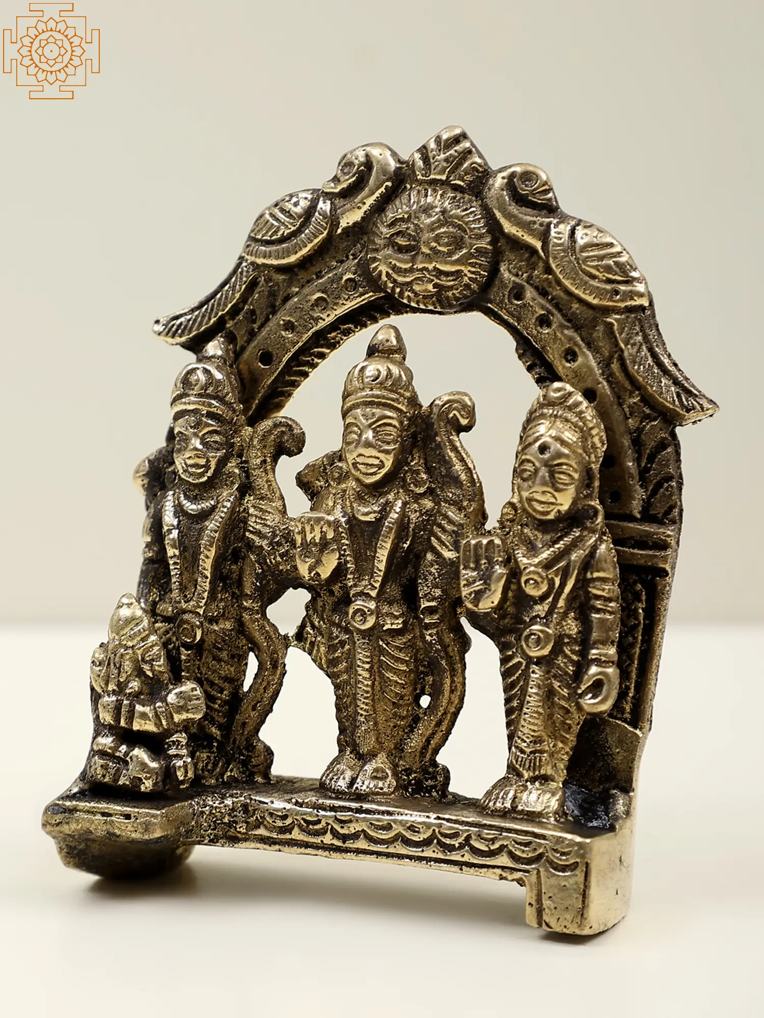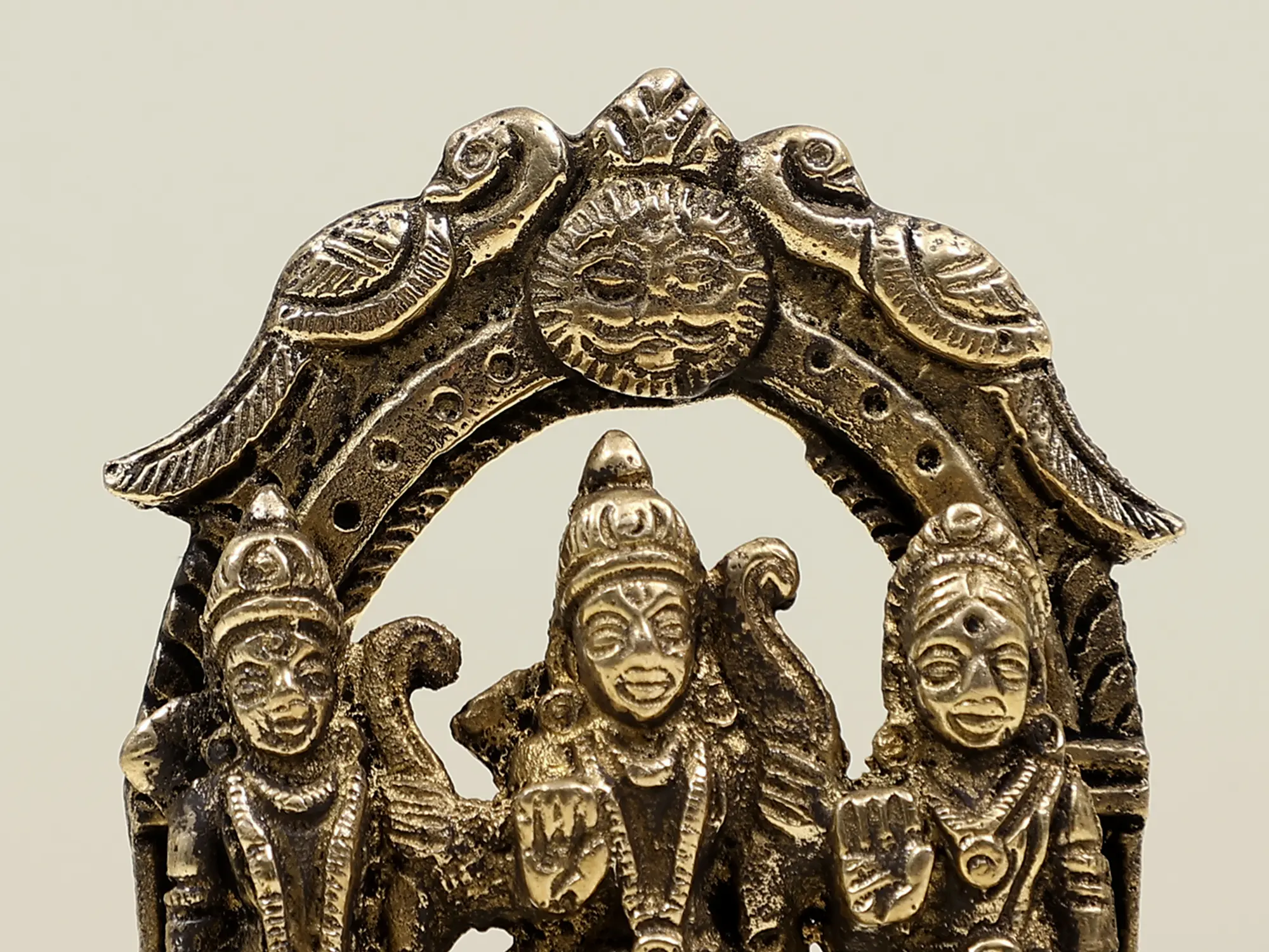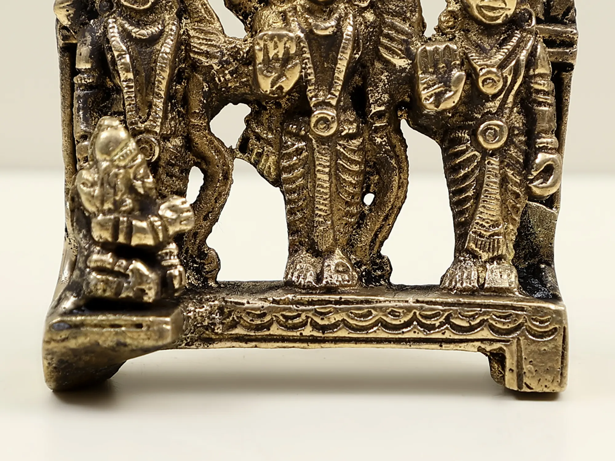 “Divine Radiance" - Within the Brass Rama Darbar, handcrafted with devotion, Rama, Sita, Lakshmana, and Hanuman's forms come alive. A testament to artistic finesse, it captures a transcendental moment. The scene encapsulates Rama's righteous rule and unwavering devotion. Holding the bow and arrow, Rama symbolizes resolute dharma, while Sita's grace radiates alongside him. Hanuman's loyalty finds expression in every detail. This ensemble narrates an eternal tale of righteousness prevailing over darkness. As we admire this creation, we bask in the divine radiance and the embodiment of values that illuminate our path.