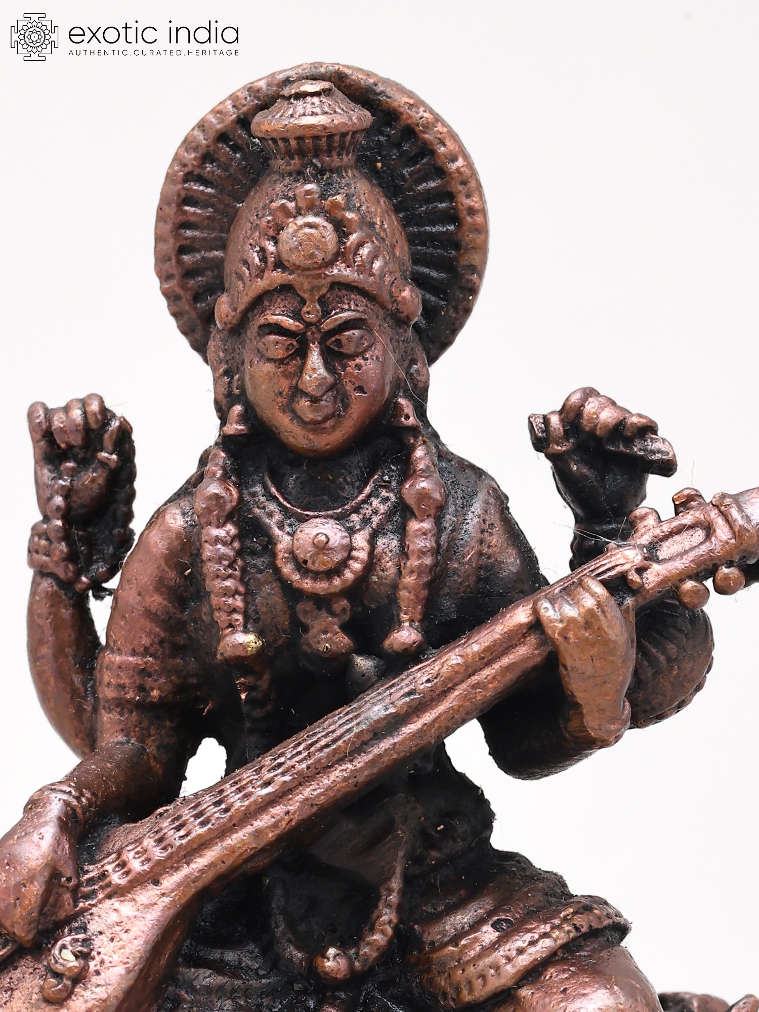 Small Goddess Saraswati Playing Veena | Copper Statue