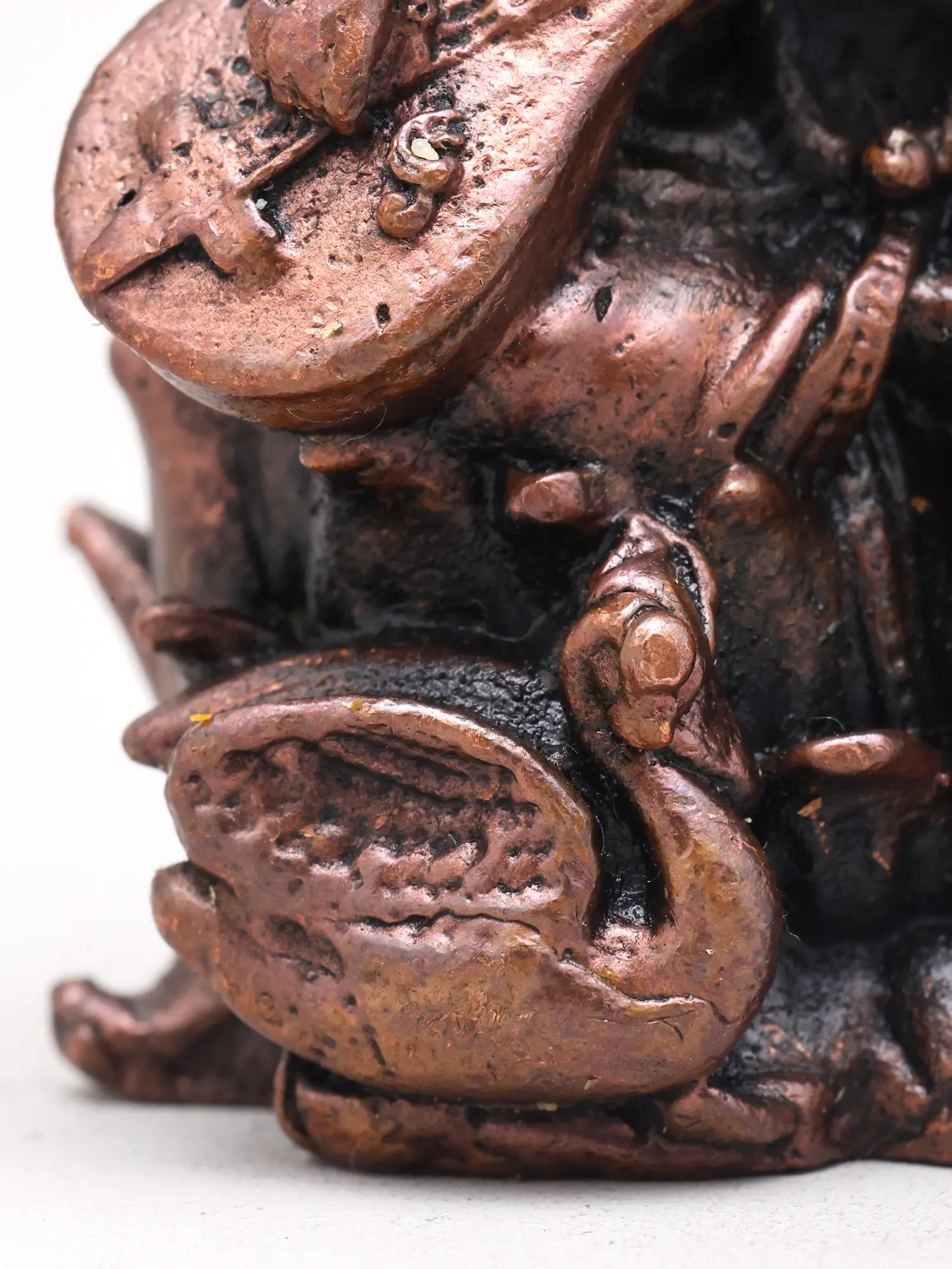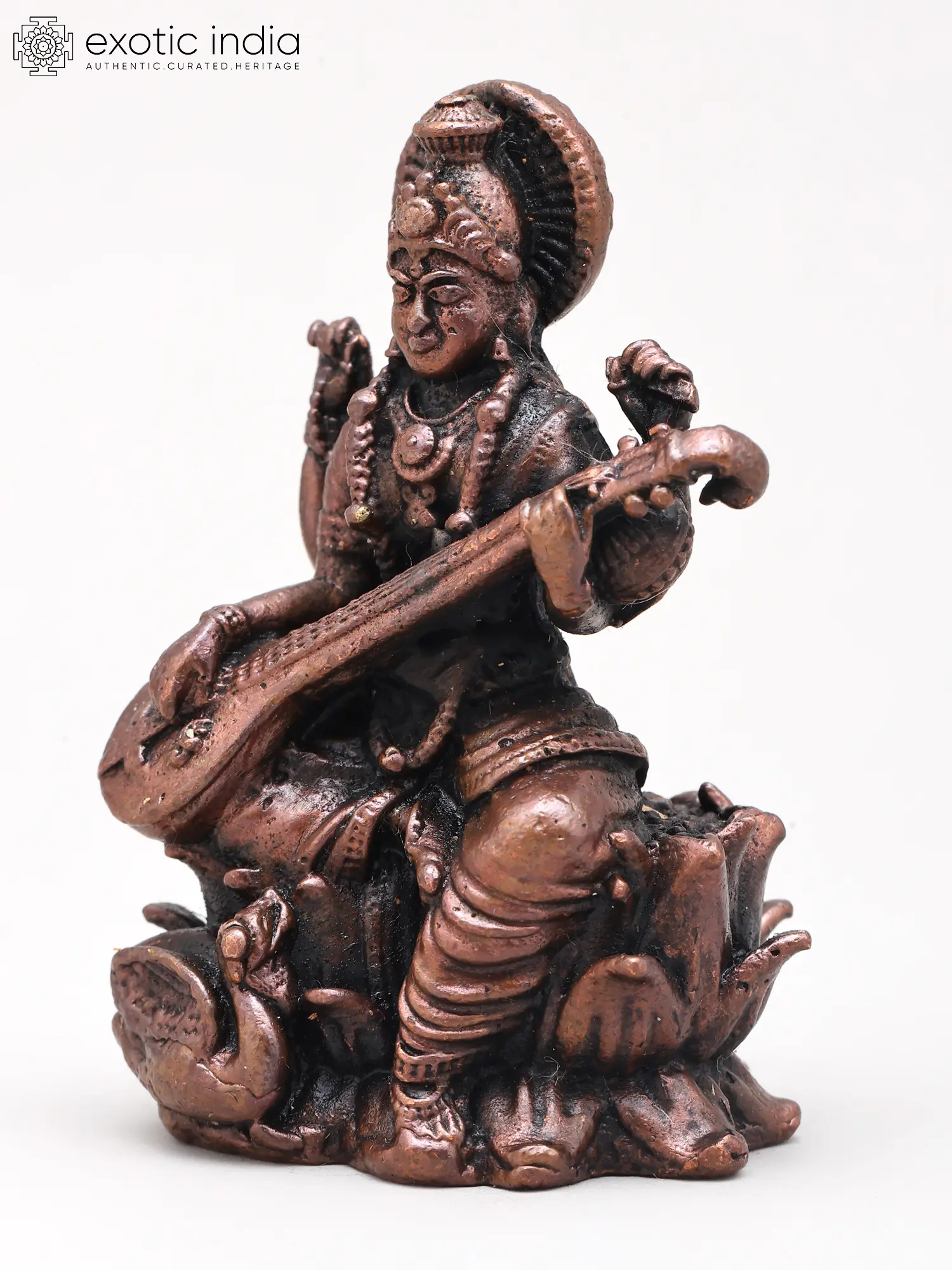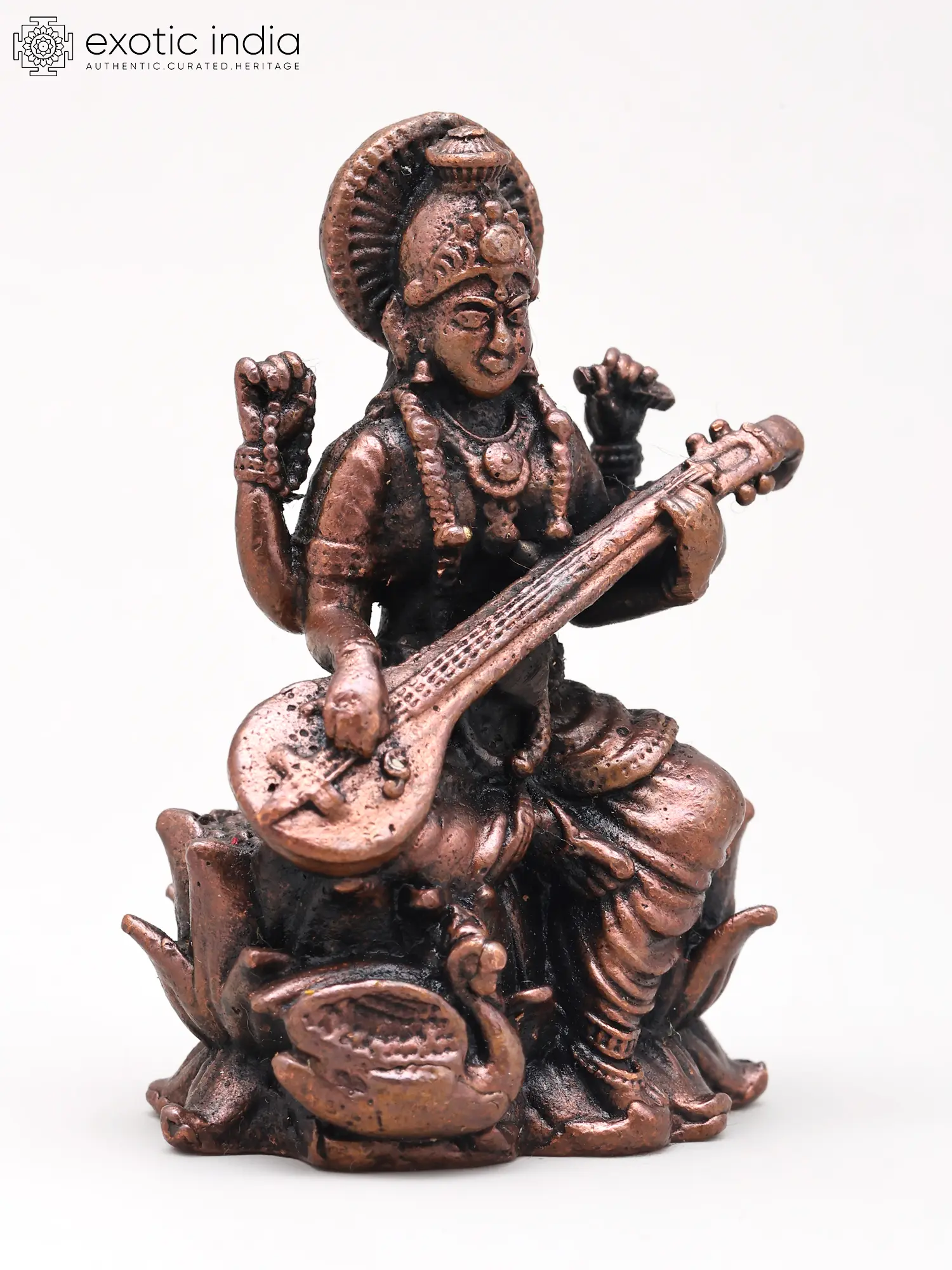 2" Small Devi Saraswati Copper Statue Seated on Swan