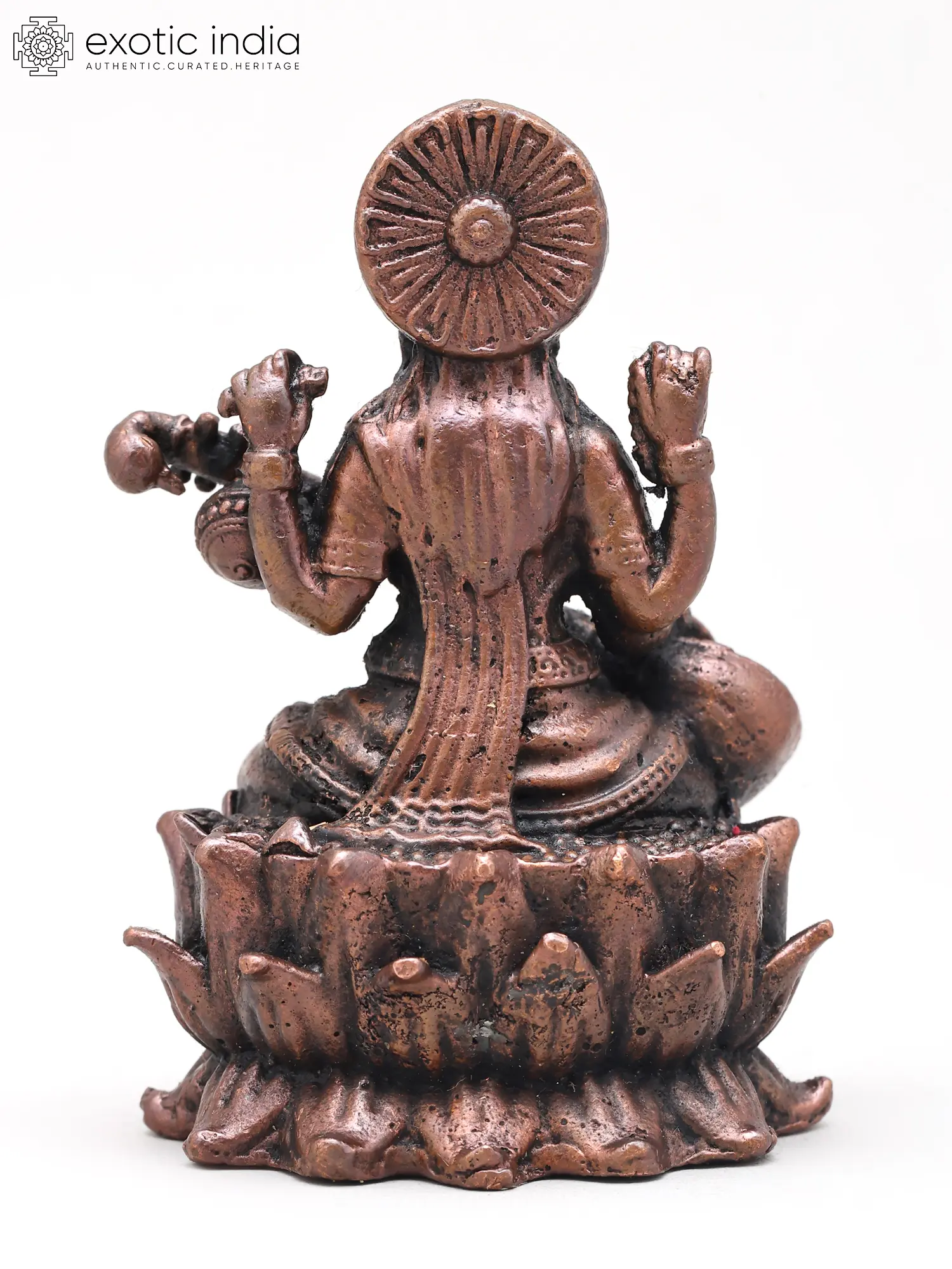 Small Goddess Dhanalakshmi Idol on Lotus - Goddess of Wealth | Copper Statue | Made in India