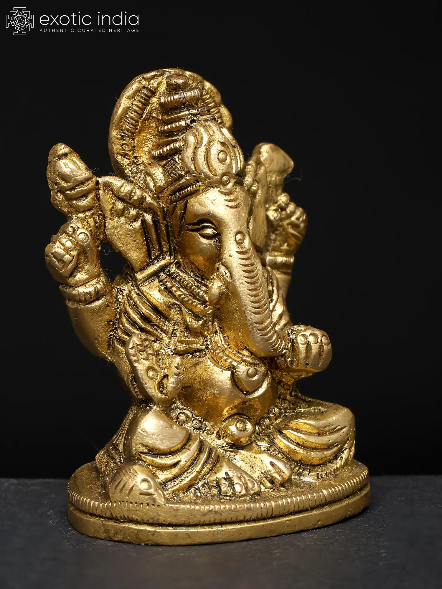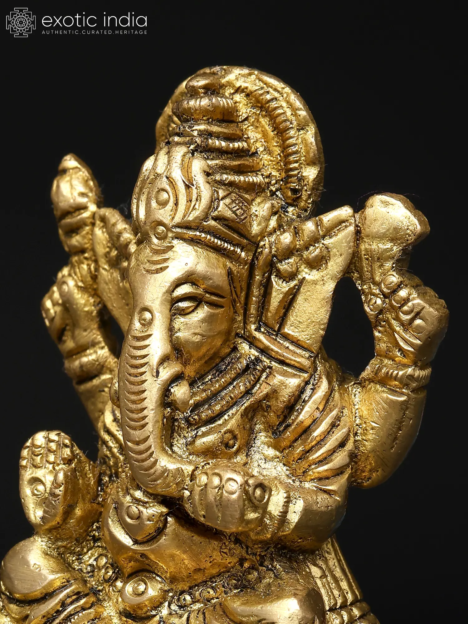 4" Chaturbhuja Lord Ganesha | Brass Idol | Made In India
