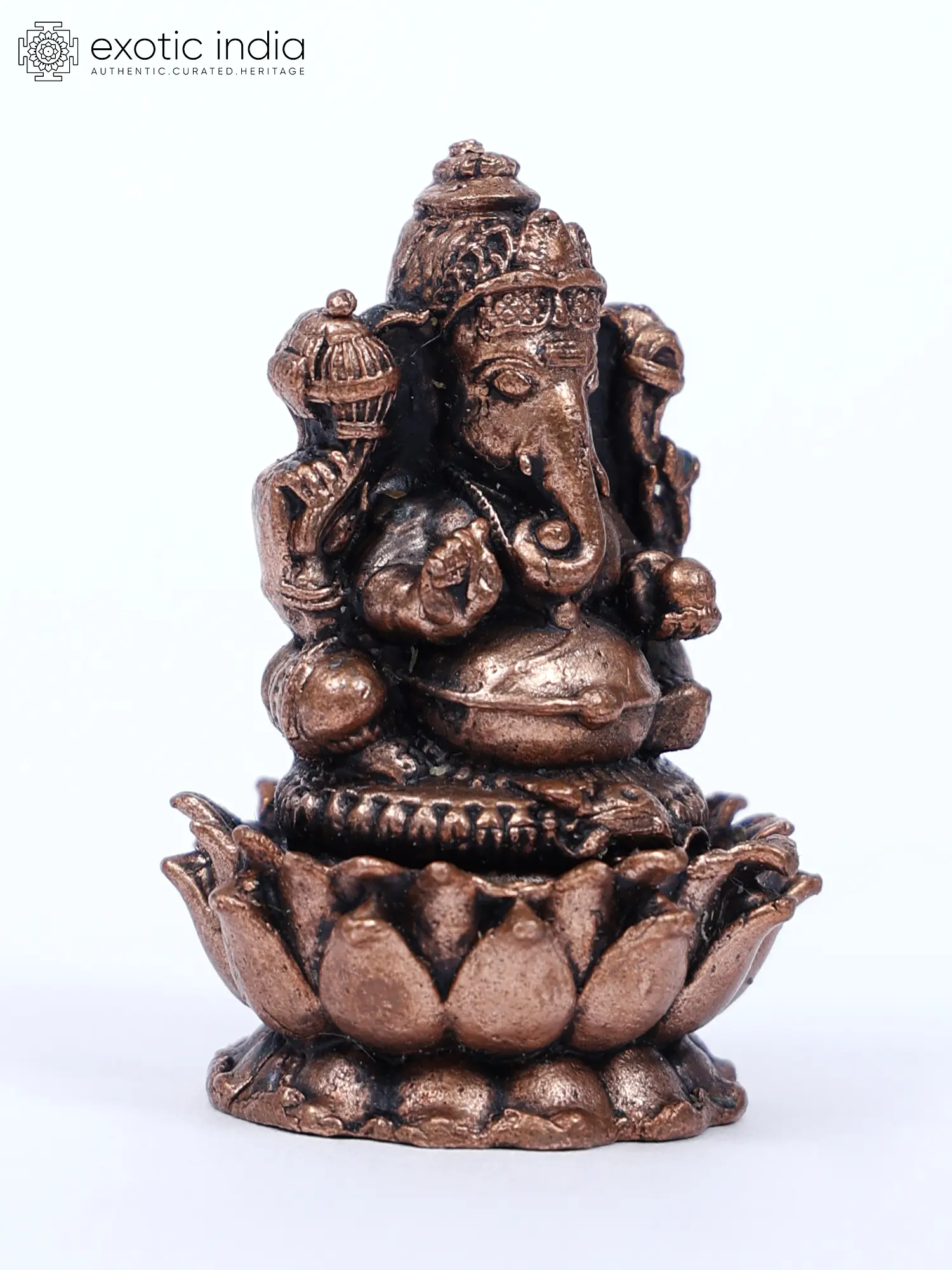 With four hands adorned with symbols of power and prosperity, Lord Ganesha, also called Pramoda (the lord of all abodes), emanates an aura of tranquility and blessings. His gentle gaze exudes wisdom, while his broken tusk symbolizes sacrifice for knowledge attainment. Seated gracefully upon a blooming lotus, his ample belly signifies abundance and contentment.