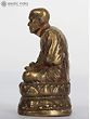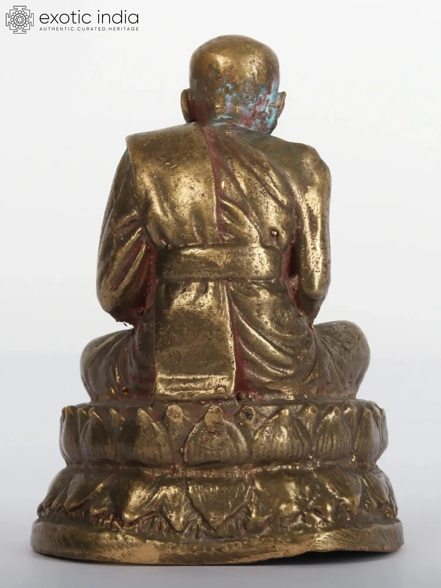 in Padmasana - the monk’s hands rest together in the Dhyana mudra. Wearing the