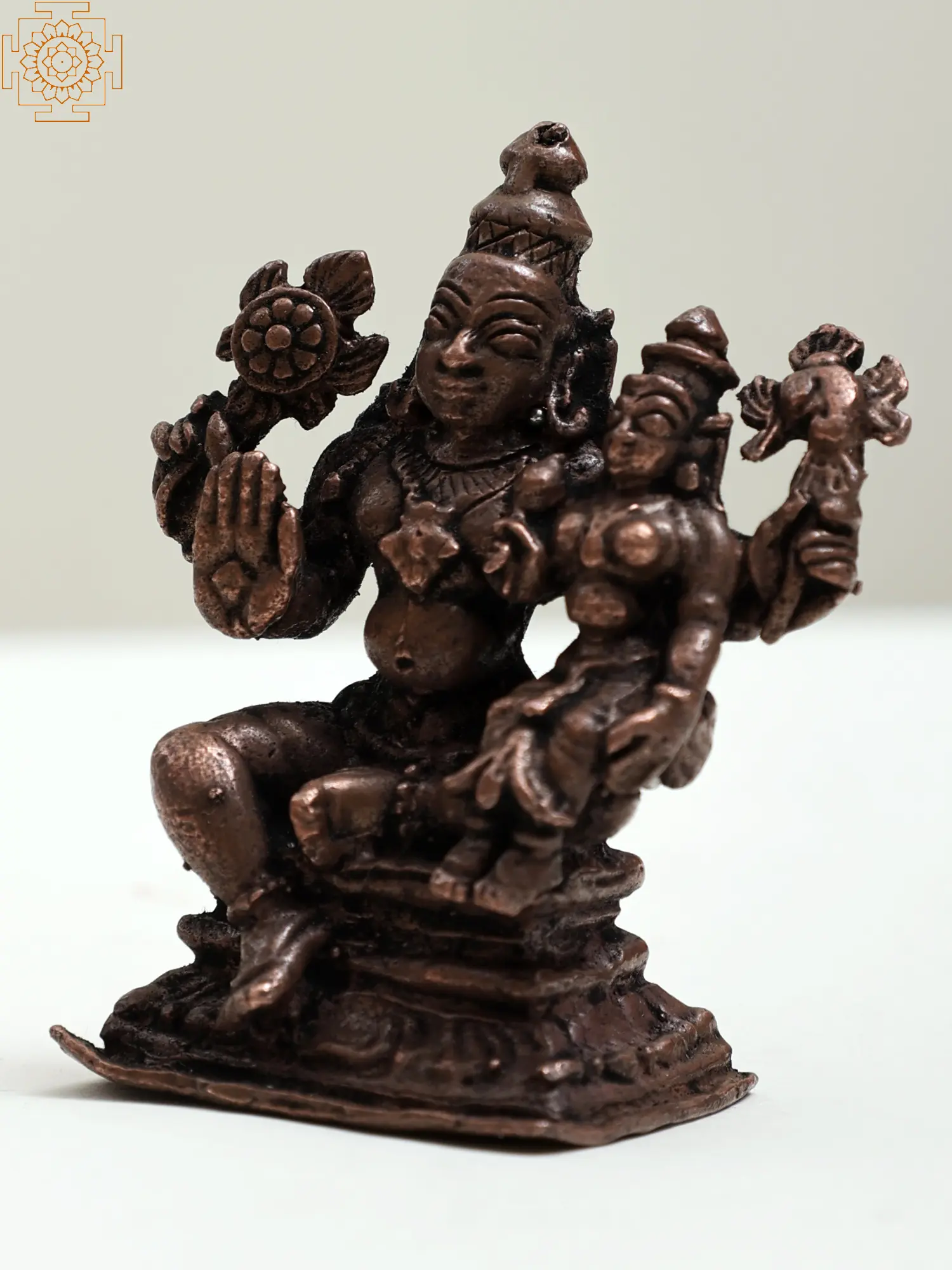Lakshmi-Narayana vigraha in a Hindu household has been advised by religious traditions as a fortuitous icon and a source of divine aura. This small copper statue depicts Sri Vishnu, as Chaturbhuja Narayana, carrying Sri Lakshmi in his lap, with the heavenly duo showering the devotees with their paternal benevolence.
