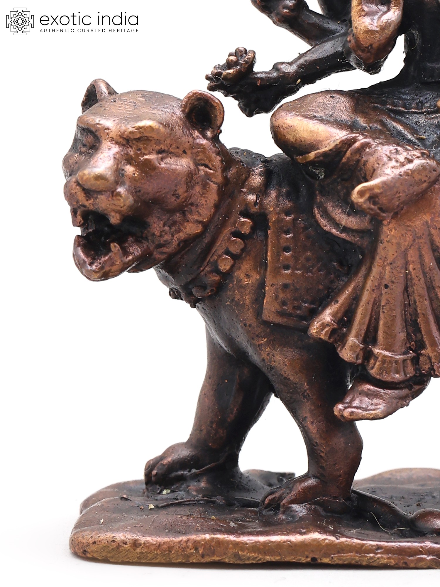 2" Small Goddess Durga Seated on Roaring Lion | Copper Statue | Made in India
