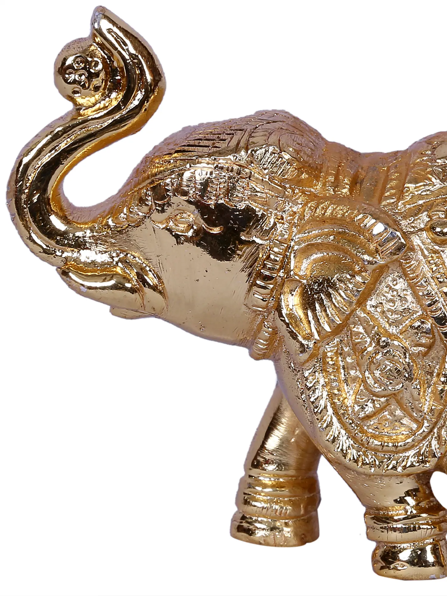 Bring an element of sacred beauty and potent symbolism into your home with this exquisite, gold-plated brass elephant figurine. Crafted with remarkable detail, this piece captures the majestic presence of the elephant, an animal revered across many cultures for its wisdom, strength, and good fortune. The lustrous gold plating enhances the inherent elegance of the brass, creating a radiant accent piece that will draw the eye and inspire a sense of peace.