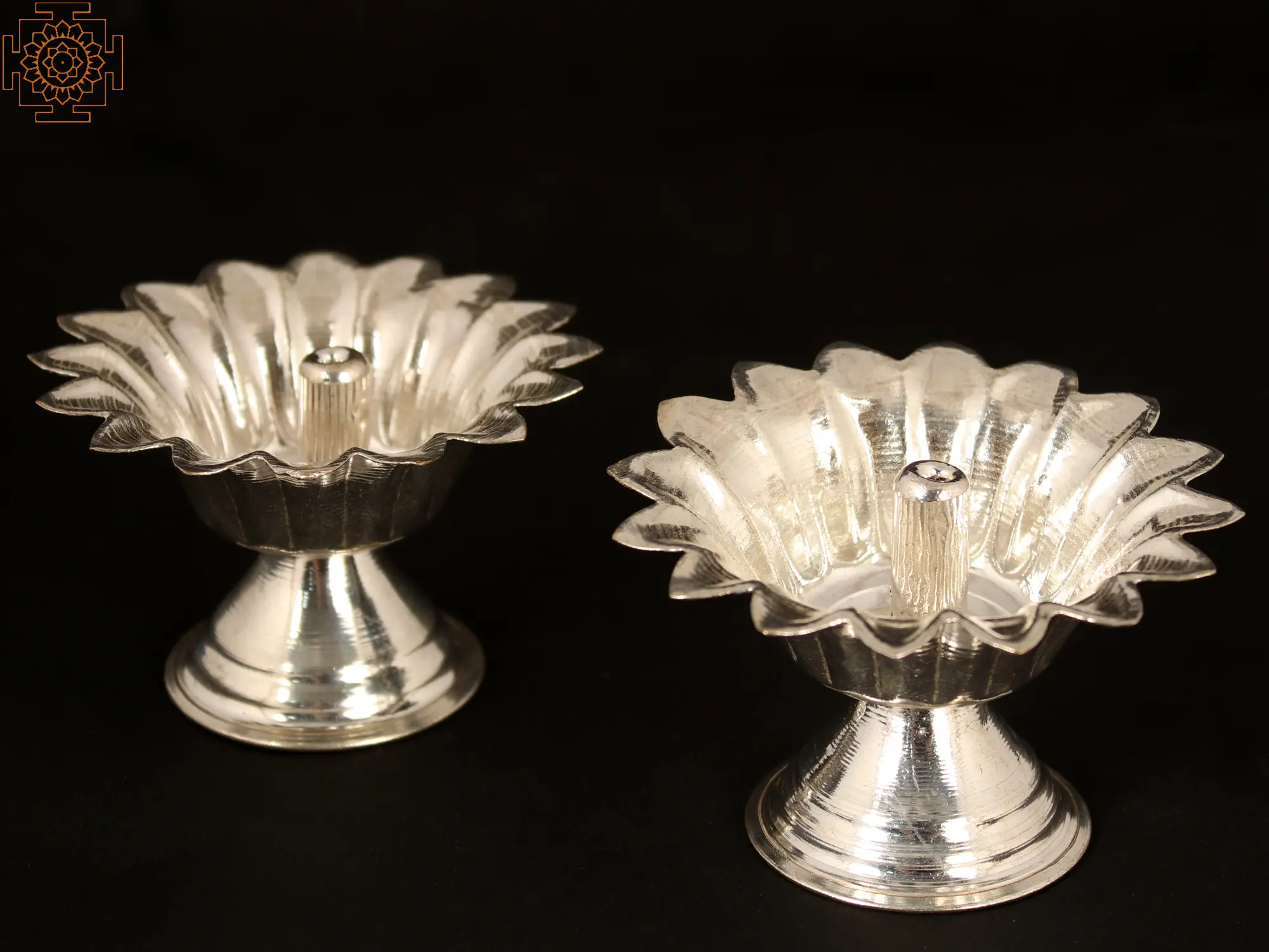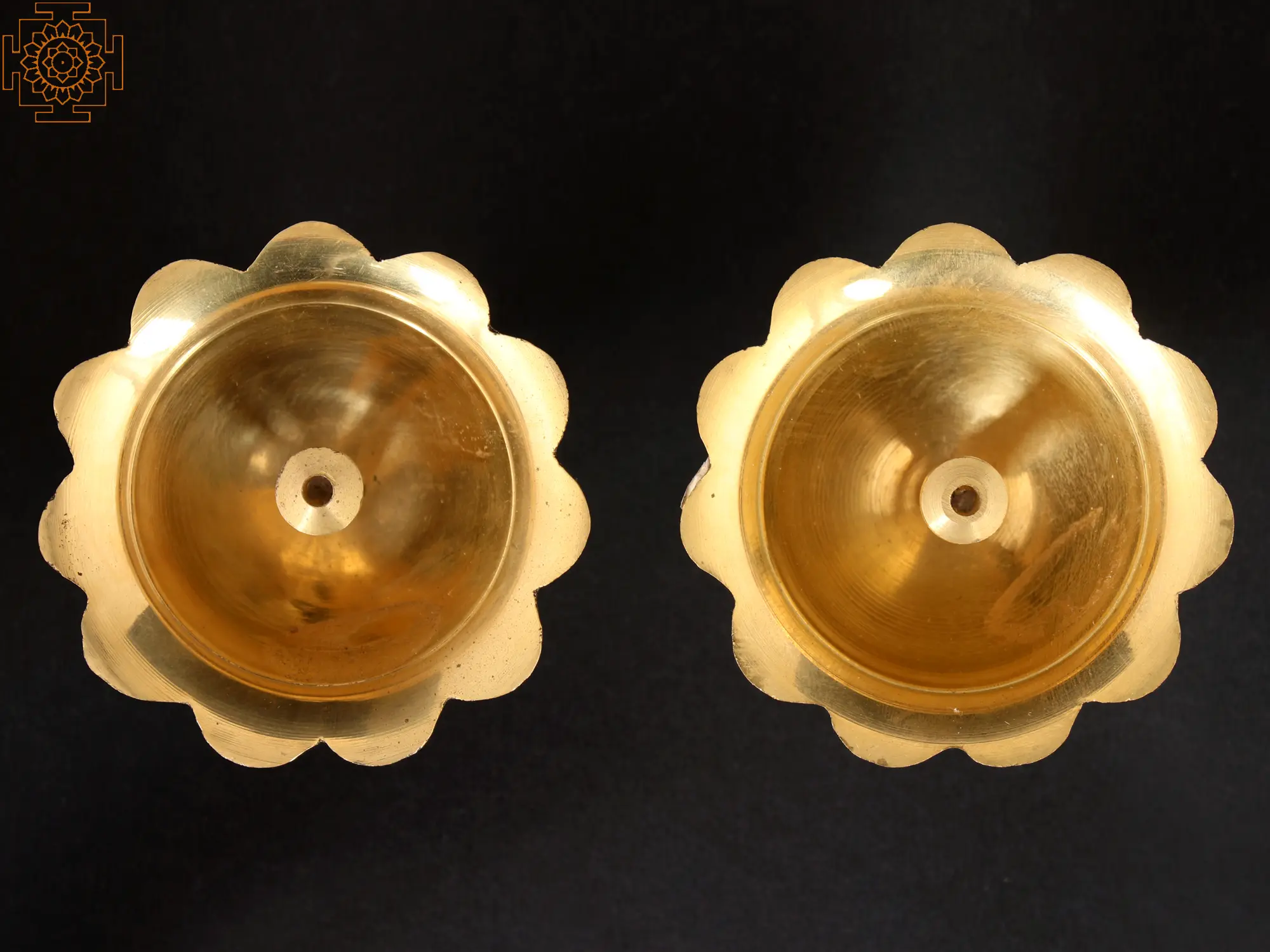 Create a magical atmosphere in your room with this flower shaped deepam set, which is made of fine metal. Two gorgeous deepams are included in this set, each of which is meticulously created to resemble a flower in bloom. These dazzling golden deepams seem even more appealing because to the petals' exquisite craftsmanship. Their lifetime is ensured by the brass material, which provides a touch of beauty and toughness. These deepams, with their warm, flickering glow, lend a mesmerising atmosphere to religious services, celebratory events, or as a decorative feature. With this flower shaped deepam set, a symbol of spiritual clarity and peace, embrace the heavenly brilliance and infuse your house with tranquilly.