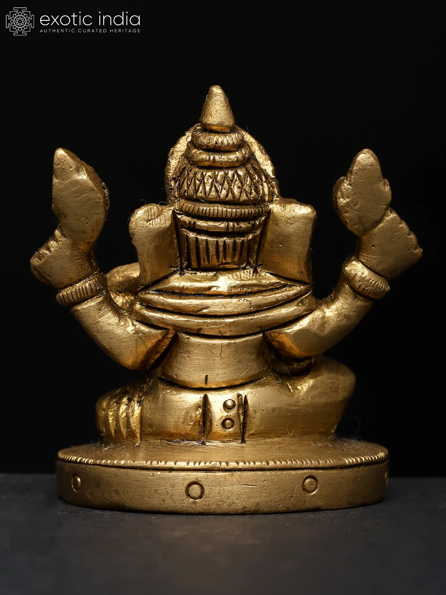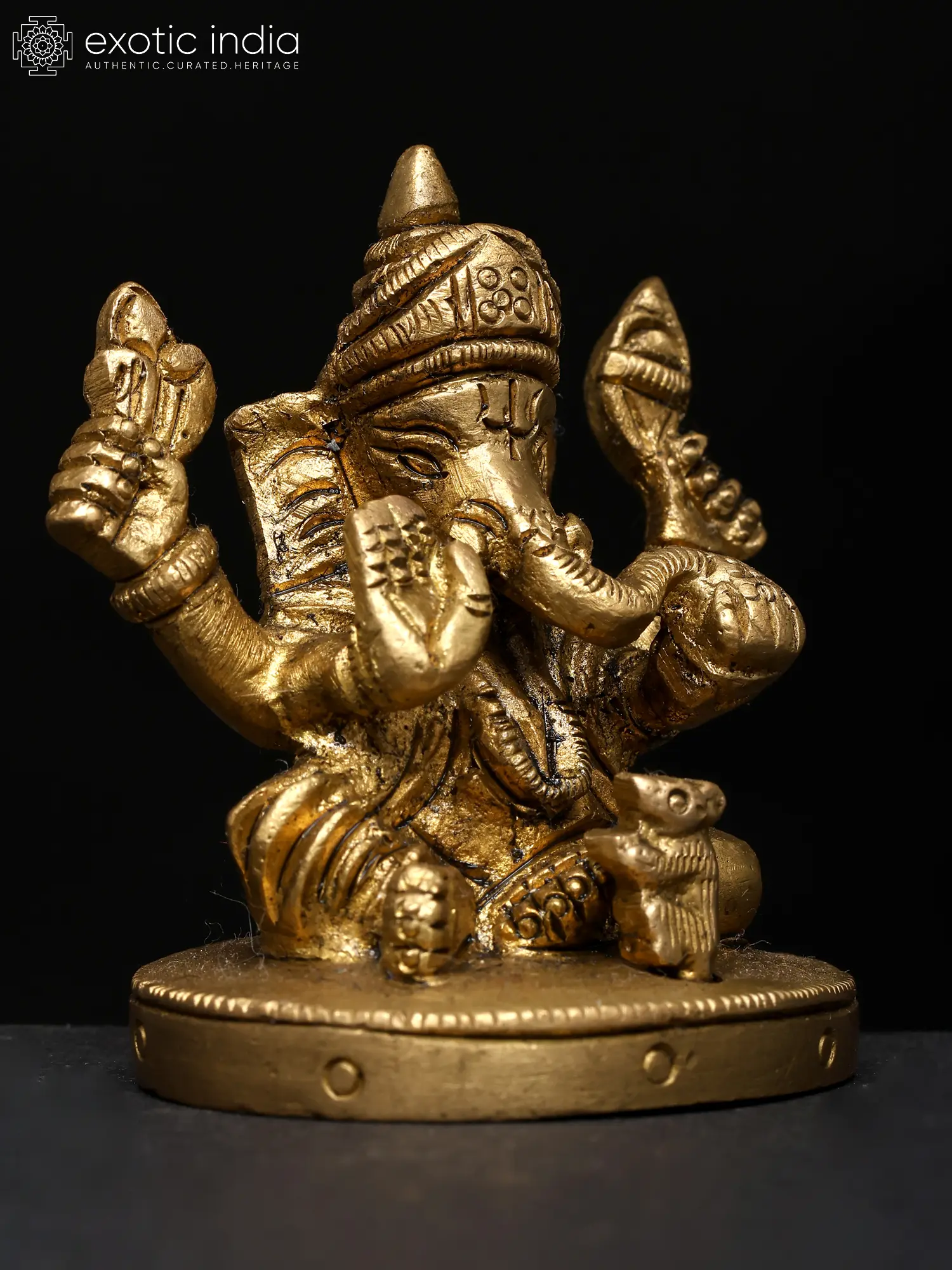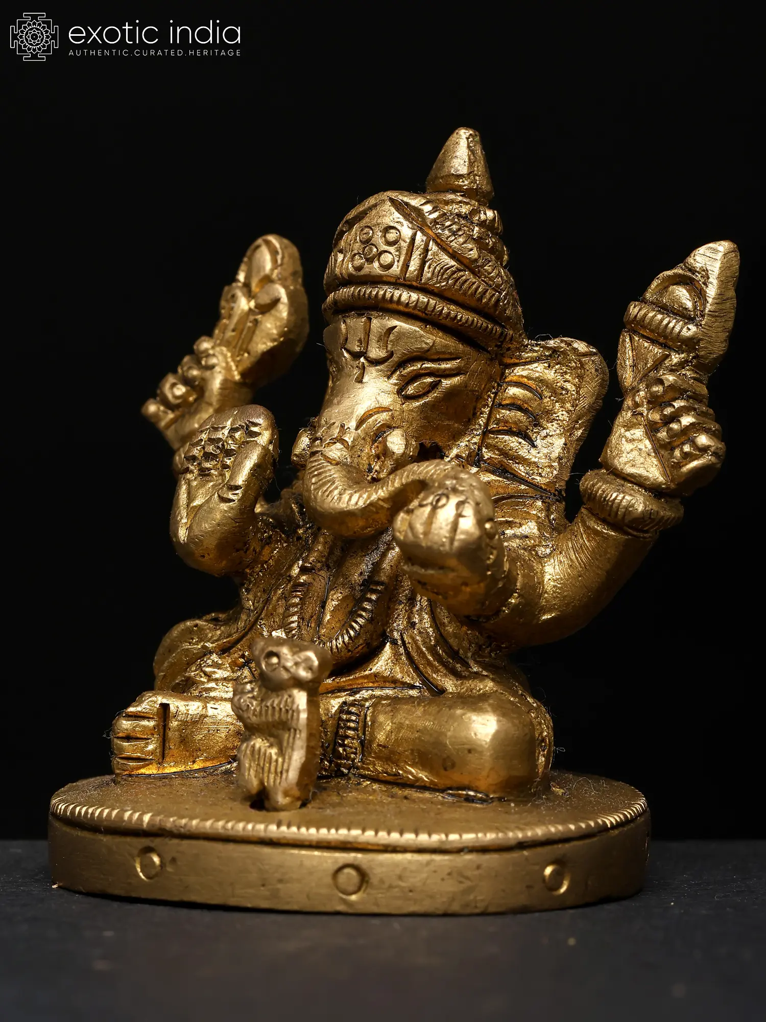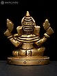 22" Sitting Chaturbhuja Lord Ganesha in Blessing Gesture | Brass Statue with Inlay Work