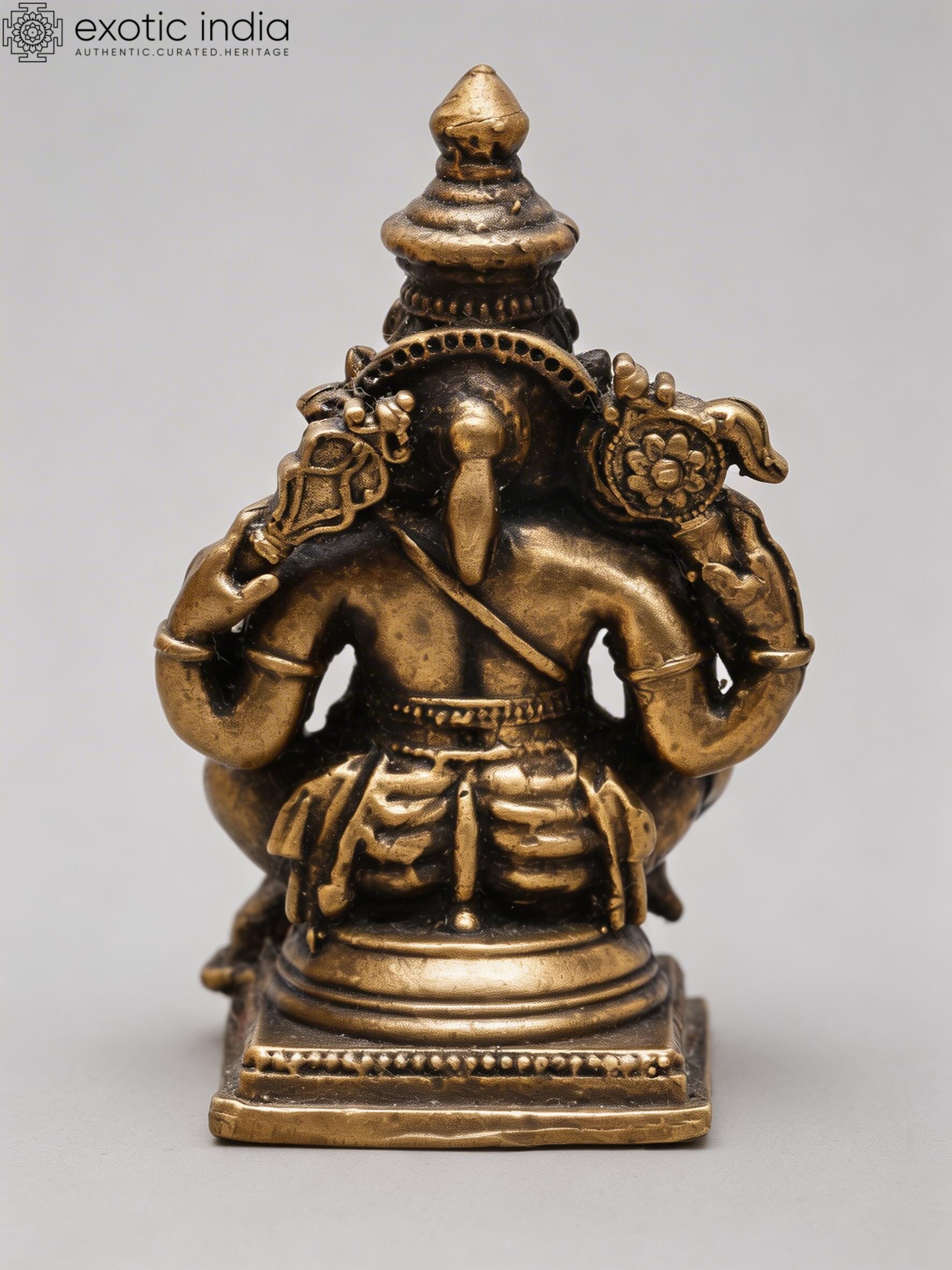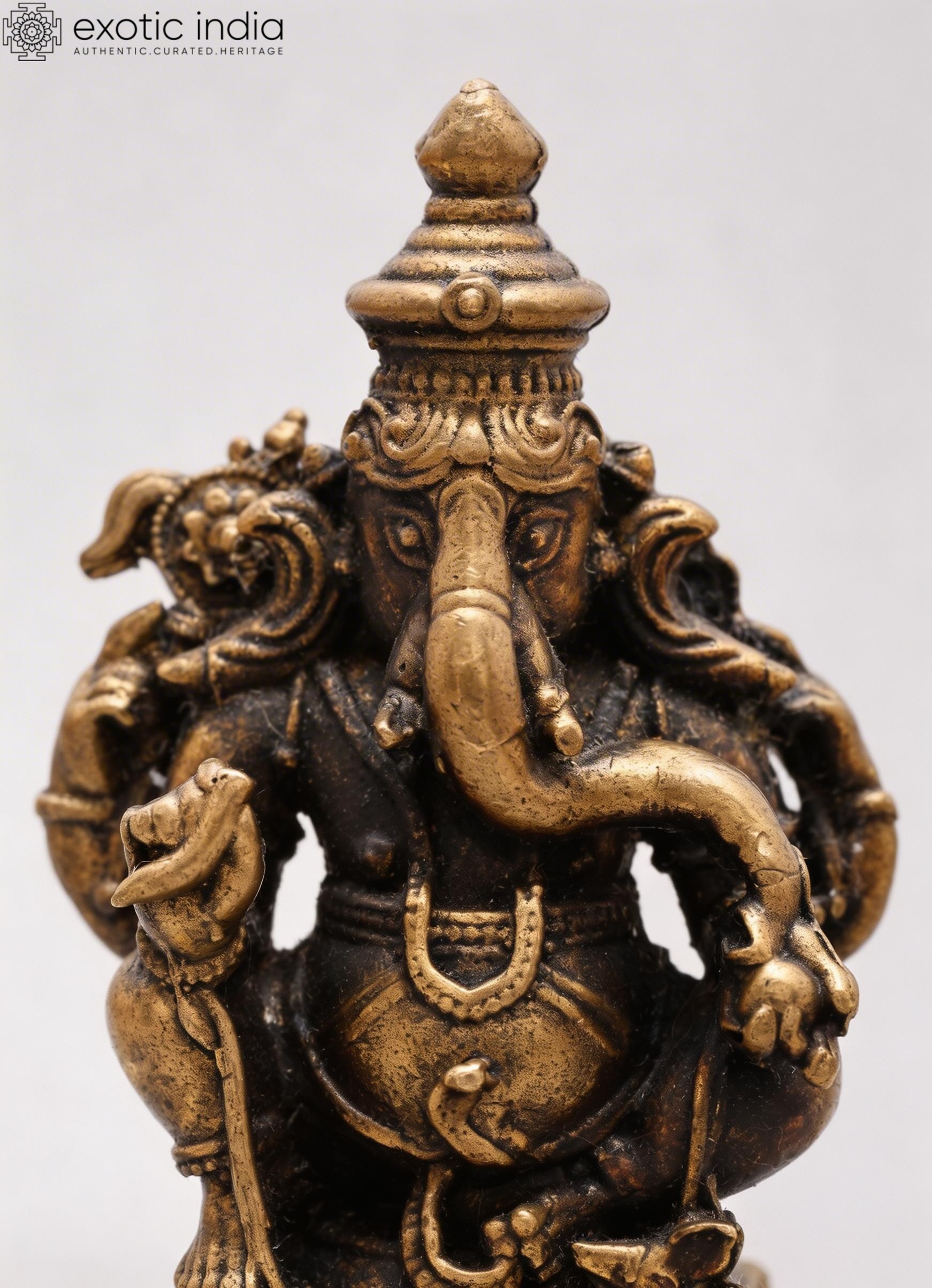3" Small Ashtabhuja Lord Ganesha with Five Heads Seated on Kirtimukha Throne | Copper Statue | Made in India