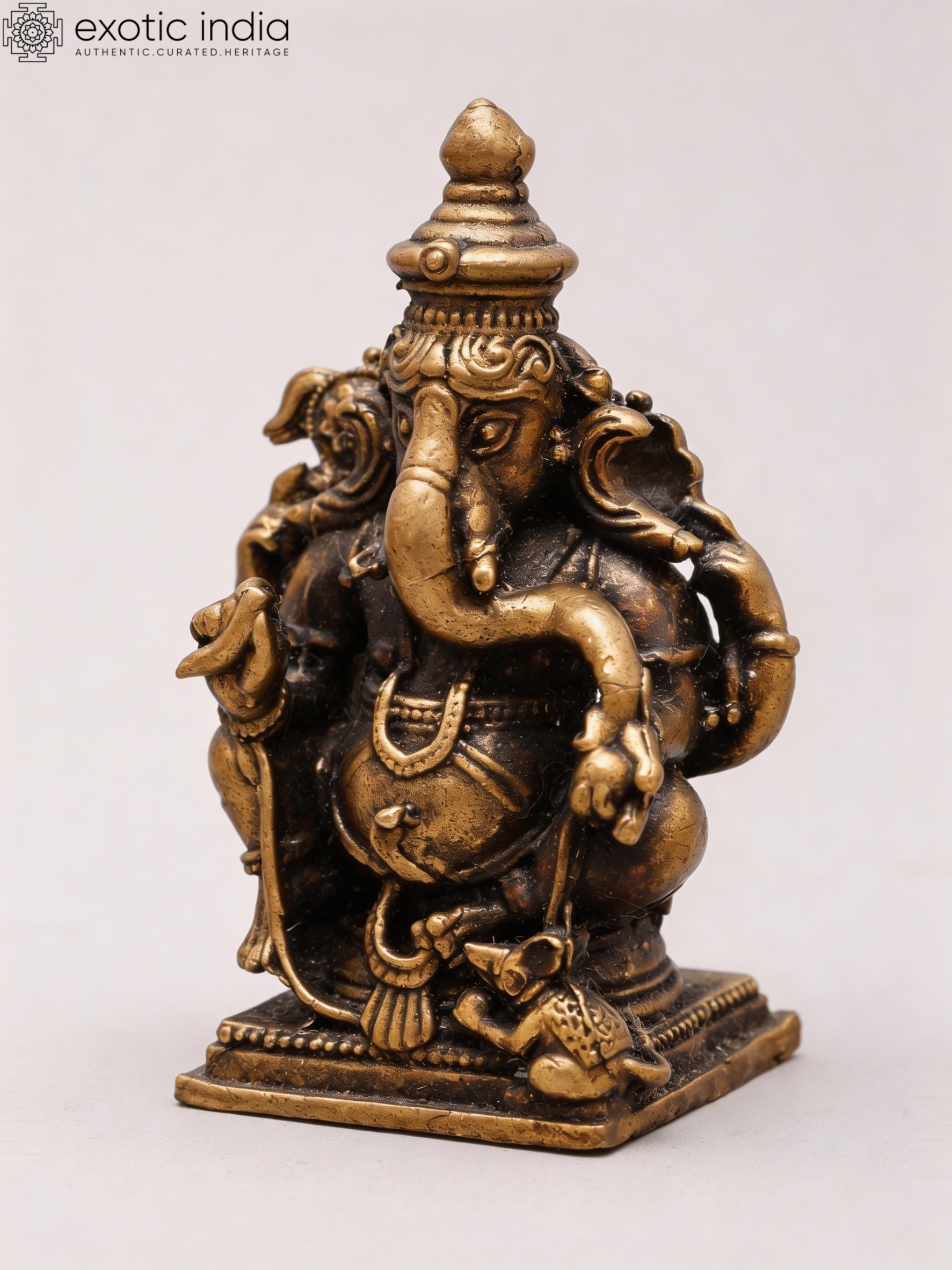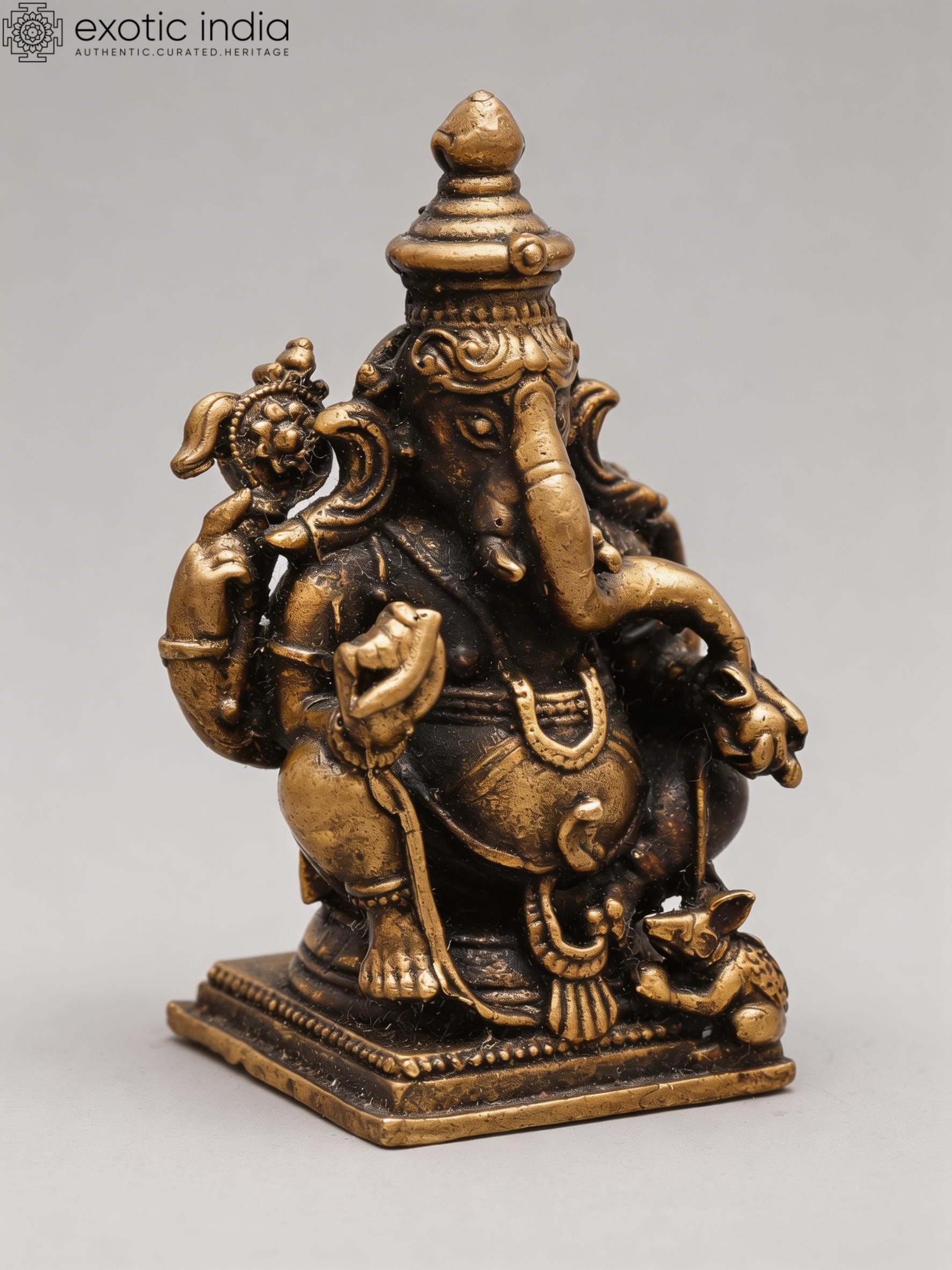 2" Small Ganapati Bappa with Mushak | Copper Statue