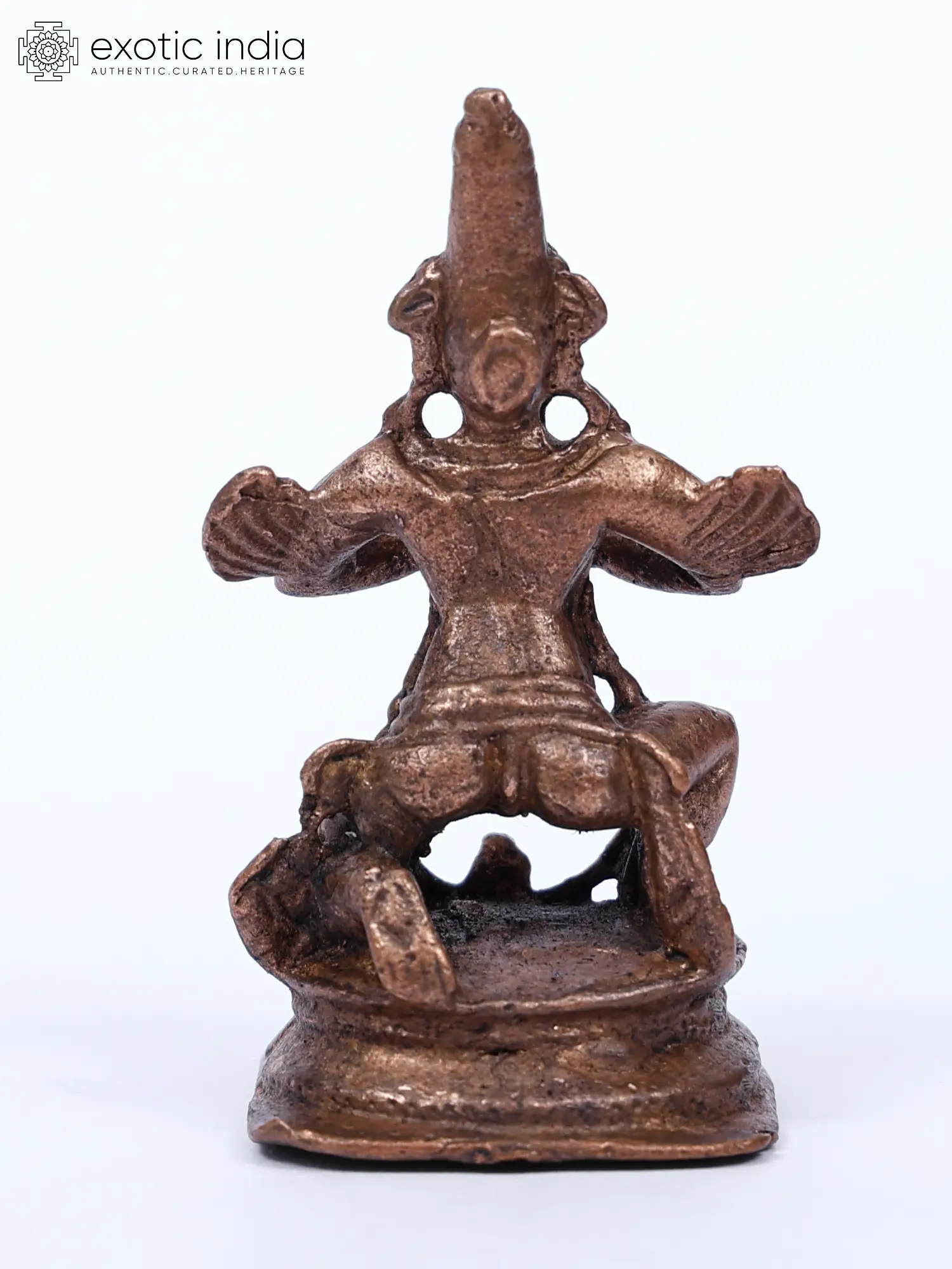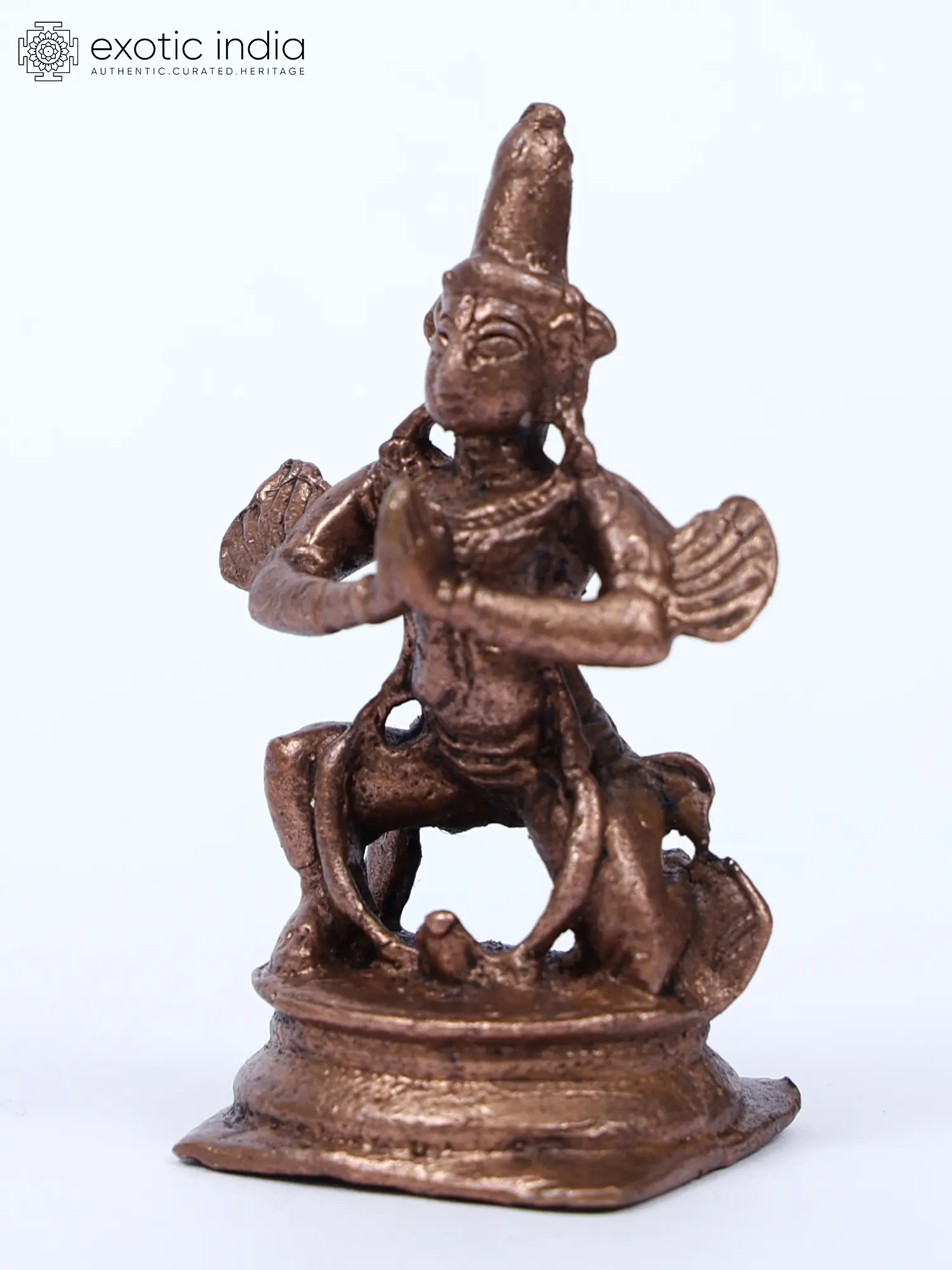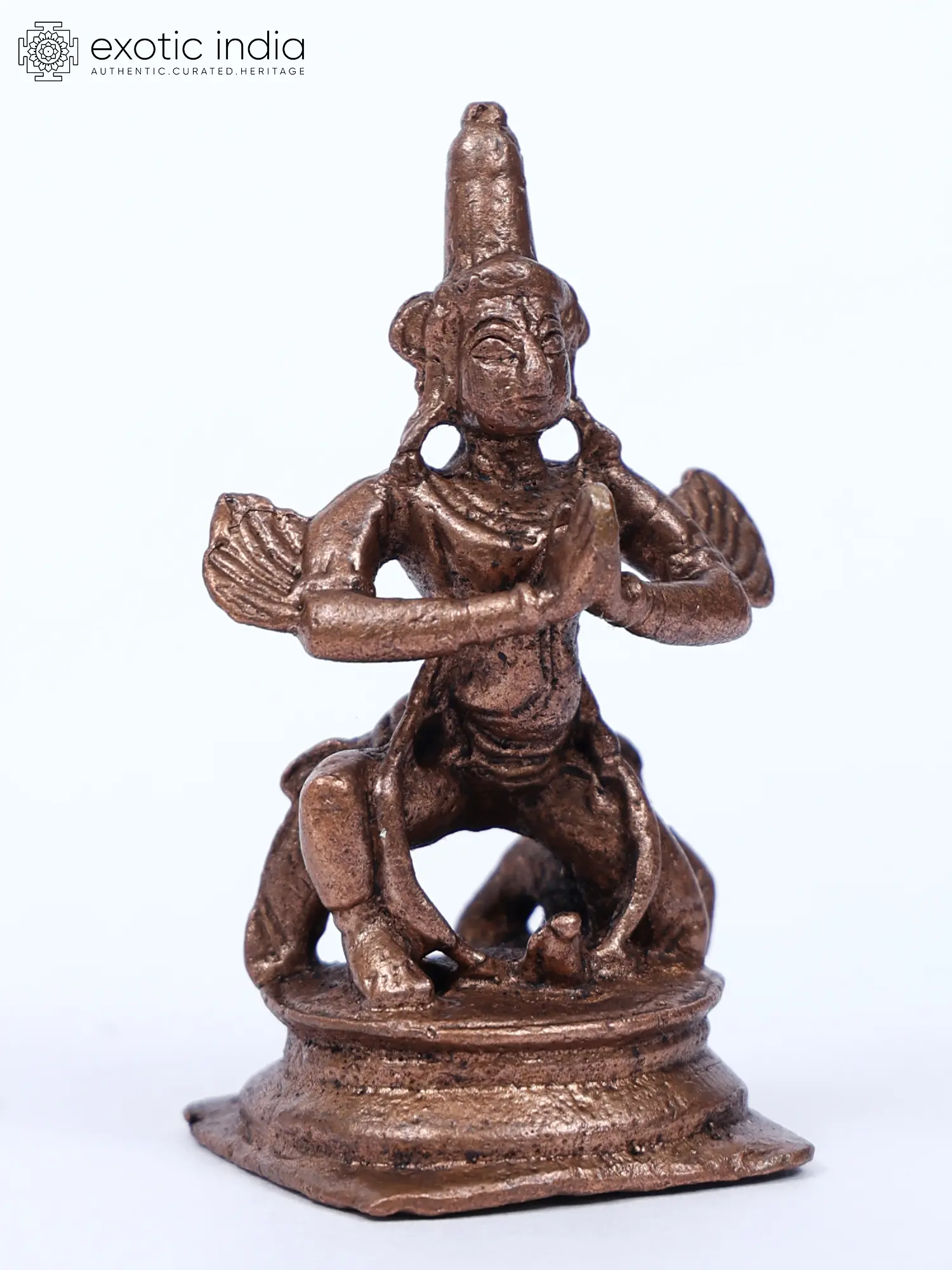 Made from lustrous copper, this breathtaking statue captures Garuda, the mount of Lord Vishnu, in a mesmerizing pose, one knee bent in humble “Namaskar Mudra”, radiating reverence and devotion. Serpents entwine his sturdy elbows, symbolizing his triumph over darkness and chaos.