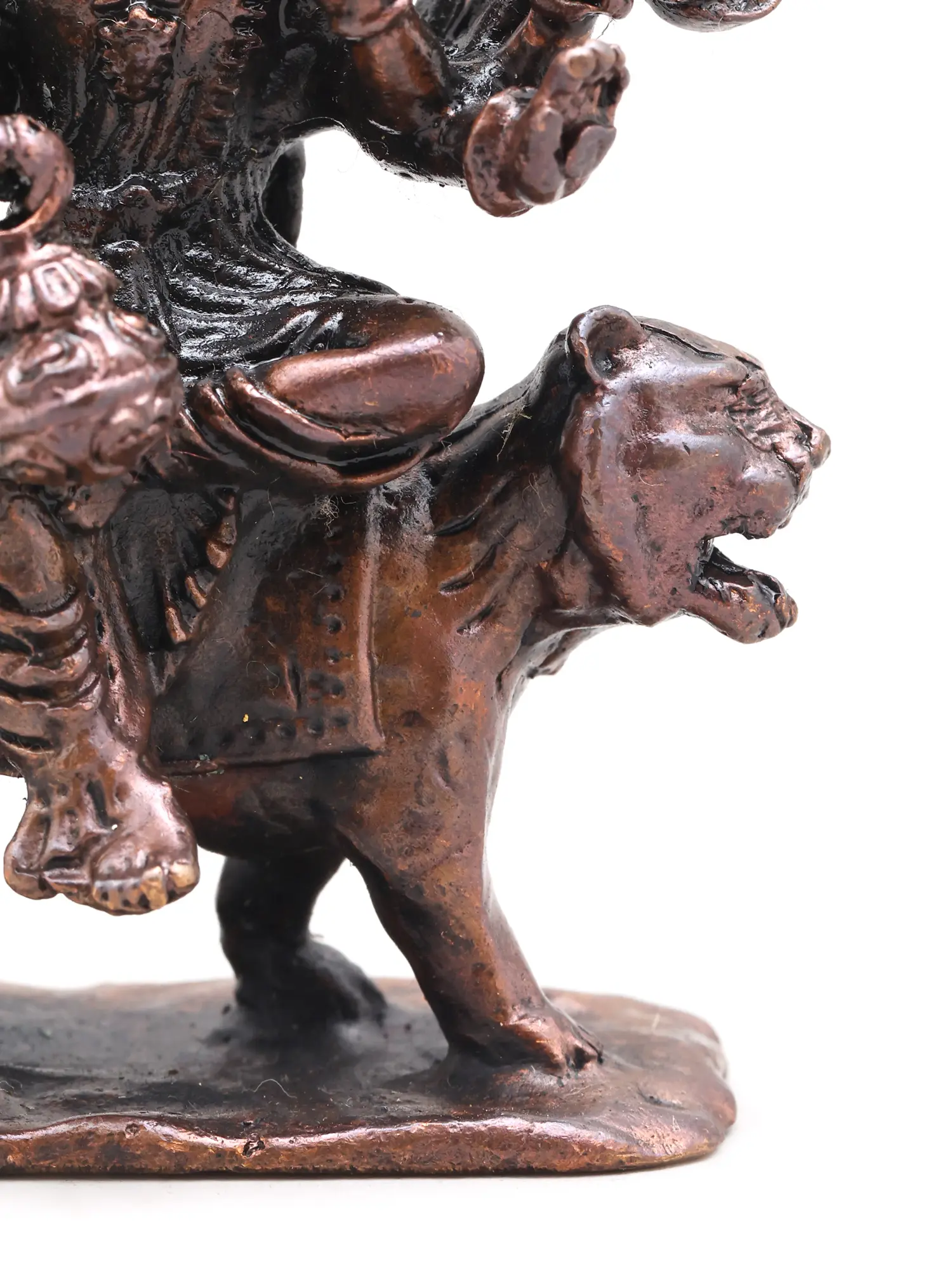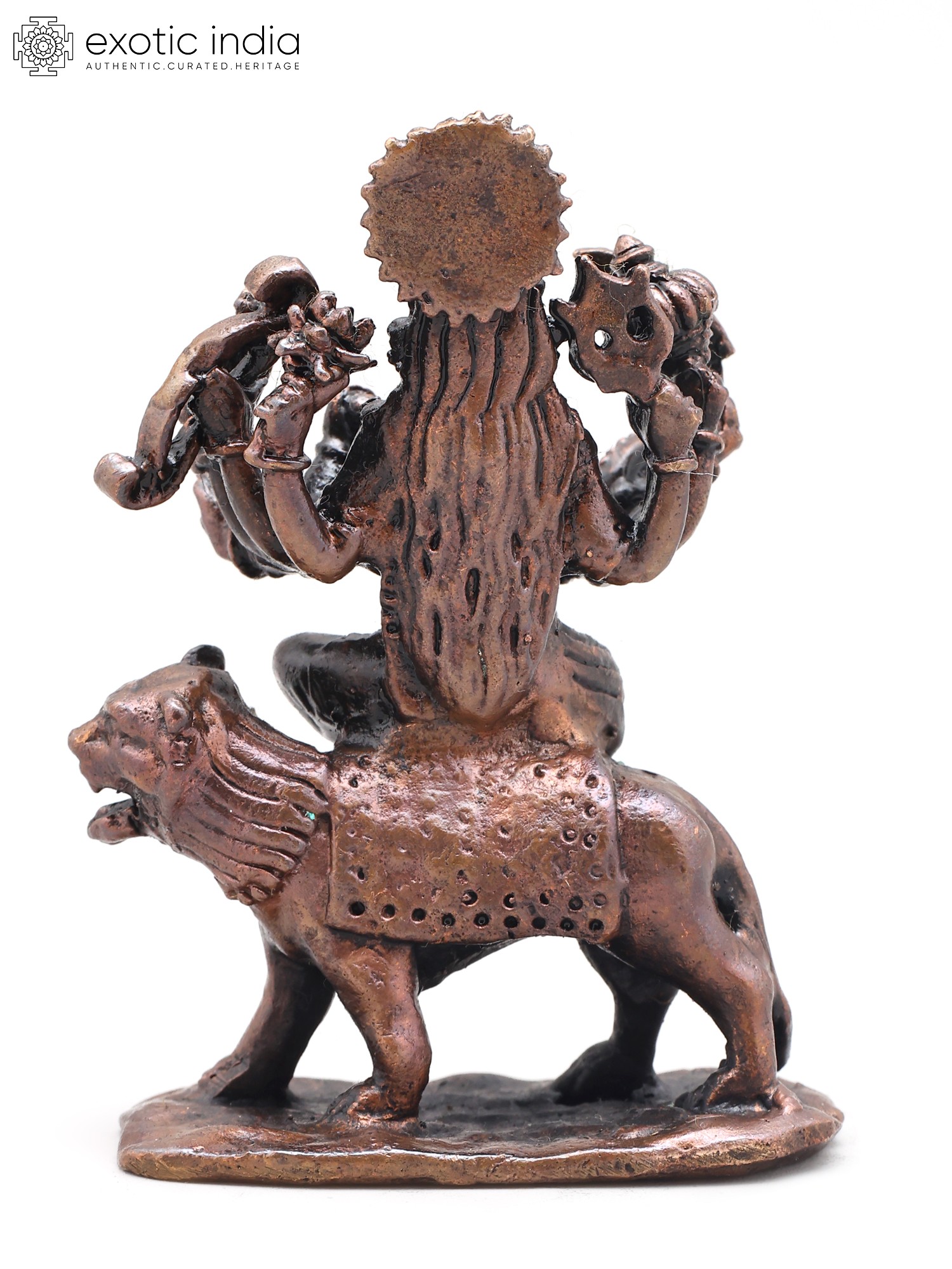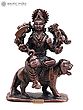 2" Small Goddess Durga Seated on Roaring Lion | Copper Statue | Made in India