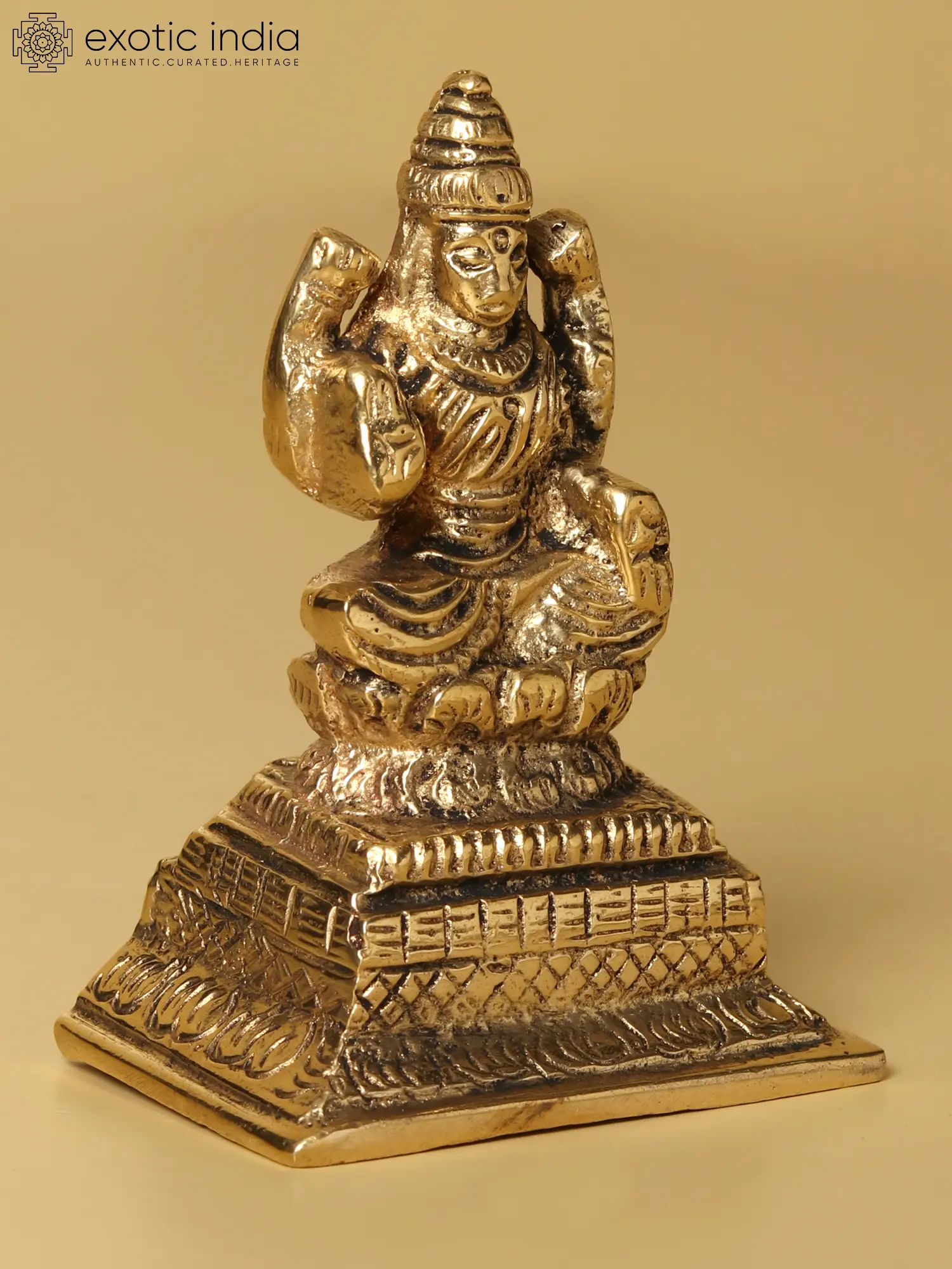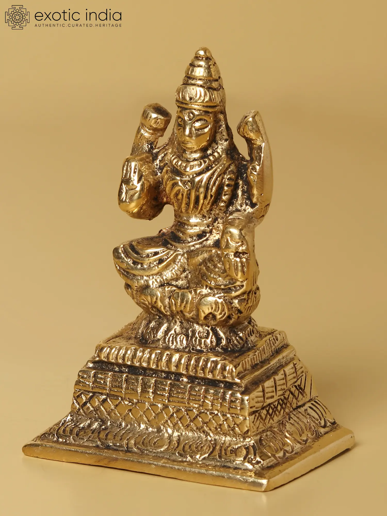 In this brass statue, Goddess Lakshmi, also known as “Padmasundari”, the embodiment of beauty and abundance, graces her divine pedestal with mesmerising elegance. Seated on Pedestal, She symbolises the “Rajas Guna”, the vibrant essence of desire and ambition. Her right hand, poised in the “Abhaya Mudra”, offers a reassuring embrace of protection, while her left, in the “Varada Mudra”, extends boundless blessings. Adorned in regal attire that shimmers with opulence, She emanates opulent grace. Her upper hands cradle delicate lotus blossoms, symbols of purity and prosperity. With her ethereal presence, She beckons us into a world of desire, aspiration, and the boundless riches of the heart.