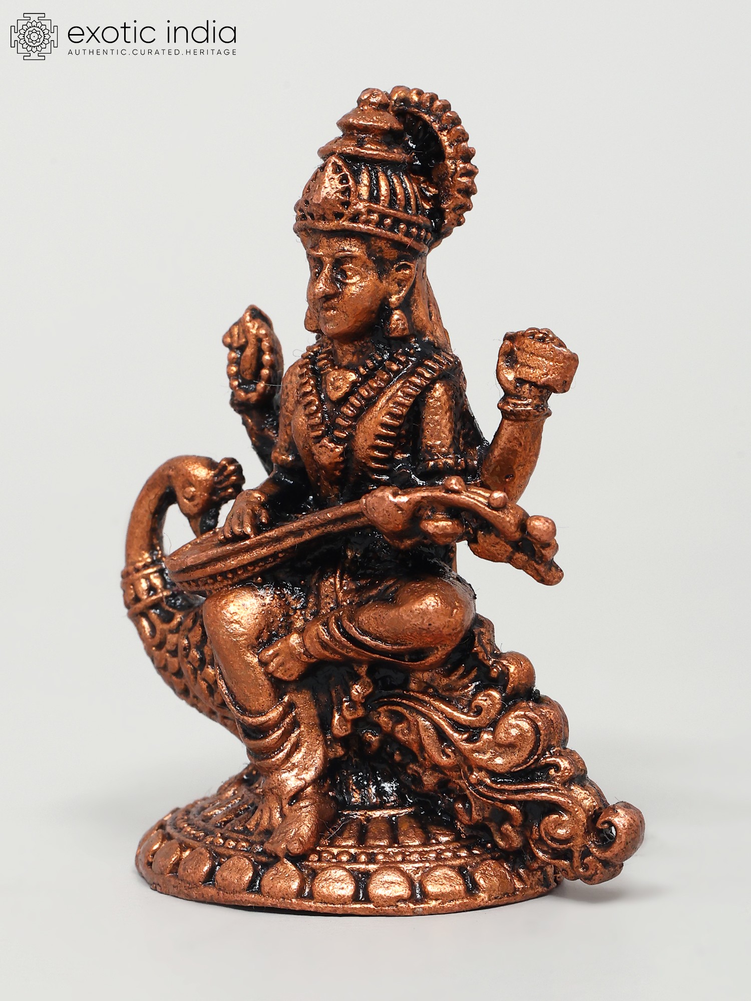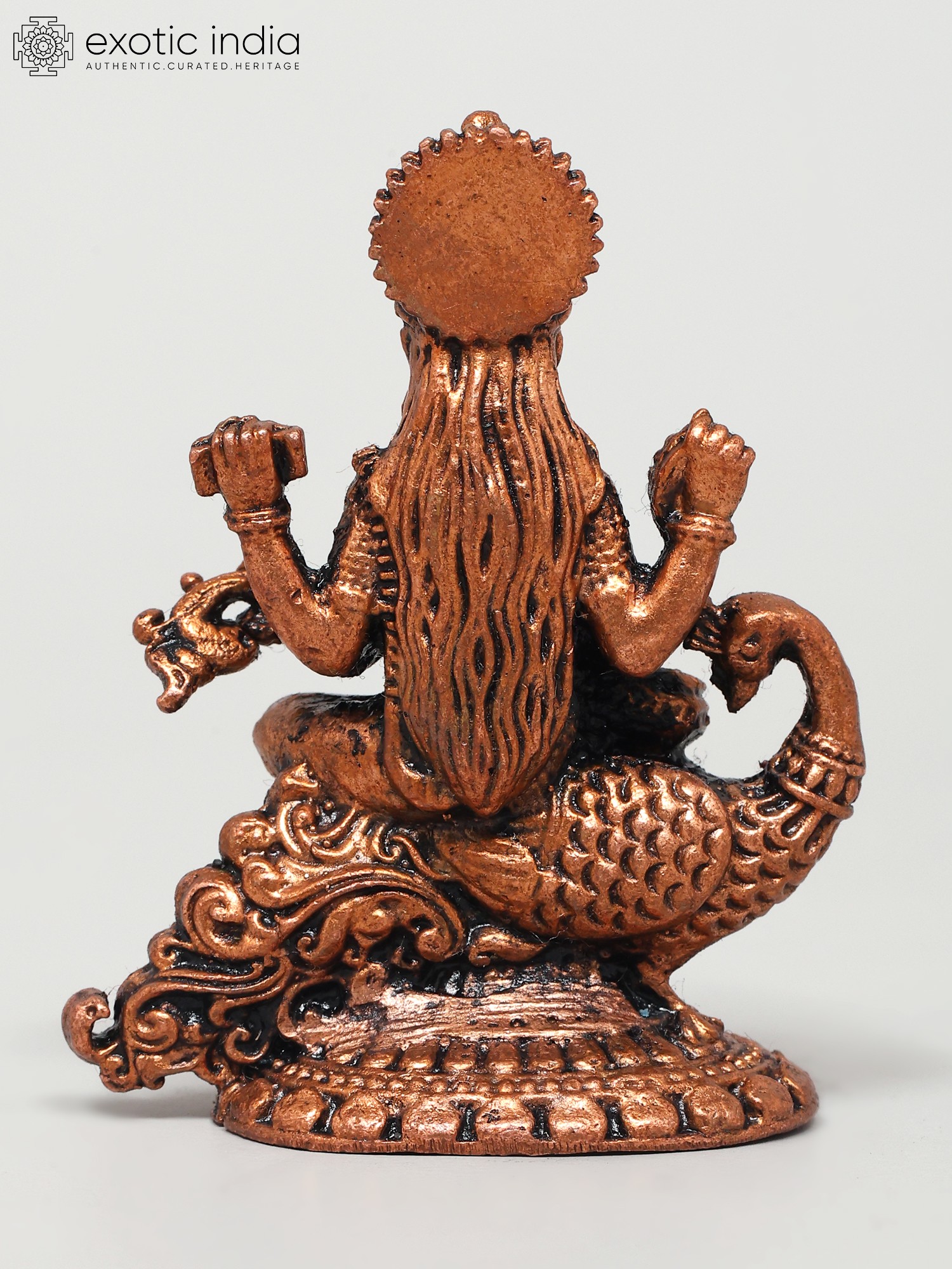 4" Small Lord Narasimha Seated on Sheshnag with Devi Lakshmi | Copper Statue