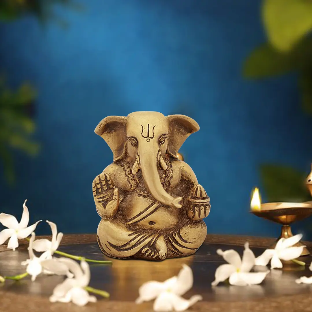His form, exquisitely sculpted and adorned, captures the essence of cosmic harmony. The elephant head symbolises the vastness of knowledge and the strength to overcome challenges, while his gentle hands, each holding symbolic attributes, extend gestures of protection, abundance, and assurance. This auspicious Ganesha is more than a mere representation; he is a living embodiment of the intricate tapestry that weaves together fate and free will. As the patron of auspicious beginnings, he whispers promises of uncharted journeys, inviting us to seize the opportunities that unfold before us.
