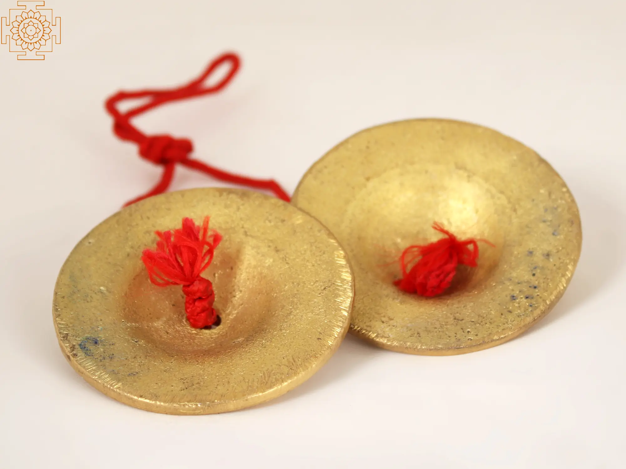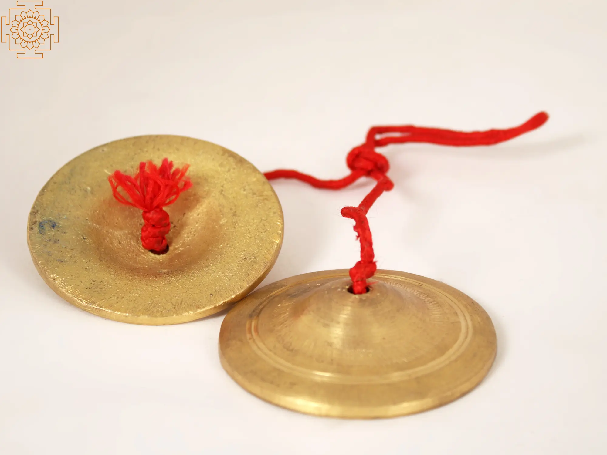 This Bronze Khartal or Tal is a musical instrument used in Native music or Bhajan and Kirtans. It is made of two bronze discs almost flat and having a small elevation at the back. The elevation is also the point where the sacred rope is inserted to keep the discs connected. The Khartal is used for providing a taal or beat to the music and helping the musician or vocalist follow the notes. It is played by hitting the broader side of discs straight on each other making a constant sound in required intervals.