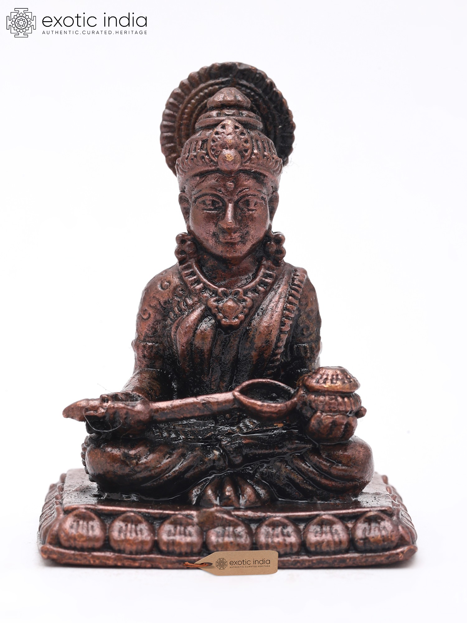 The holy goddess of nutrition and abundance is embodied in a copper statue known as the Small Hindu Goddess Annapurna Mata. With a ladle and a container of food, Annapurna Mata represents the value of food as a source of nutrition and life. Her maternal and caring energy is captured in this sculpture, encouraging us to appreciate and spread the gift of food to others. The presence of Annapurna Mata serves as a reminder of the importance of providing for the needs of others and feeding the poor. Inspiring us to be kind and giving of ourselves, she reminds us that when we serve others, we are also serving the divine.