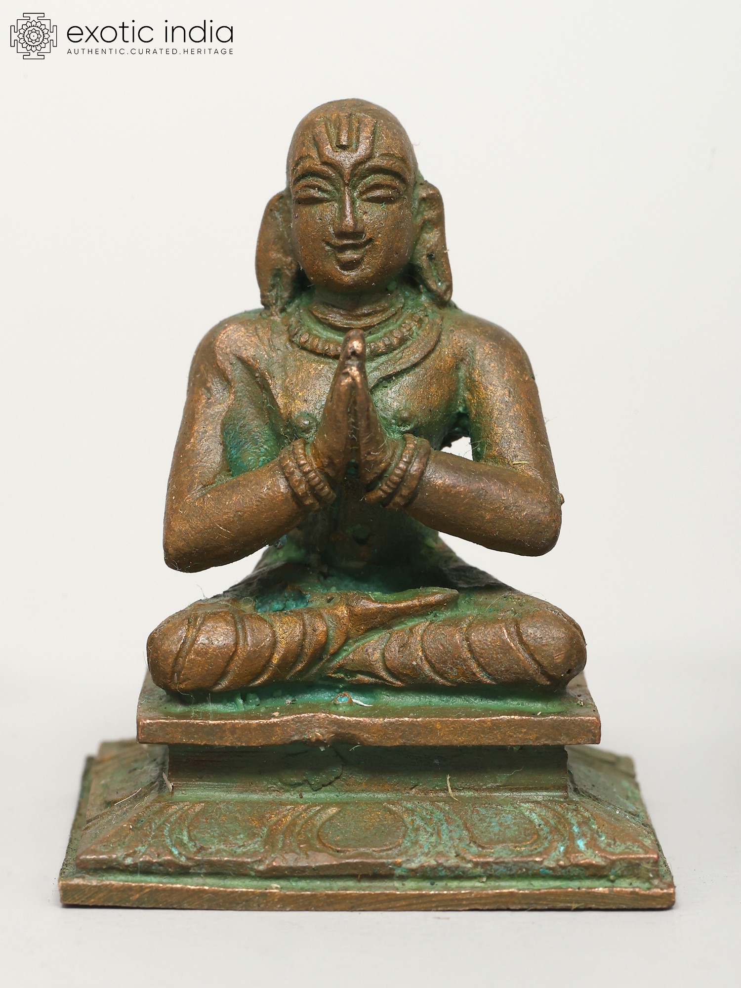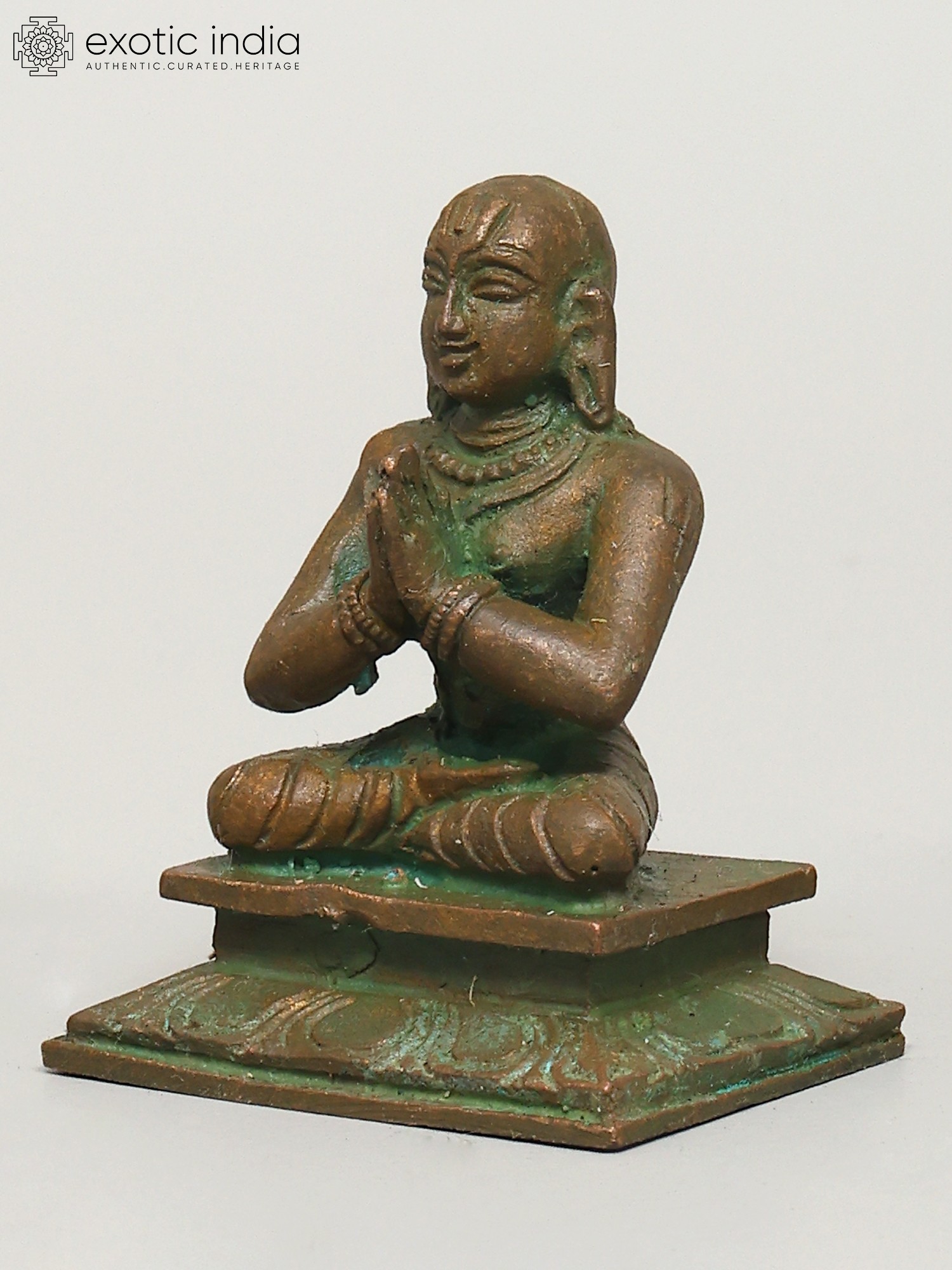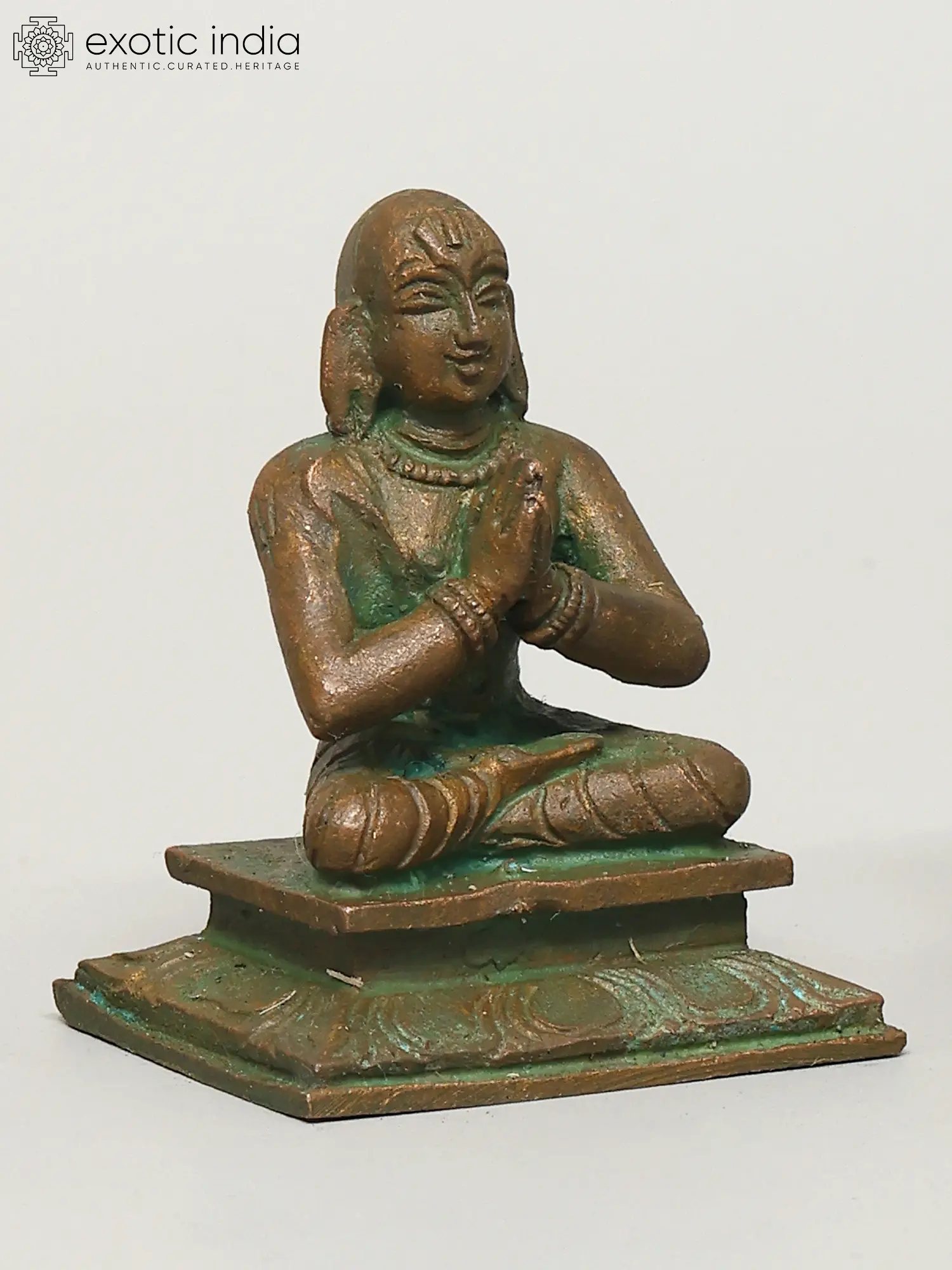 2" Small Hindu Saint Nammalvar | Madhuchista Vidhana (Lost-Wax) | Panchaloha Bronze from Swamimalai
