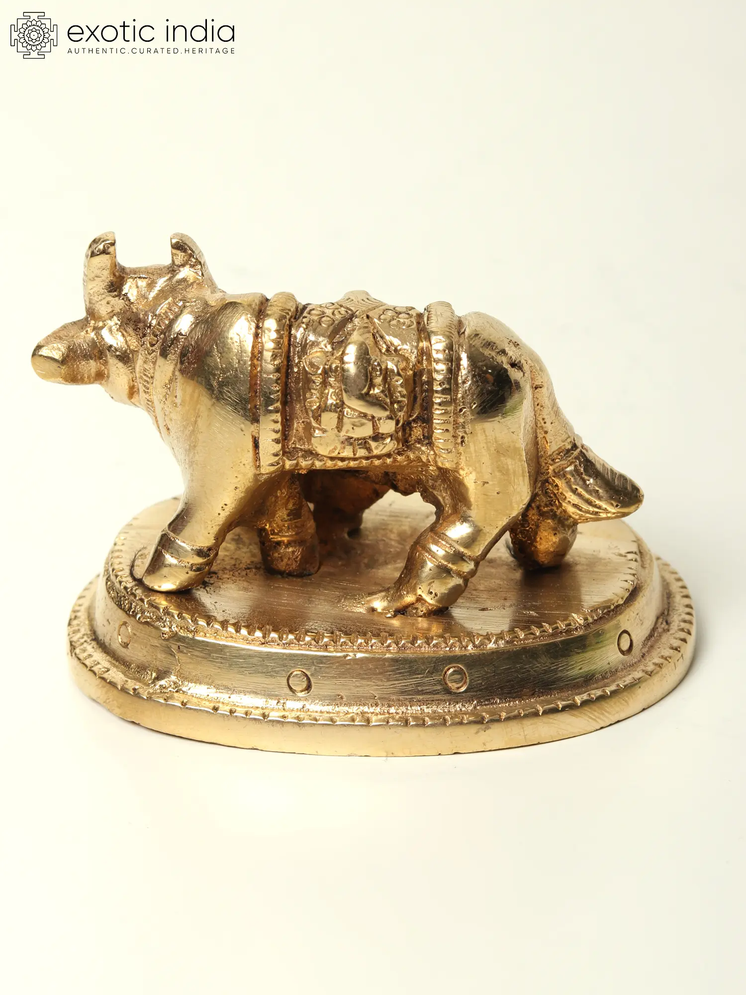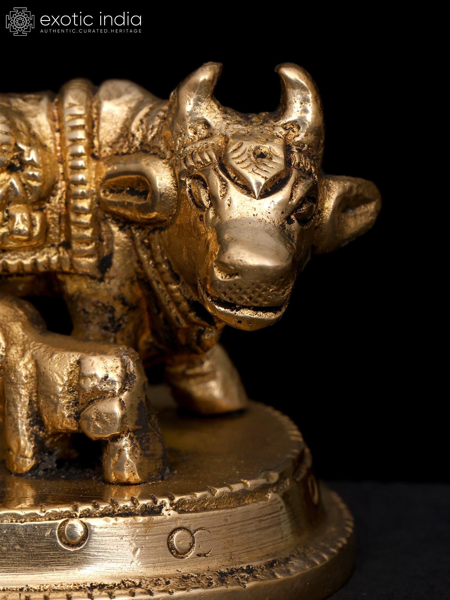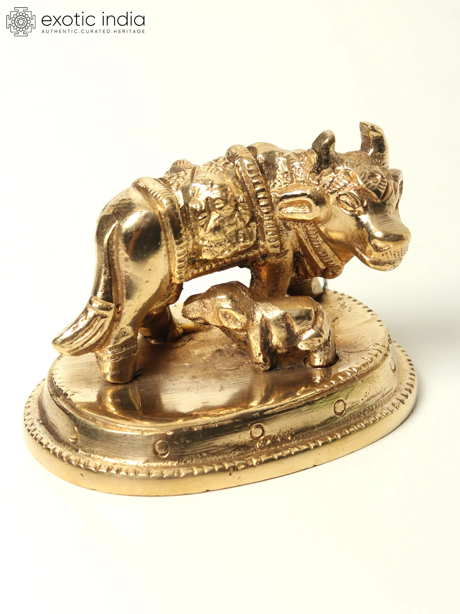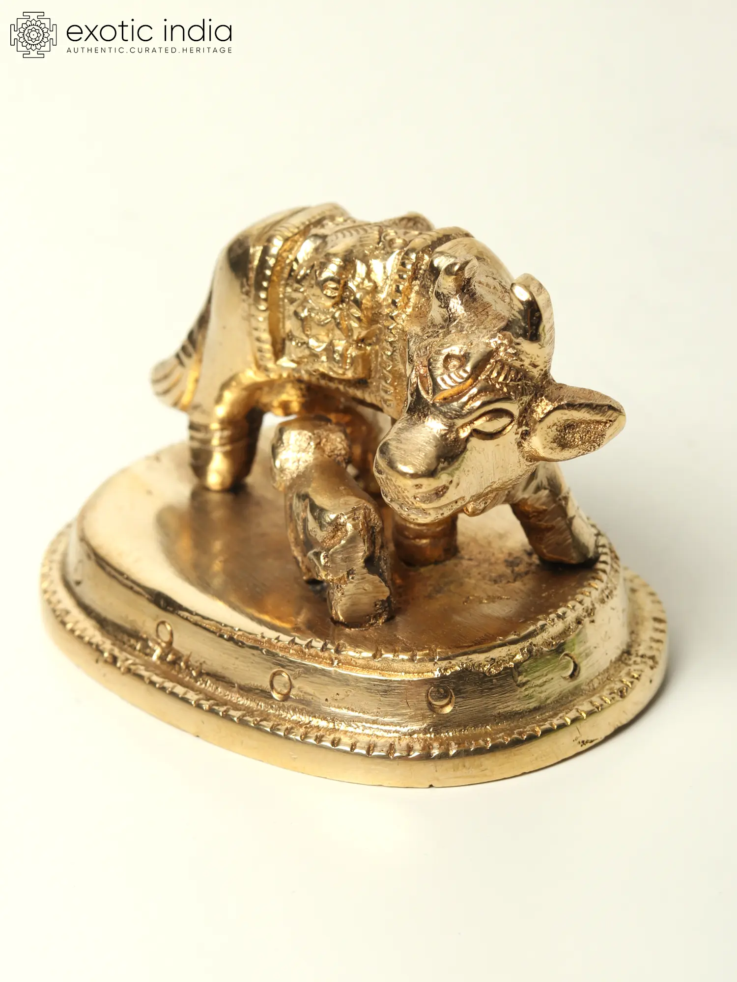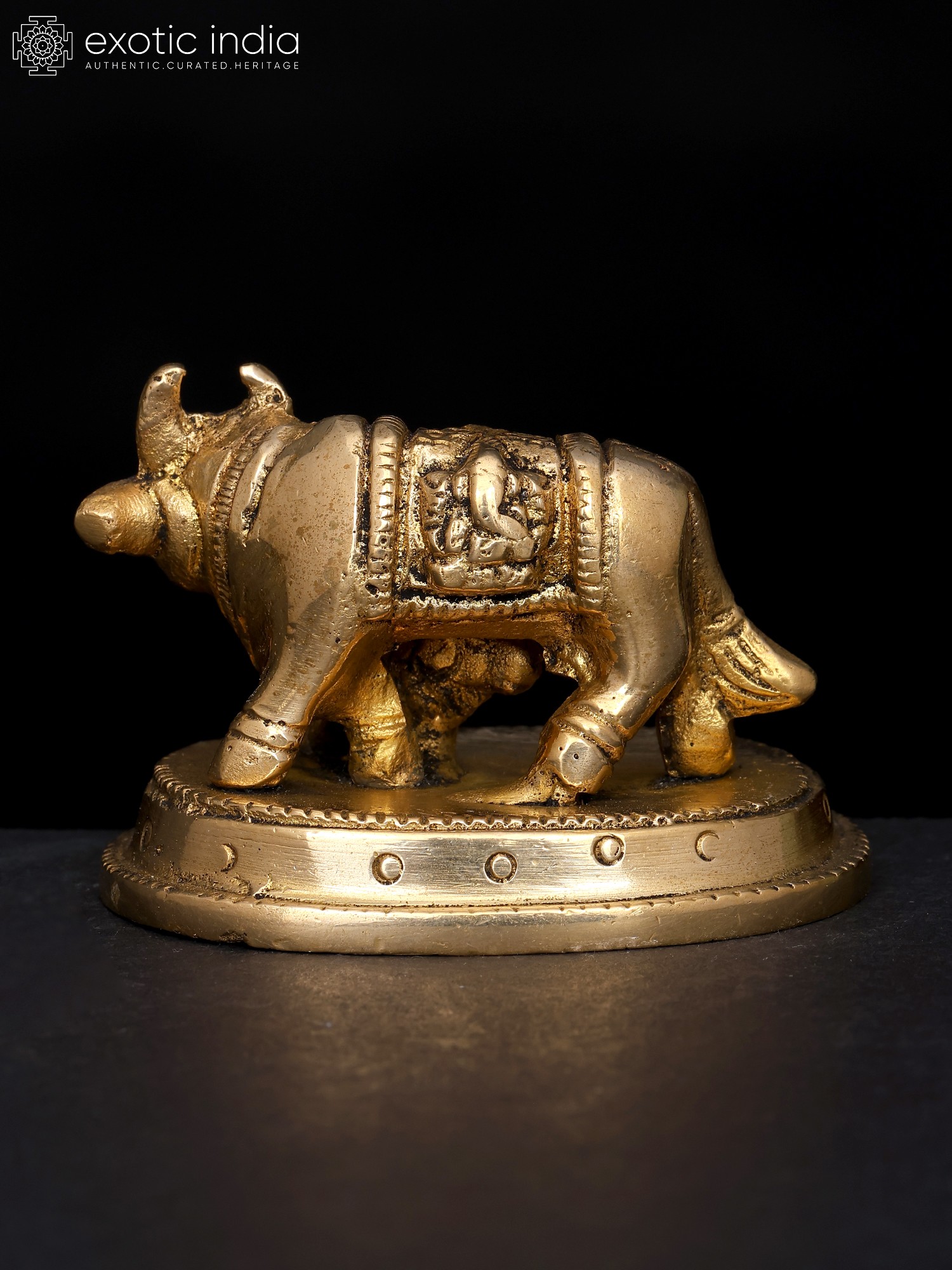 In the realm of sacred art, Kamadhenu, the mother of all cows, also known as Surbhi, is the divine symbol of abundance and desire fulfilment. She stands as a radiant embodiment of ancient wisdom. She cradles her calf, bestowing upon it the gift of life and nourishment. Her benevolent eyes, gleaming with tranquillity, beckon us into a world where wishes are whispered into the gentle breeze of possibility. This brass masterpiece is a gateway to the profound, an oracle of prosperity, where the nurturing mother and her offspring symbolise the boundless blessings and unending sustenance that flows from the eternal wellspring of our dreams.