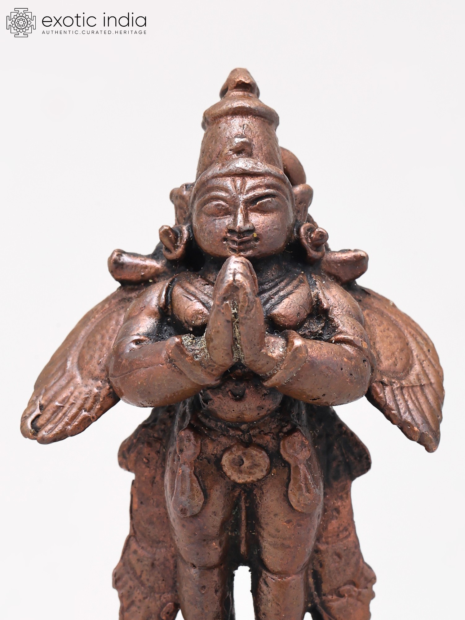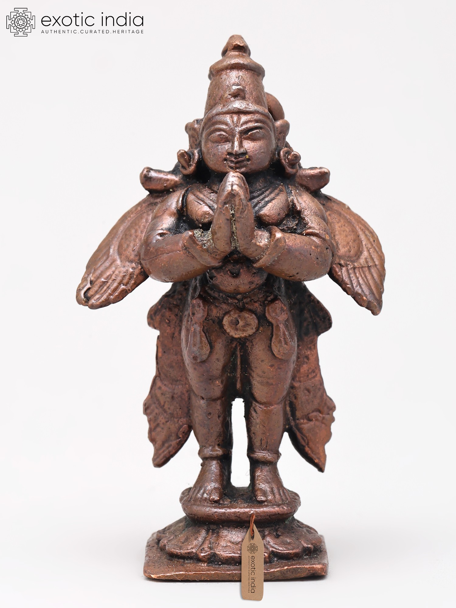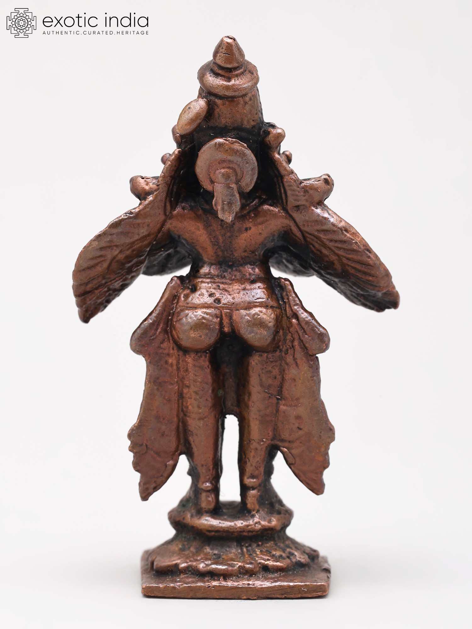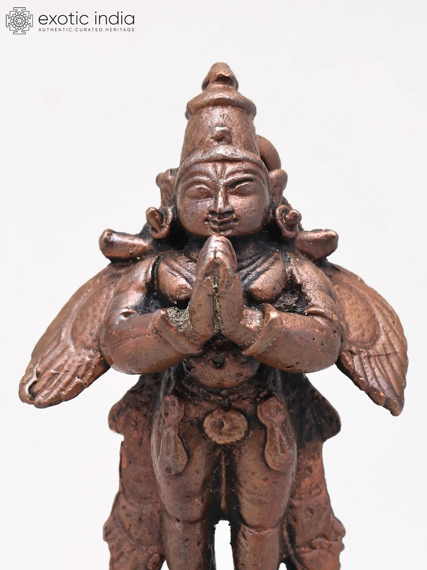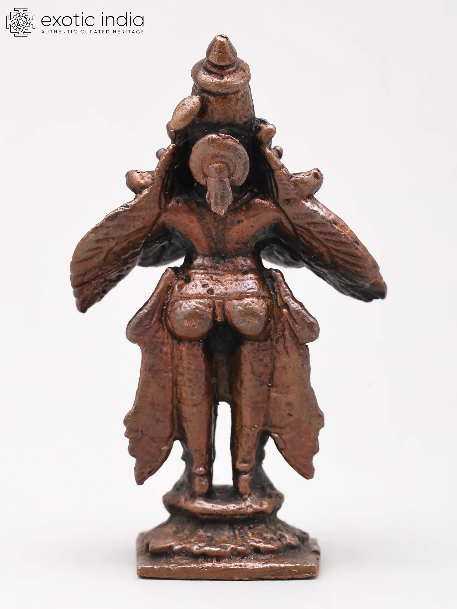 3" Small Garuda Copper Statue in Namaskara Mudra | Handmade