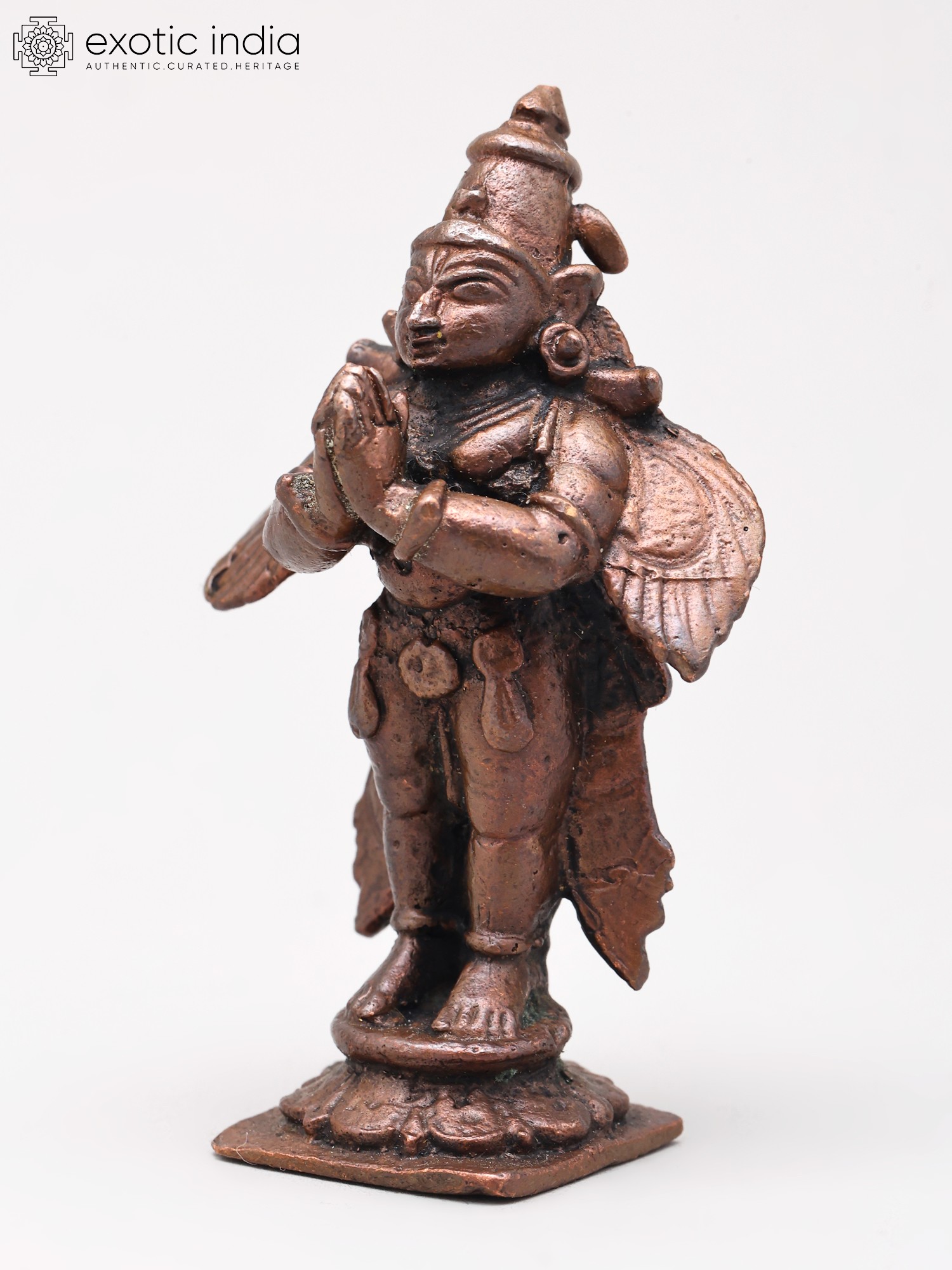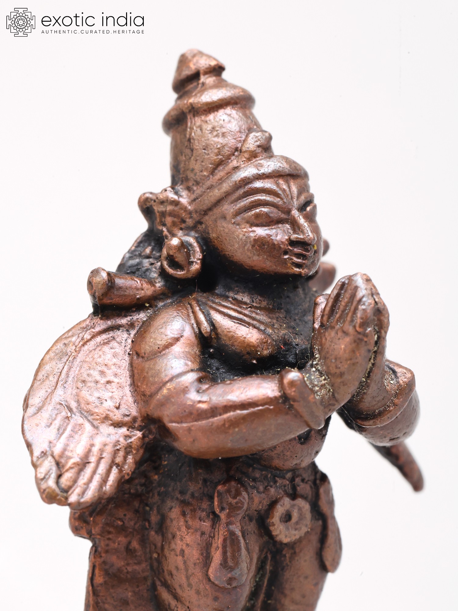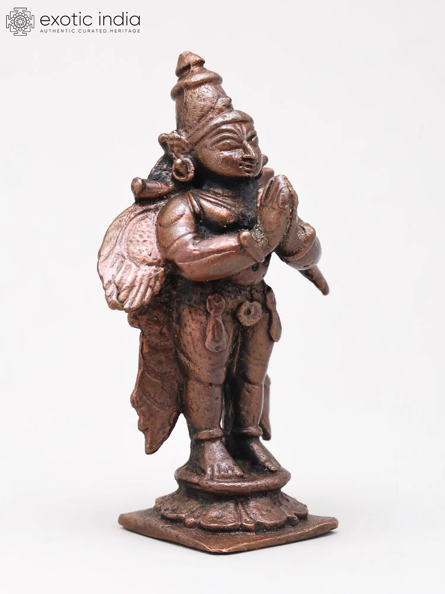2" Small Lord Garuda Standing in Namaskar Gesture | Handmade | Copper Statue