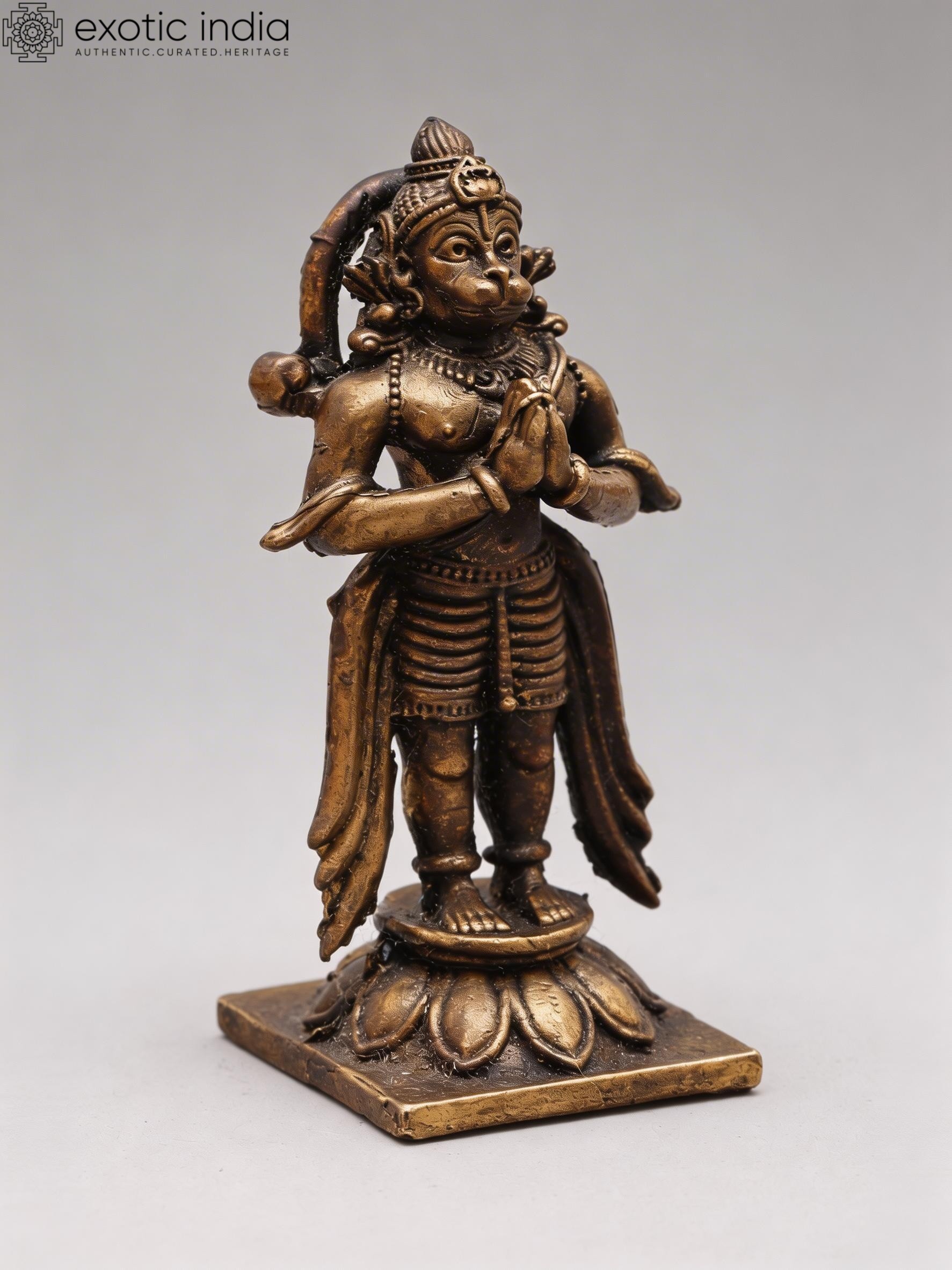 2" Small Lord Hanuman Standing on Lotus with Namaskar Mudra | Copper Statue | Made in India