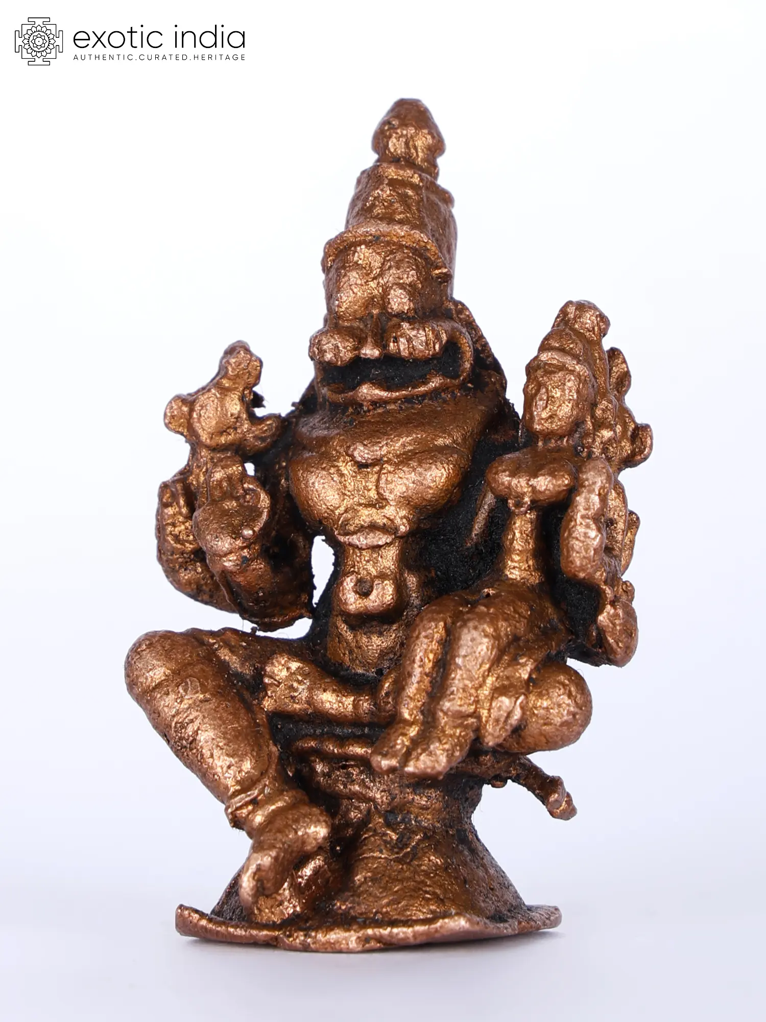 2" Small Lord Narasimha Copper Statue Seated with Devi Lakshmi