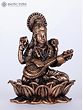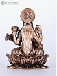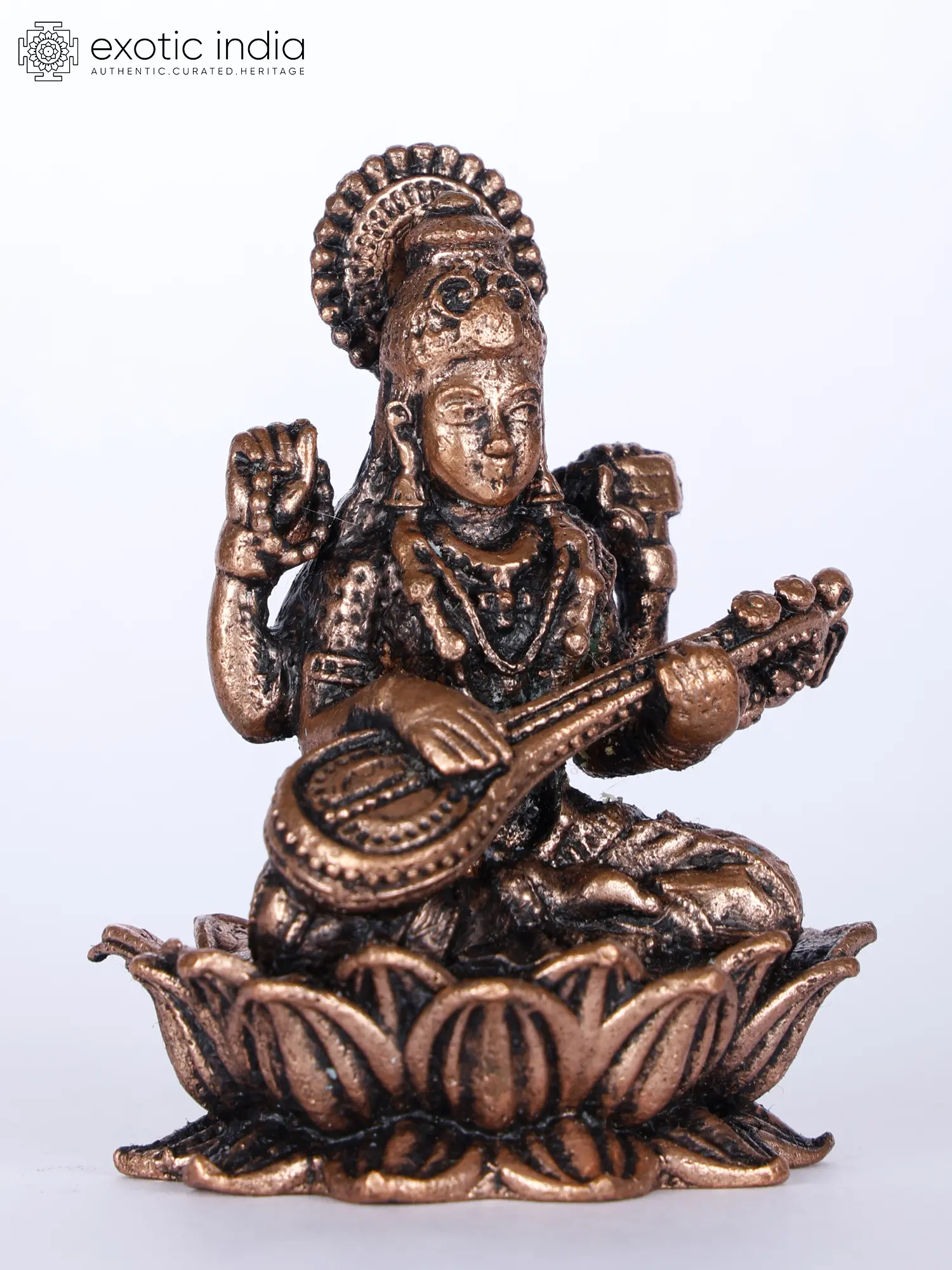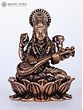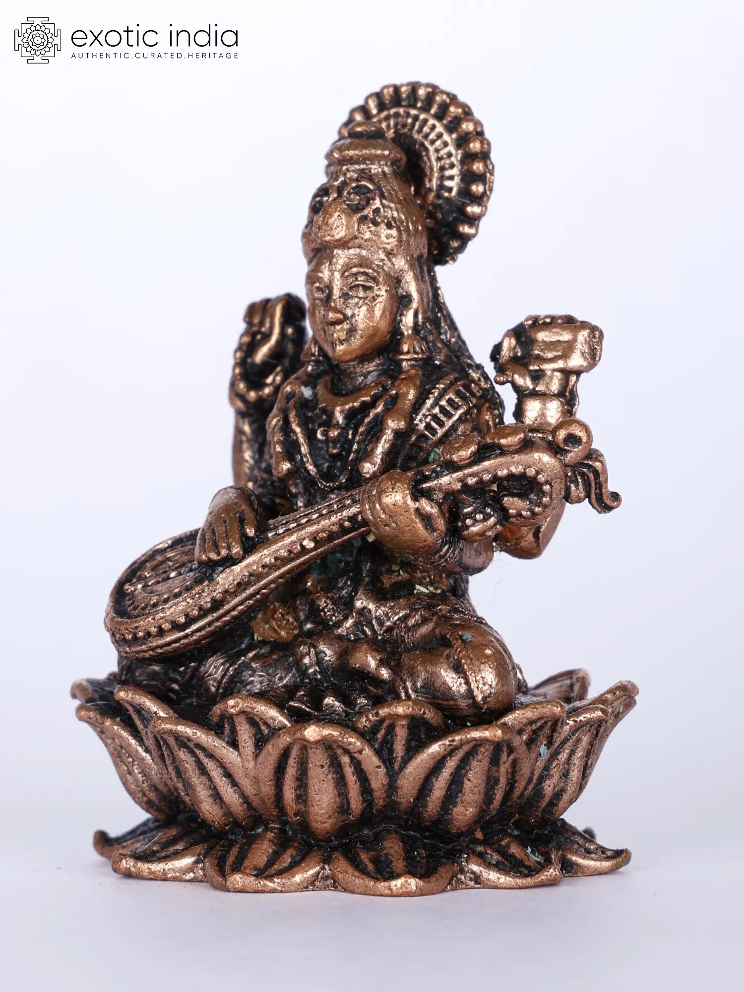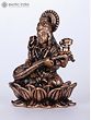 The divine presence of Maa Saraswati, the goddess of knowledge, music, arts, wisdom, and learning. This copper statue portrays Maa Saraswati seated gracefully on a blooming lotus flower, symbolizing purity, enlightenment, and divine beauty.