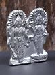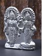 Invoking the divine presence of Lord Vishnu and Goddess Lakshmi, this exquisite sculpture is crafted from pure mercury (Paara), a metal revered for its purifying and auspicious qualities. The Lord of Preservation, Vishnu, stands majestically, embodying cosmic order and the nurturing force that sustains the universe. Beside him, Goddess Lakshmi, the radiant embodiment of wealth, fortune, and beauty, radiates her benevolent grace. Together, they represent the harmonious union of divine power and material prosperity, a powerful symbol for any home or sacred space. The significance of Lord Vishnu is deeply rooted in Hindu mythology. He is the preserver and protector of the cosmos, appearing in various avatars to restore dharma and vanquish evil. From his form as the cosmic serpent Shesha, upon which he rests, to his heroic deeds as Rama and Krishna, Vishnu's presence is a constant assurance of stability and righteousness. His union with Lakshmi signifies that true prosperity is not merely material wealth but also encompasses spiritual abundance and well-being.