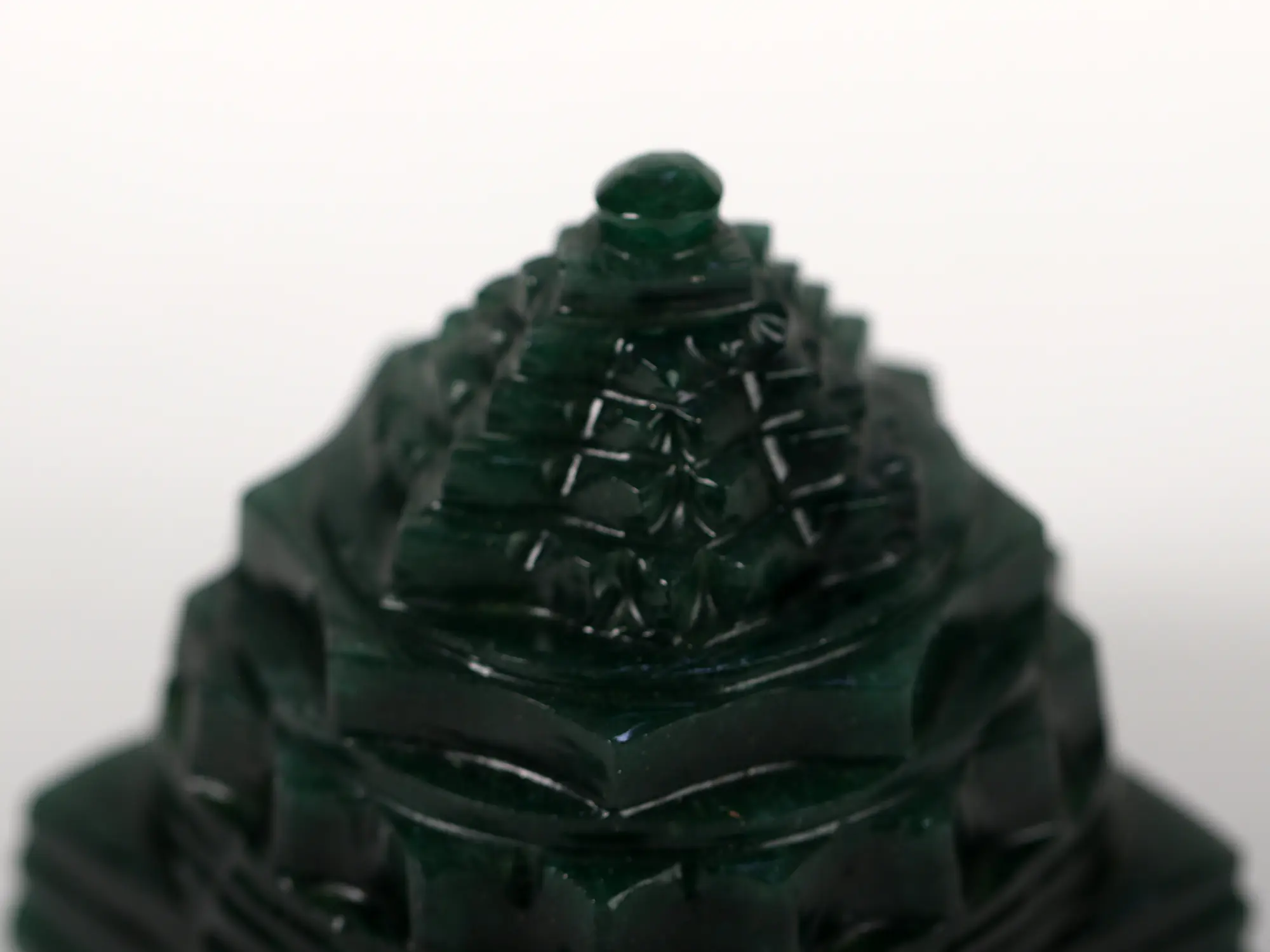In Hinduism, Shree Yantra, also known as the “Shri Chakra”, is a sacred geometric diagram consisting of interlocking triangles. This mystical symbol represents the divine feminine energy, specifically the goddess “Tripura Sundari”, and embodies the principles of Creation, Preservation, and Destruction. It is a powerful tool for meditation and is believed to bring abundance, prosperity, and spiritual growth to those who meditate upon it. Crafted from genuine Green Jade Aventurine, it is believed to harness the energy of the heart Chakra, fostering a connection with nature and promoting inner peace.
