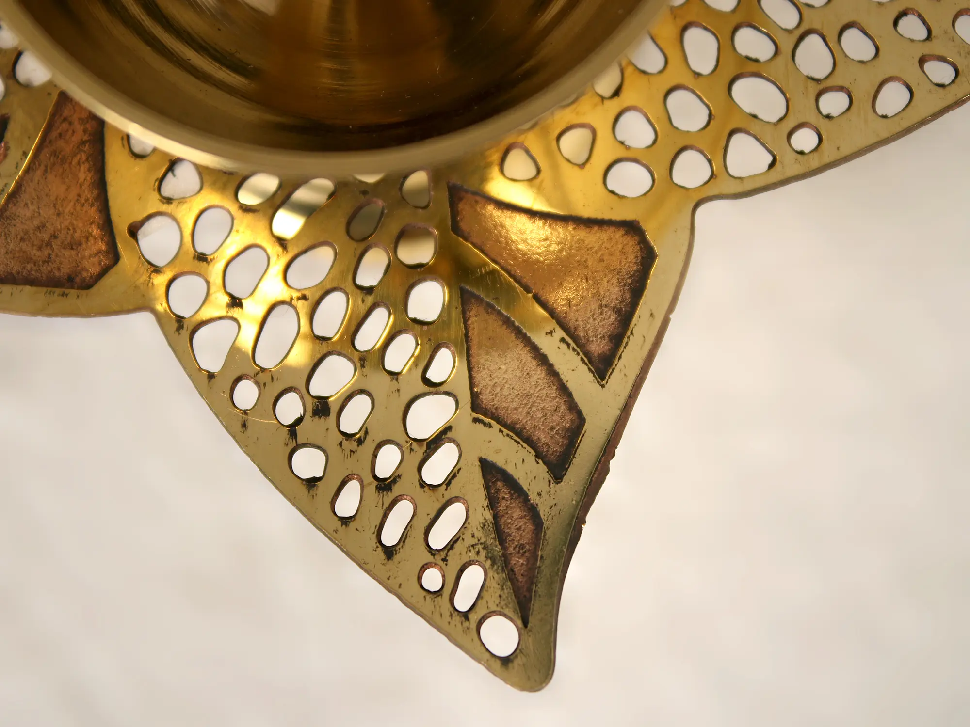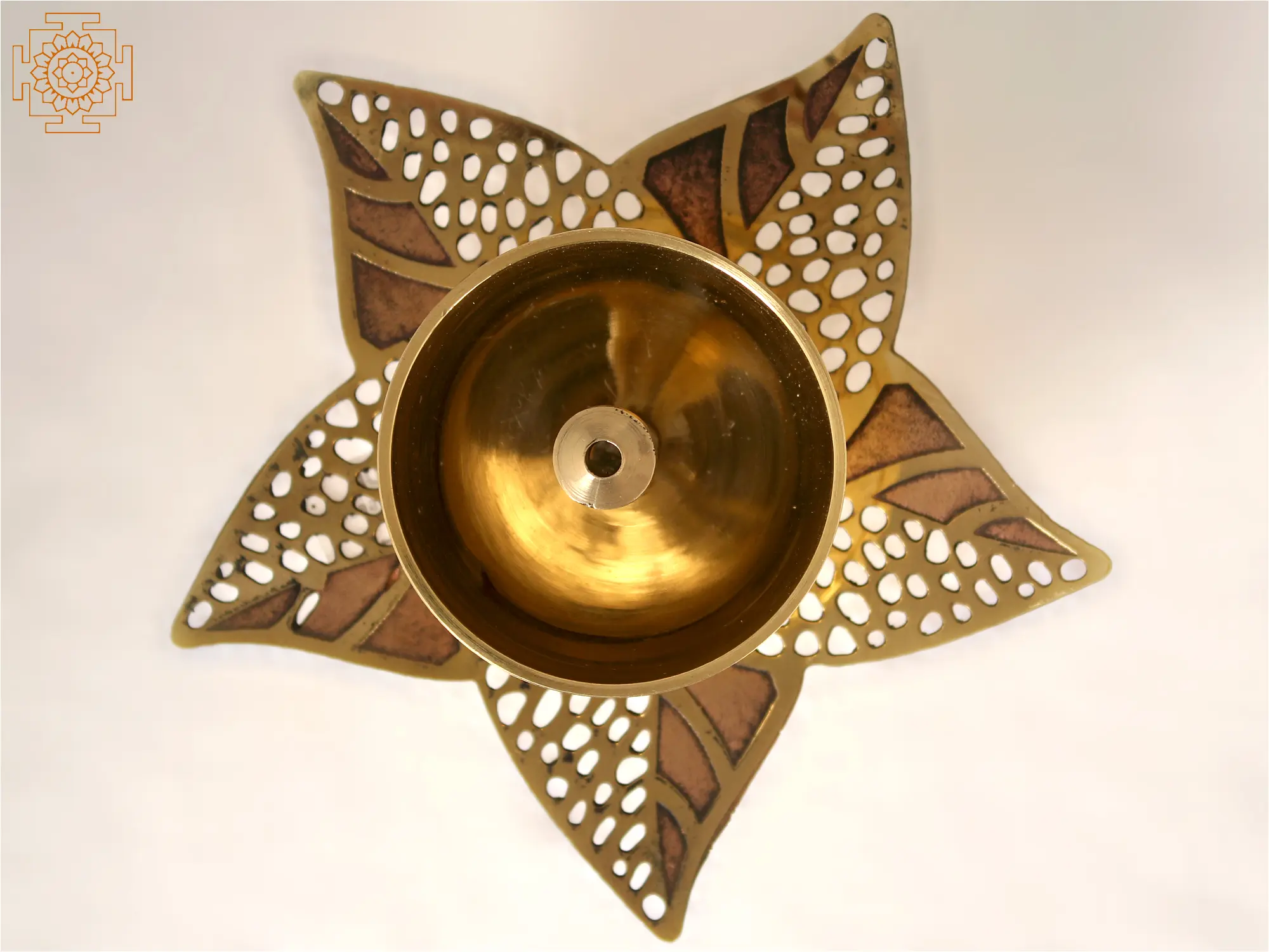 This exclusive brass lamp with a leaf pattern at the junction of the base and oil basin is the reflection of the highest level of craftsmanship. An Atma Diya with beautiful leaves looks like a flower amidst growing leaves. There is a smart use of the Jaal patterns to decorate the leaves and give the piece a contemporary look. The body of the lamp is polished and reflects the motifs on the body. They look ethereally beautiful when seen from above. It is a given fact that lighting this lamp will elevate the look of the room with its breathtaking look.