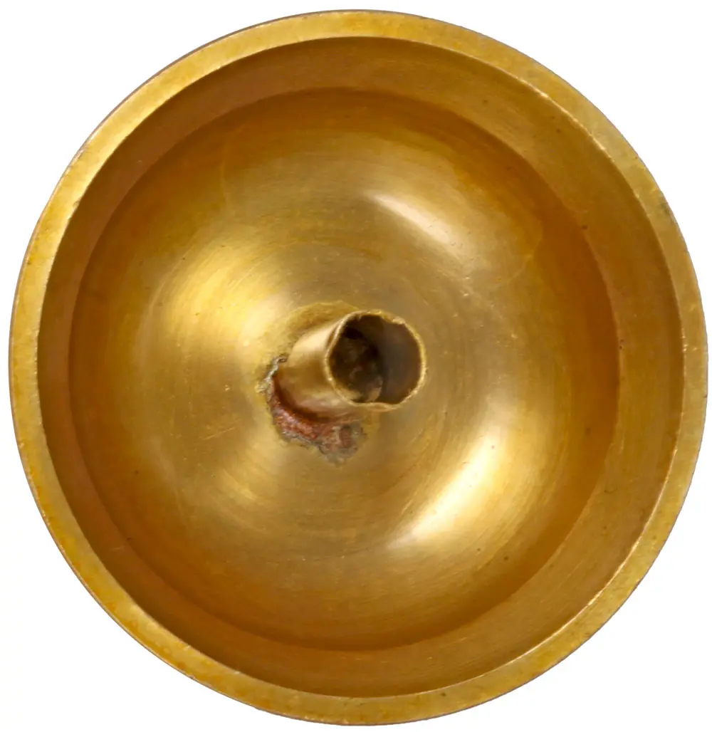 This brass lamp, a one-of-a-kind manifestation of the Atma Diya, has a dip in the center to retain the wick. The lamp's body features a distinctive wide-mouth construction that differs from the typical circular body. Three stands support the light body as well. This lamp, created with a minimalistic approach to ritual artifacts, is intended to bring the auspiciousness of the aarti ceremony and purify a room.