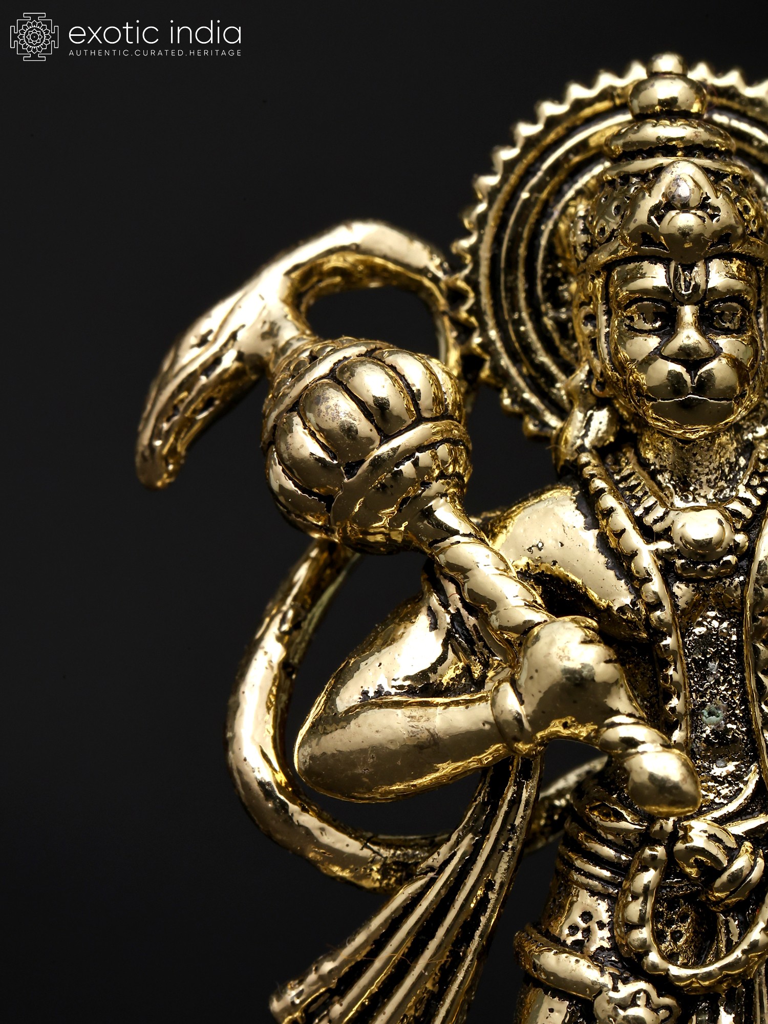 11" Shri Hanumanji Carrying Sanjeevani Mountain | Handmade Brass Statue