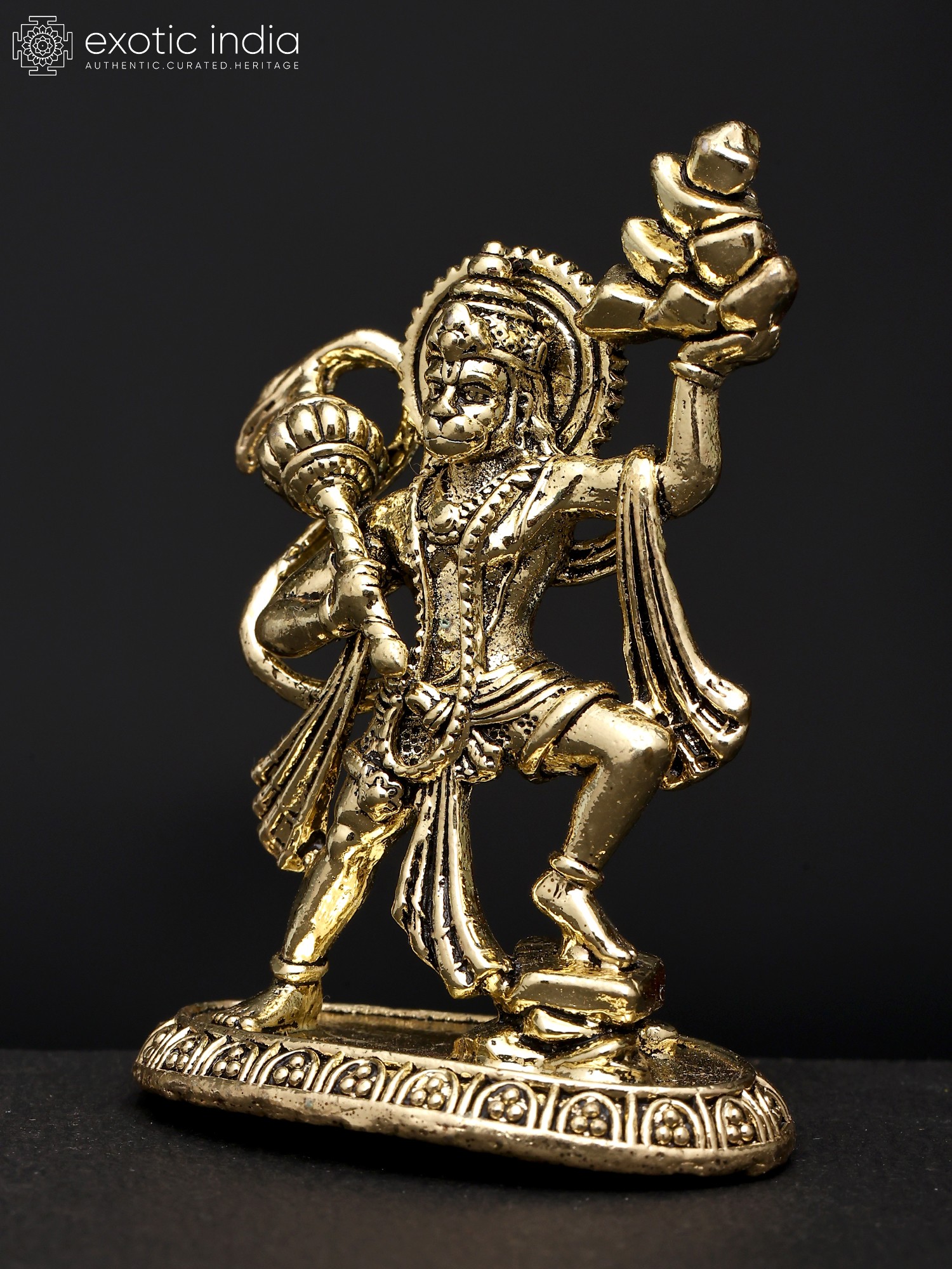 Lord Hanuman Carrying Sanjeevani | Small Brass Statue