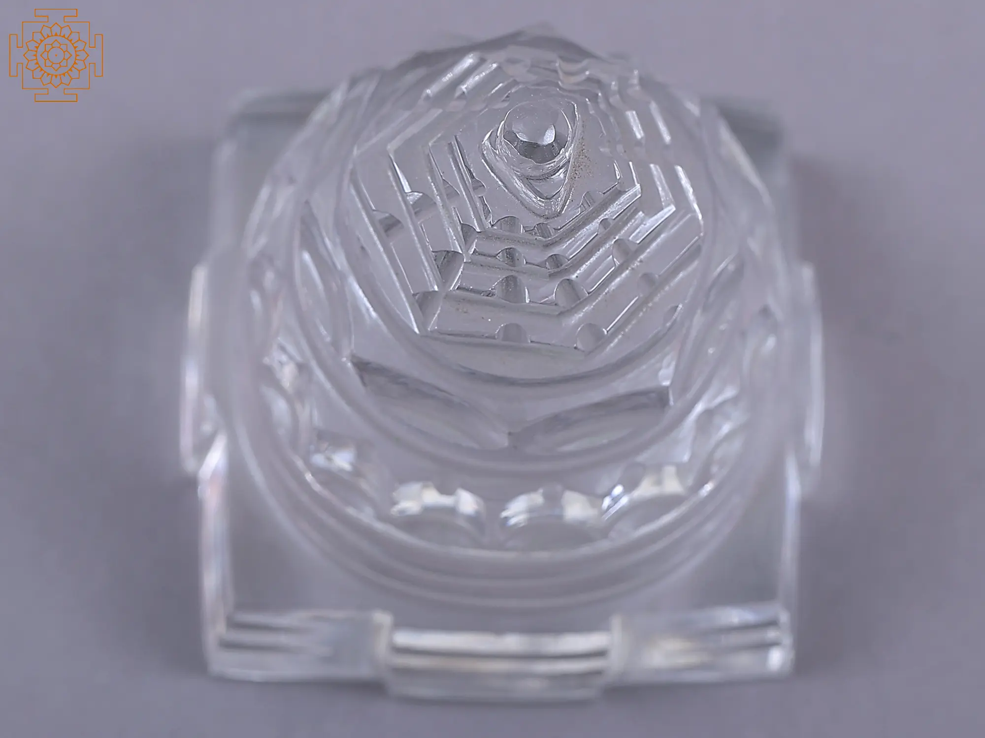 Crystal, known for its purity and its ability to amplify and store energy, is the ideal medium for this sacred geometry. It is believed to possess healing properties, promoting clarity of thought, emotional balance, and spiritual awareness. The transparency of the crystal allows the light to pass through and interact with the Yantra's form, further enhancing its energetic properties. Each facet of this handmade piece is crafted with precision, ensuring that the divine blueprint of the Shri Yantra is accurately represented, making it a potent addition to your sacred space or personal altar.