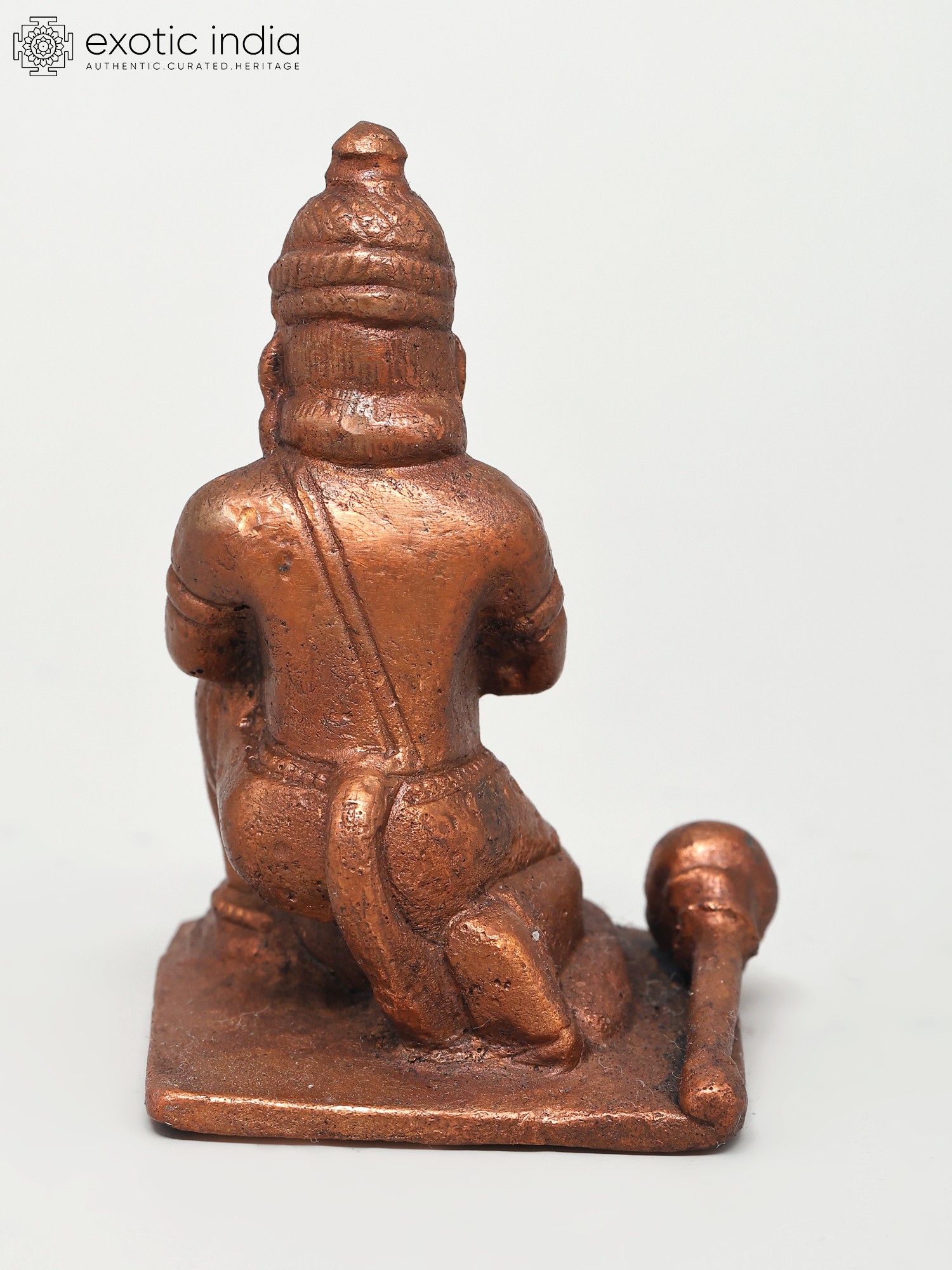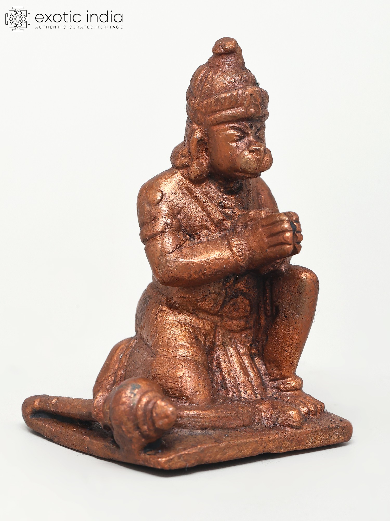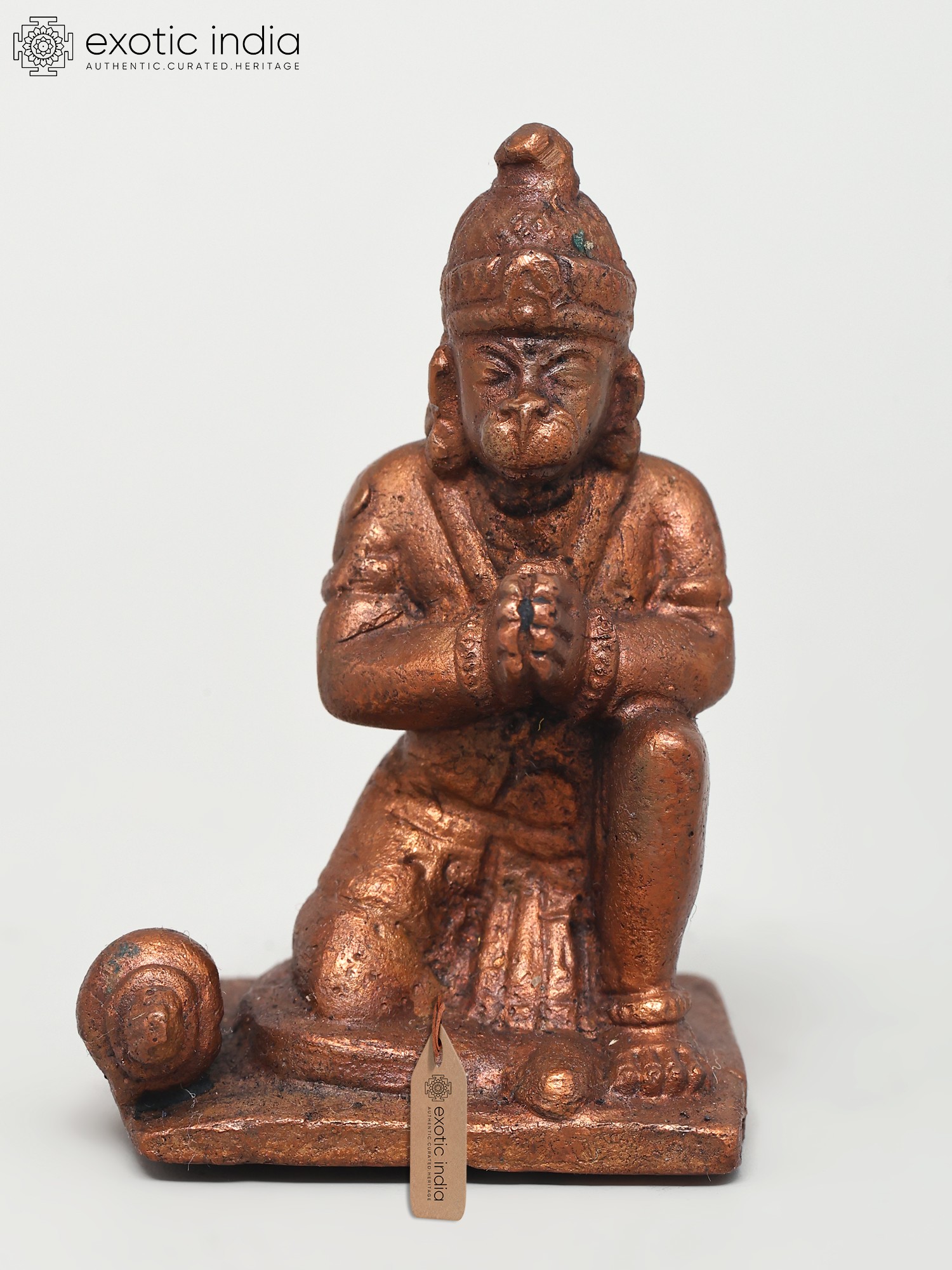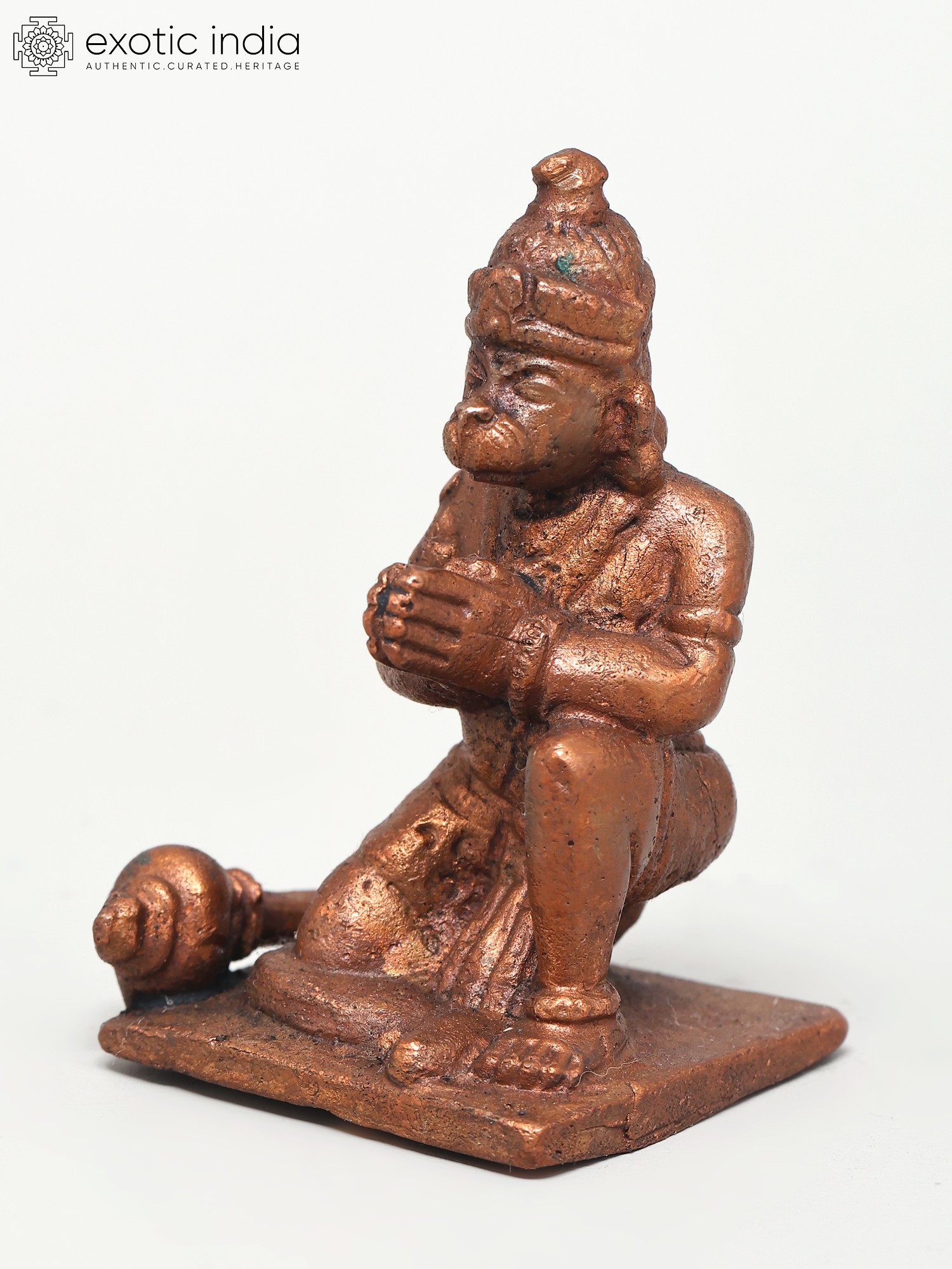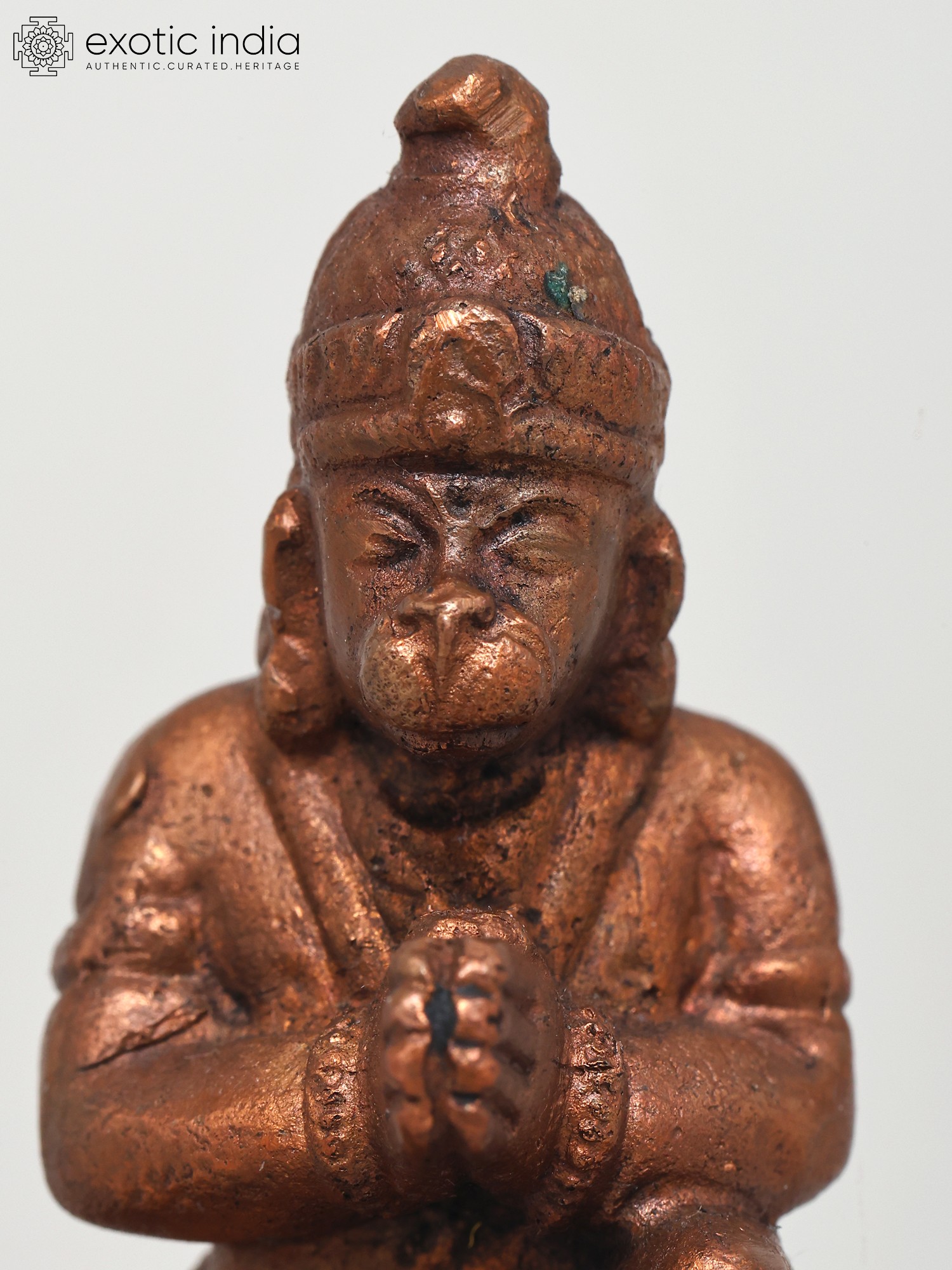 This meticulously crafted statue is a testament to the skill and artistry of Indian artisans. The intricate details, from Hanuman's expressive face to the folds of his clothing, are flawlessly executed. The use of copper, a metal historically associated with sacred rituals and offerings, further elevates the statue's spiritual significance. The slightly antiqued finish lends a sense of age and reverence, evoking the timeless essence of Hindu mythology and tradition.