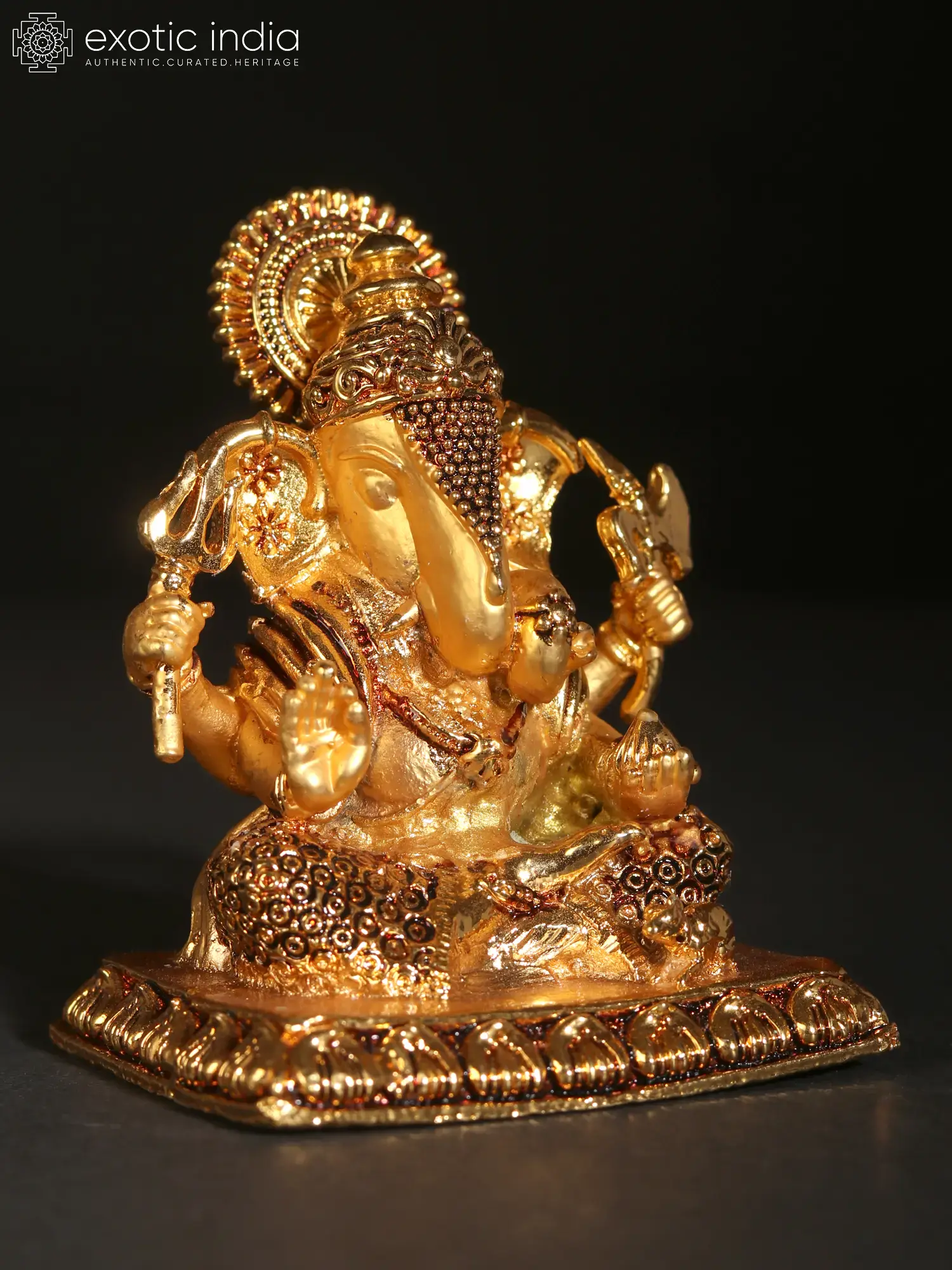 Crowned with the royal Kireedam Mukut and embellished with intricate carvings, his form captivates with celestial elegance. Worshipping this ethereal manifestation unveils profound blessings, fostering wisdom, overcoming obstacles, and guiding seekers on the sacred journey of life. This divine masterpiece, a celestial symphony of copper cloaked in the regality of 24-karat gold, invites reverence and awe in its radiant presence.