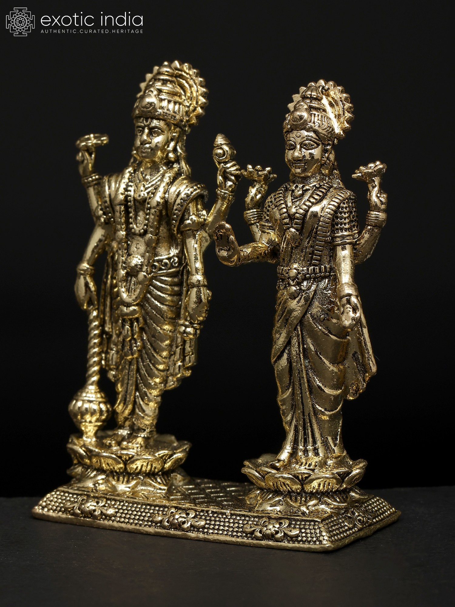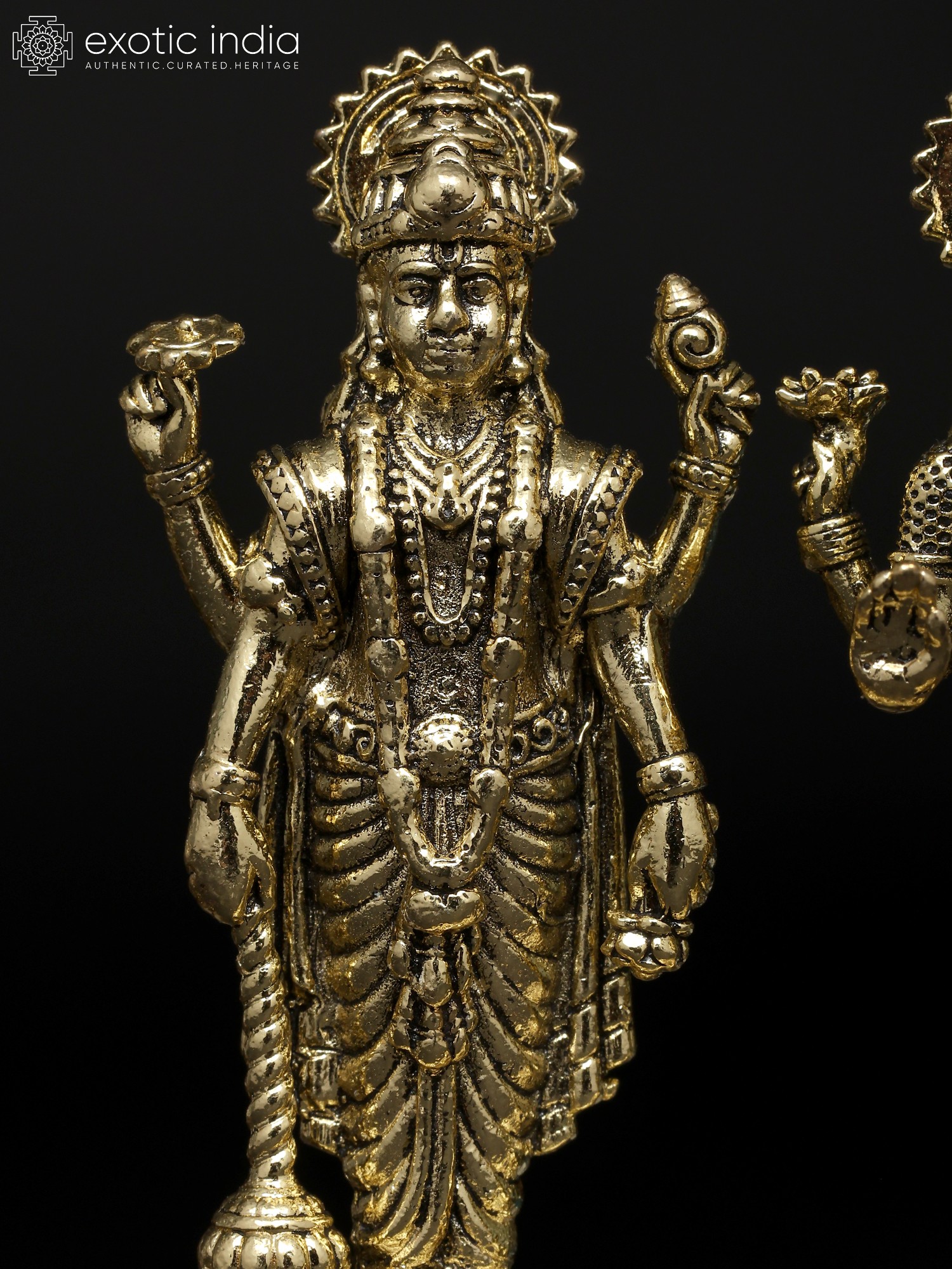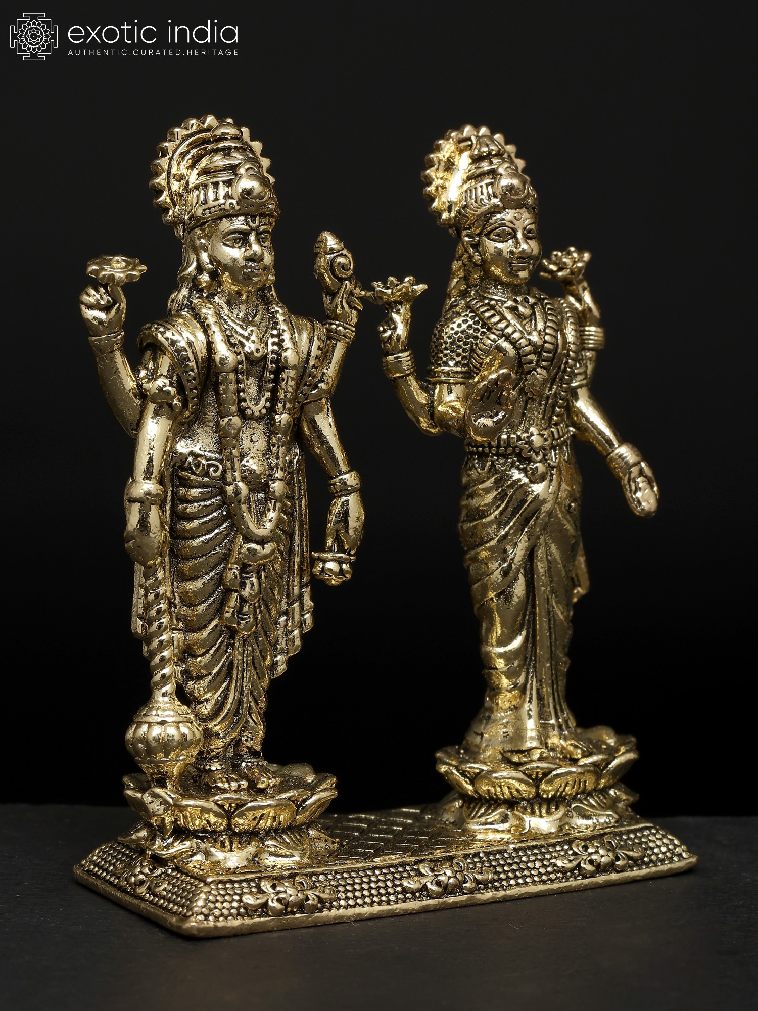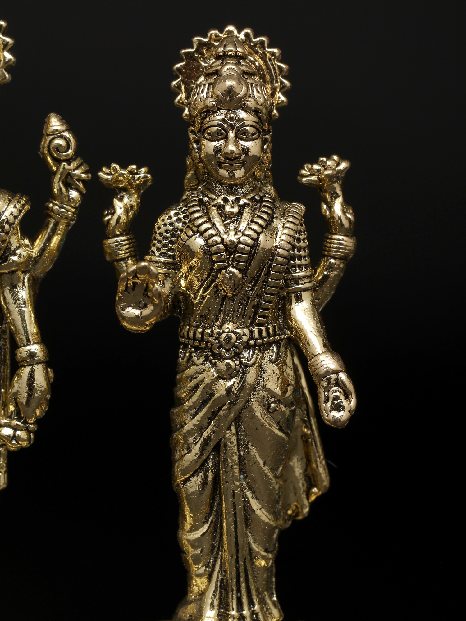 3" Small Superfine Standing Lakshmi Narayan Idol | Vishnu Lakshmi Brass Statues