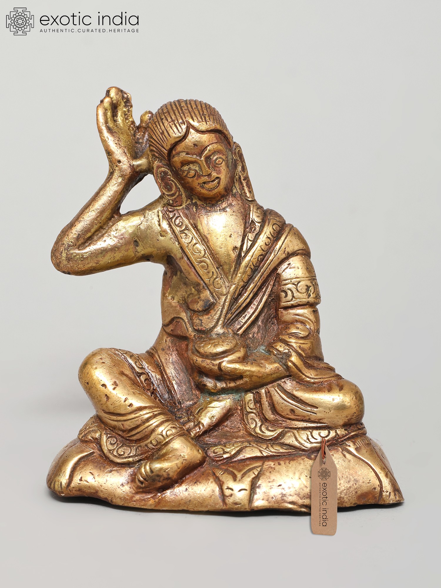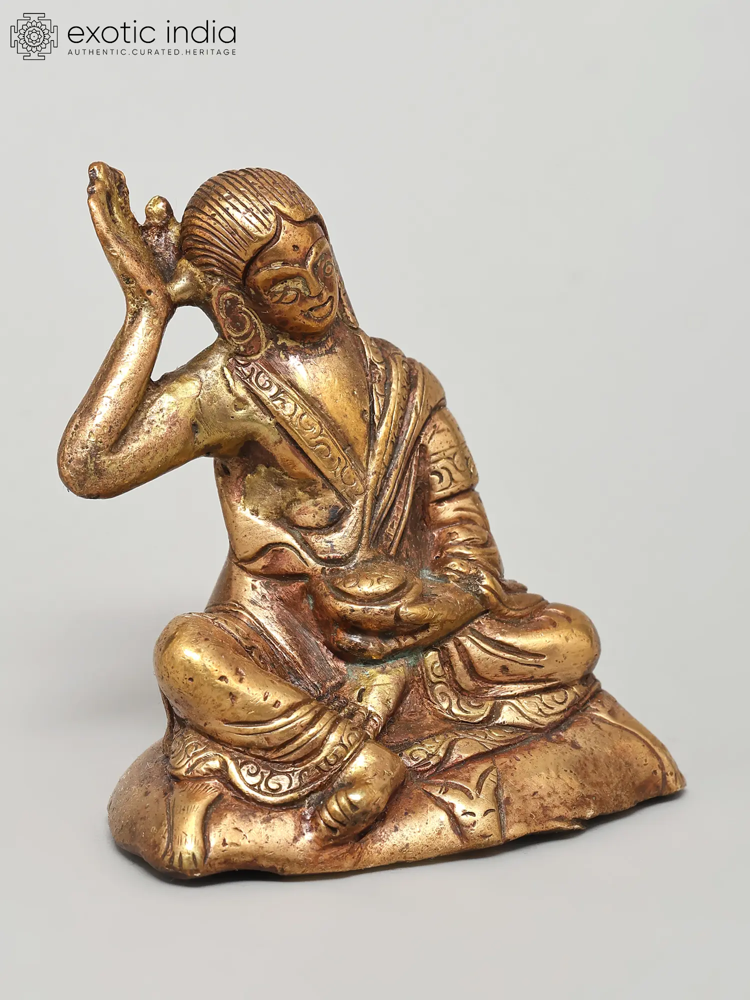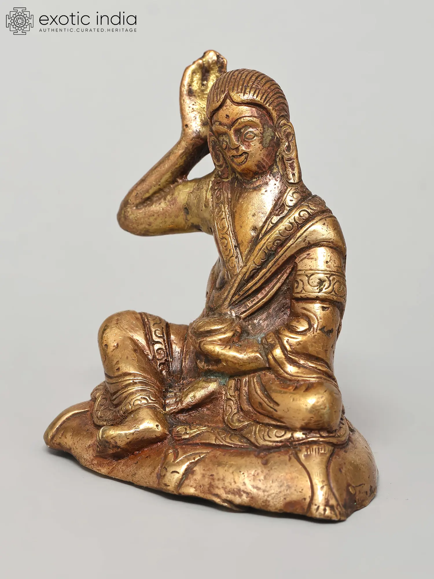 8" Tibetan Siddha Guru Milarepa in Brass